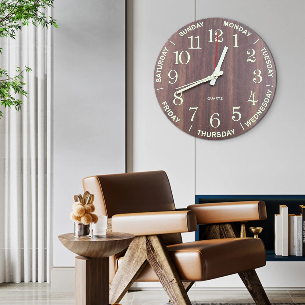 Department: Adults Number Type: Arabic Numerals Brand: Unbranded Item Height: 30cm Movement: Quartz (Battery Powered) Display Type: Digital Color: Wood Grain MPN: Does not apply Room: Bathroom, Bedroom, Dining Room, Hallway, Home Office/Study, Kitchen, Living Room, Porch, Sunroom gtin13: does not apply Frame Material: MDF Type: Hanging Wall Clock UPC: does not apply Shape: Round Style: Modern Power Source: Battery Powered Manufacturer Warranty: 3 Years Custom Bundle: No Features: 12-Hour Display Engraved: Yes Country/Region of Manufacture: China Personalize: Yes Era: 21st Century (2000-Now) Item Length: 30cm Material: MDF