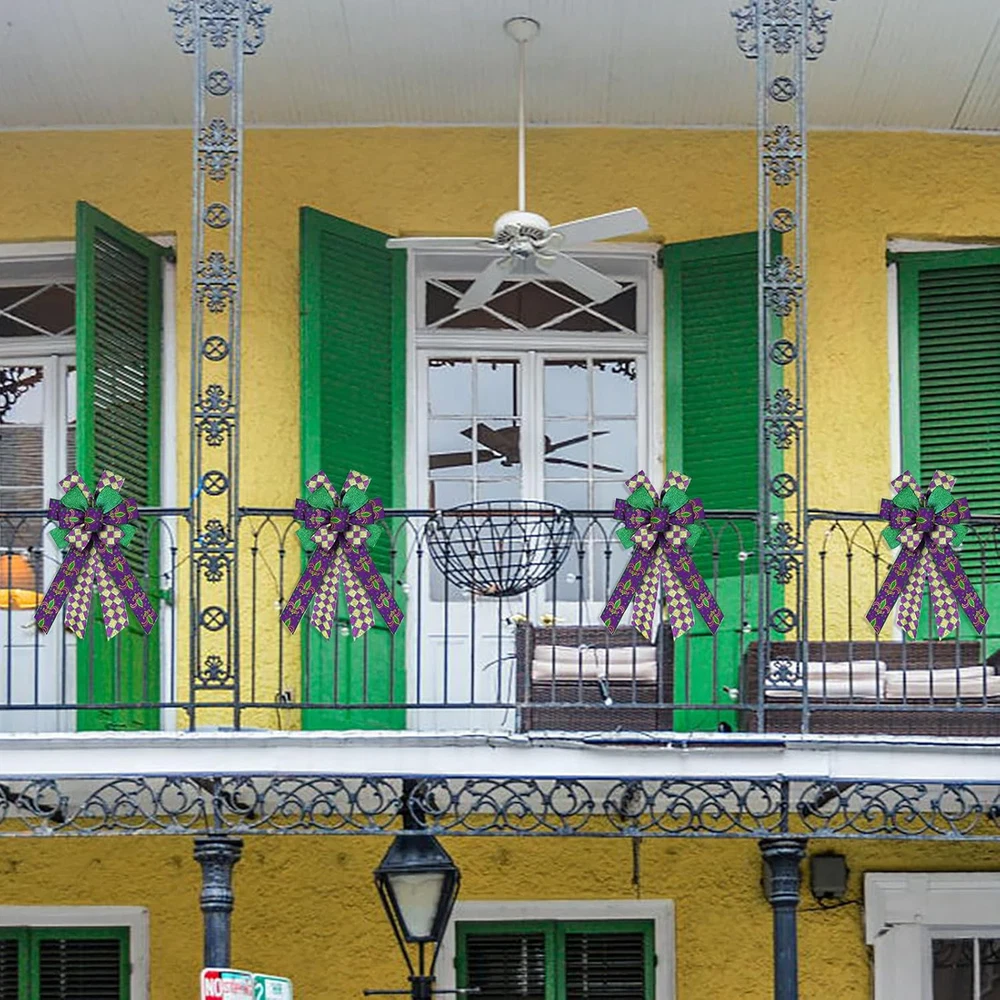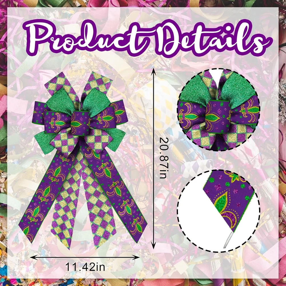 Large Mardi Gras Bows for Wreath, Mardi Gras Fleur De Lis Wreath Bows Glitter Pu