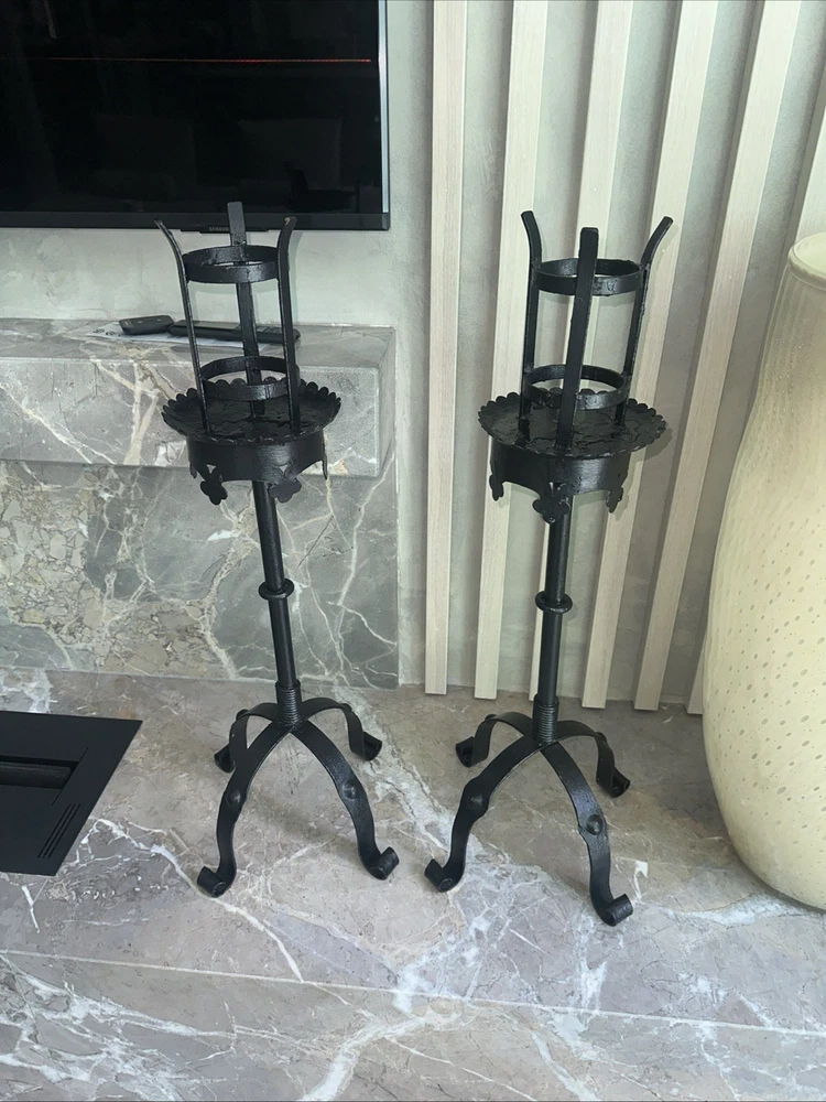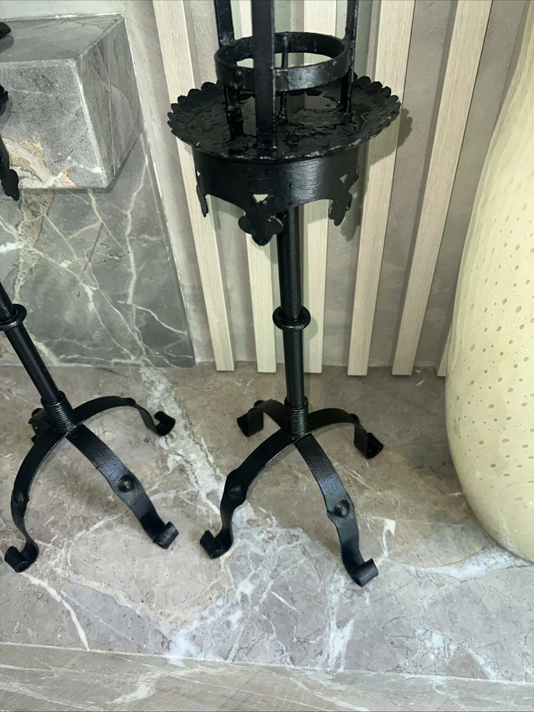 Elevate the ambiance of your living room with these stylish large metal candle holders, 66cm tall .Designed to suit pillar candles, these free-standing holders come in a sleek black colour that adds a touch of elegance to your space. Crafted from durable metal, these candle holders offer both sophistication and stability, making them an ideal choice for your home. Their substantial size ensures they serve as a focal point, enhancing the warmth and character of your living room.