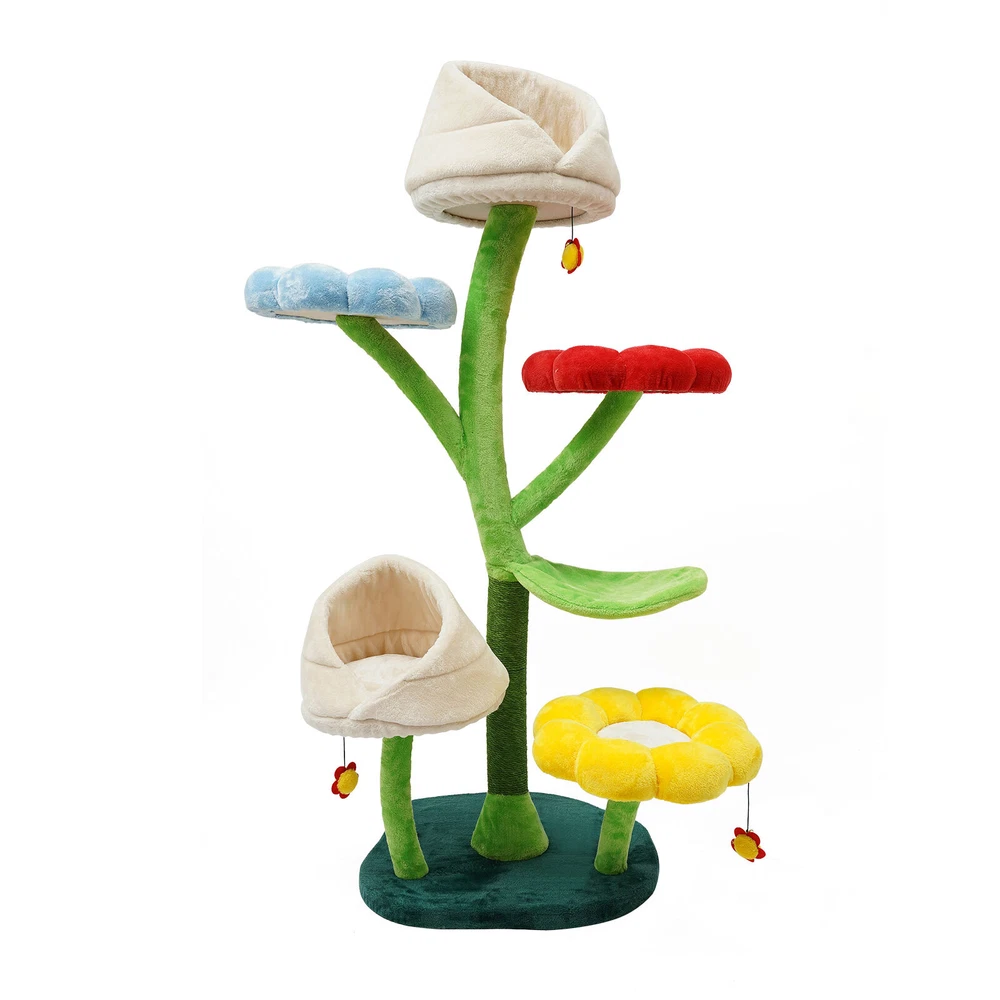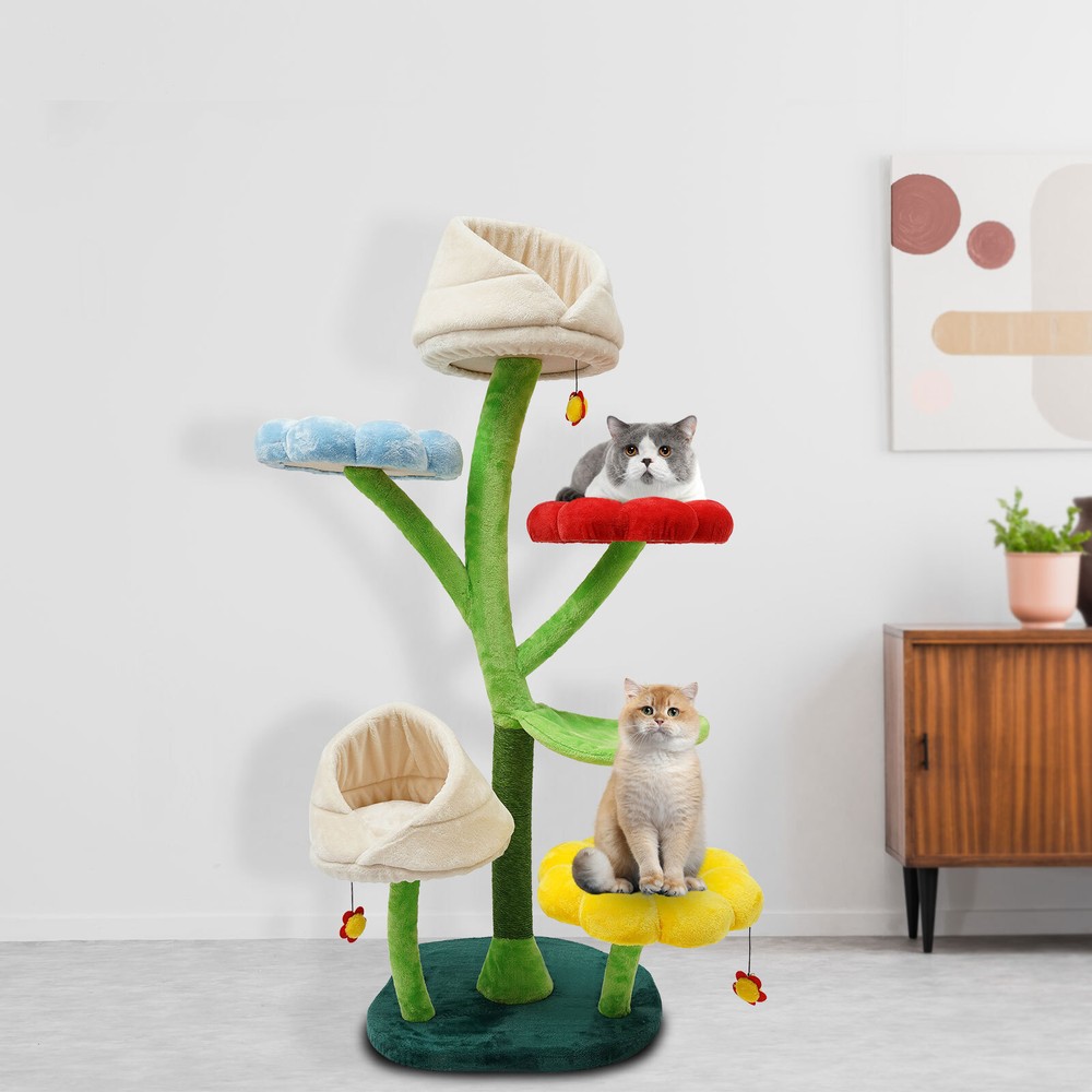 Specification Material: Particleboard, Paper String, Sisal, Iron, and Plush Fabrics Color: Green, Red, Blue, Yellow, and White Resting Platform Shape: Flower Style: Modern Target Species: Cat Wash Style: Hand Wash Assembly Required: Yes Mounting Type: Freestanding Specific Uses For Product: Indoor Number of Tiers: 6 Load Capacity: About 10kg/22 lbs Base Size: 60*55cm/23.6*21.6inch Total Height: 162cm/63.8inch  Each Cat Nest Size(D*H): 38*25 cm/15*9.8inch Each Cat Resting Platform Diameter: 40 cm/15.7inch Leaf-type Hammock Size: 48*31cm/18.9*15inch  Package Included 1* Cat Tree 1* Allen Key 1* Assembly Diagram Other Accessories for Use 6 Tiers Indoor Cat Tree Tall Cat Tower For Large Cats 22 Lbs Cat Climbing Frame Description Are you still worried that your cat has nowhere to sharpen its claws thus scratching the sofa, or are you still worried about your cat not having a suitable place to live? Then come to see our cat tree. The wide springboard, comfortable cat nest, durable scratching board, sturdy columns, and scratching post give your cat an ideal place to play and rest. The beautiful shape and coordinated color scheme can fit well into your furniture decor. Key Features Build to Last: It is made of high-quality particleboard, paper string, sisal, iron, and plush fabrics, making it robust, wear-resistant, impact-resistant, environmentally friendly, and safe, and has a long service life. Family Playground: This cat tree has resting platforms(also can be used as springboards), scratching posts, cat nests, and more, making it a family playground for cats to play, scratch, rest, and climb. You can take photos to document your cat's life and add to the fun. Thoughtful Design: Its structure is designed according to the climbing habits of cats, so both old cats and kittens can climb up and down easily. Kittens can lean on the padded upper platform to rest or observe the environment or sleep comfortably in the narrow upper and wide lower litter. Good Load-bearing: The sturdy material, thick columns, and stable base endow the product with a bearing capacity of approximately 22 lbs, so you don't have to worry about collapsing when your cat is playing or resting on it. Nice Decoration: The colorful appearance makes the product look very simple and atmospheric, flowers and leaves type resting platforms make it rich in a kind of natural beauty, so it will be a beautiful scenery in your home! Space Saving: The upright structure makes full use of vertical space, saving you more space in the bedroom or living room. Easy to Install: With complete accessories, a simple structure, and an intuitive assembly diagram, you can install it yourself and enjoy the installation process. Effortless Cleaning: Because of its simple detachable structure and smooth surface, you can easily wash this product clean. Ideal Gift: Thanks to its powerful functions and beautiful novel appearance, you can give it as a Christmas, Thanksgiving, or housewarming gift to your friends who love cats! Details Leaf-shape Hammock: It not only is stylish in shape but also provides maximum comfort for cats, allowing them to experience the fun of hanging. Flower-shape Plush Balls: They can easily attract your cats' interest, unleash their nature, make them jump like wild animals, and make them play happier. Practical Column: Wrapped with paper string, it helps your cats climb or sharpen their claws, prevent them from destroying the sofa or bed in your home, and protect their nails. Application It applies to cats weighing up to 22 pounds and is suitable for homes, pet shops, living rooms, bedrooms, balconies, and other places where cats can interact and rest. Specification Material: Particleboard, Paper String, Sisal, Iron, and Plush Fabrics Color: Green, Red, Blue, Yellow, and White Resting Platform Shape: Flower Style: Modern Target Species: Cat Wash Style: Hand Wash Assembly Required: Yes Mounting Type: Freestanding Specific Uses For Product: Indoor Number of Tiers: 6 Load Capacity: About 10kg/22 lbs Base Size: 60*55cm/23.6*21.6inch Total Height: 162cm/63.8inch Each Cat Nest Size(D*H): 38*25 cm/15*9.8inch Each Cat Resting Platform Diameter: 40 cm/15.7inch Leaf-type Hammock Size: 48*31cm/18.9*15inch Package Included 1* Cat Tree 1* Allen Key 1* Assembly Diagram Other Accessories for Use Notes 1.If your pet chews the pompom, please remove it and keep it away from your pet for a while. 2.It is recommended to place the cat tree against the wall and use the anti-tip kit(not included) to ensure the safety of your family members. Additionally, try not to place the cat tree in a humid environment, considering the material. 3.Please check the tightness of the screws and tighten them regularly. Please allow the slight color difference caused by the shooting light and 1-3 cm error due to manual measurement, and make sure you do not mind before ordering. Payment Delivery details Terms of sales About us Contact us Payment We accept ebay payment 。 Fees such as import duties, taxes are not included in the item price or shipping costs. These charges are the buyer's responsibility. Delivery details Shipping: 2-9 working days to: USA Terms of sales We maintain high standards of excellence and strive for hundred percent customer satisfaction. Feedback is very important to us. We hope that you contact us immediately before you give neutral or negative feedback, so that we can address your concerns. It is impossible to address issues if we do not know about them! About us Your satis faction is our ultimate goal. We work hard to earn your trust and future business. Our certified technicians have tested each item before shipping. The unit comes with 1 year limited warranty on all manufacturing defects. a) If you receive a defective item, you may return it or ask for a discount. Please contact us within 14 days after you receive the package. b) What you returned must be intact and in its original packaging as re? u. Customer is responsible for shipping costs 