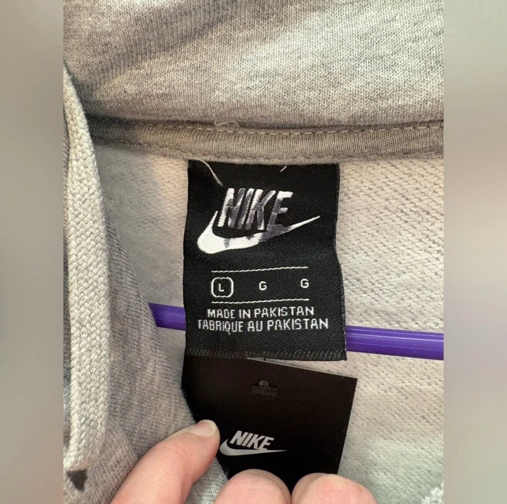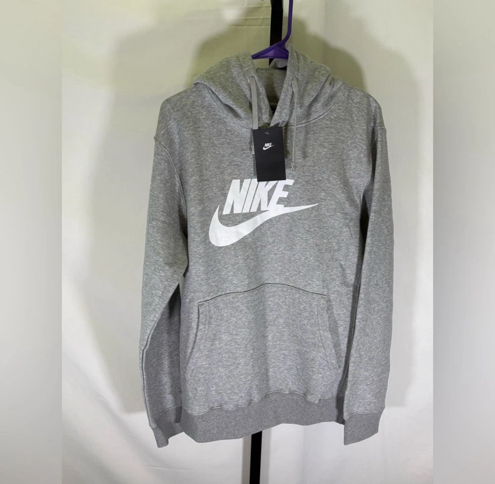 Color: Gray Product Line: Nike Sportswear Theme: Logo Brand: Nike Department: Men MPN: NOT SPECIFIED Closure: Drawstring Garment Care: Machine Washable Accents: Logo Fabric Type: Fleece Performance/Activity: Gym & Training Character: Snike Sleeve Length: Long Sleeve Style: Pullover Size: L Type: Hoodie Fit: Regular Size Type: Regular Material: Cotton Blend, Polyester