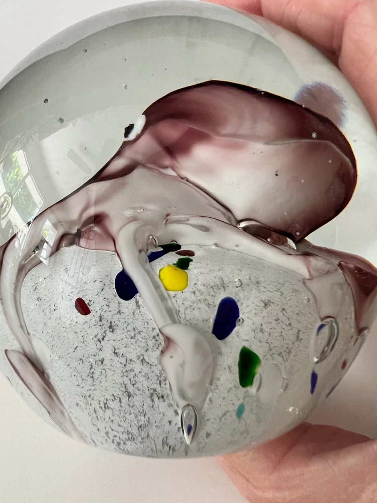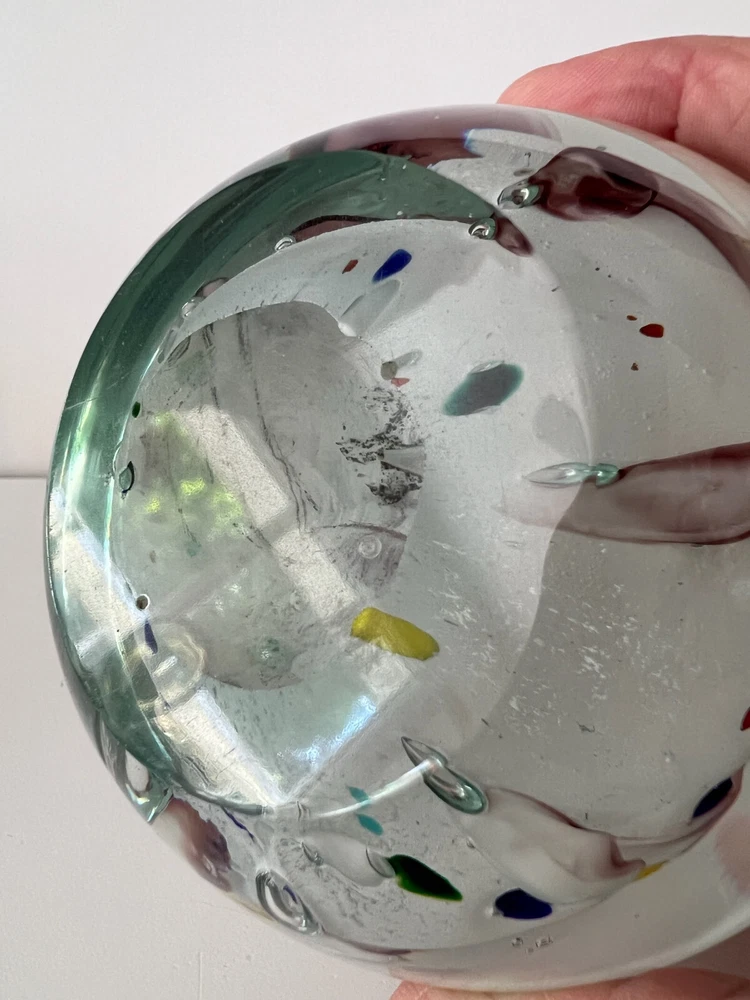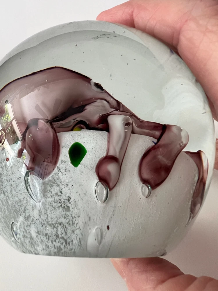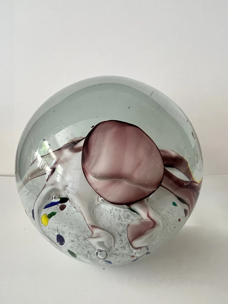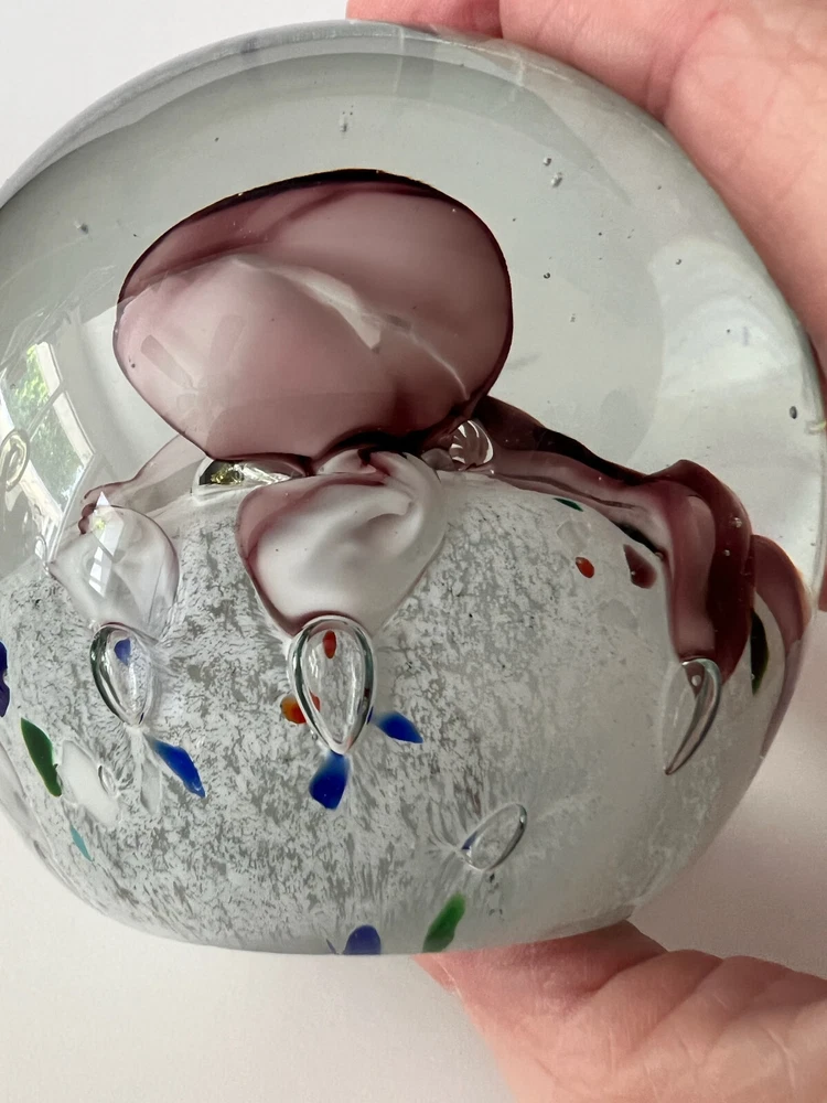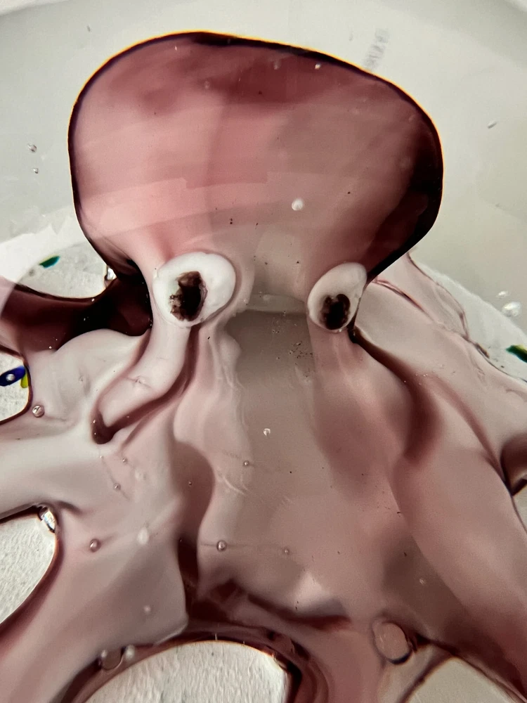 Large Octopus Sea Themed Paperweight Controlled Bubbles Polished Base Unsigned. A few minor surface scratches , that you can hardly notice unless you really look . This is an amazing piece from a private collection . The size is about 3.5 inches across and about 4 inches tall and weighs 2 pounds 9 oz . A very impressive piece ! Thanks for looking !