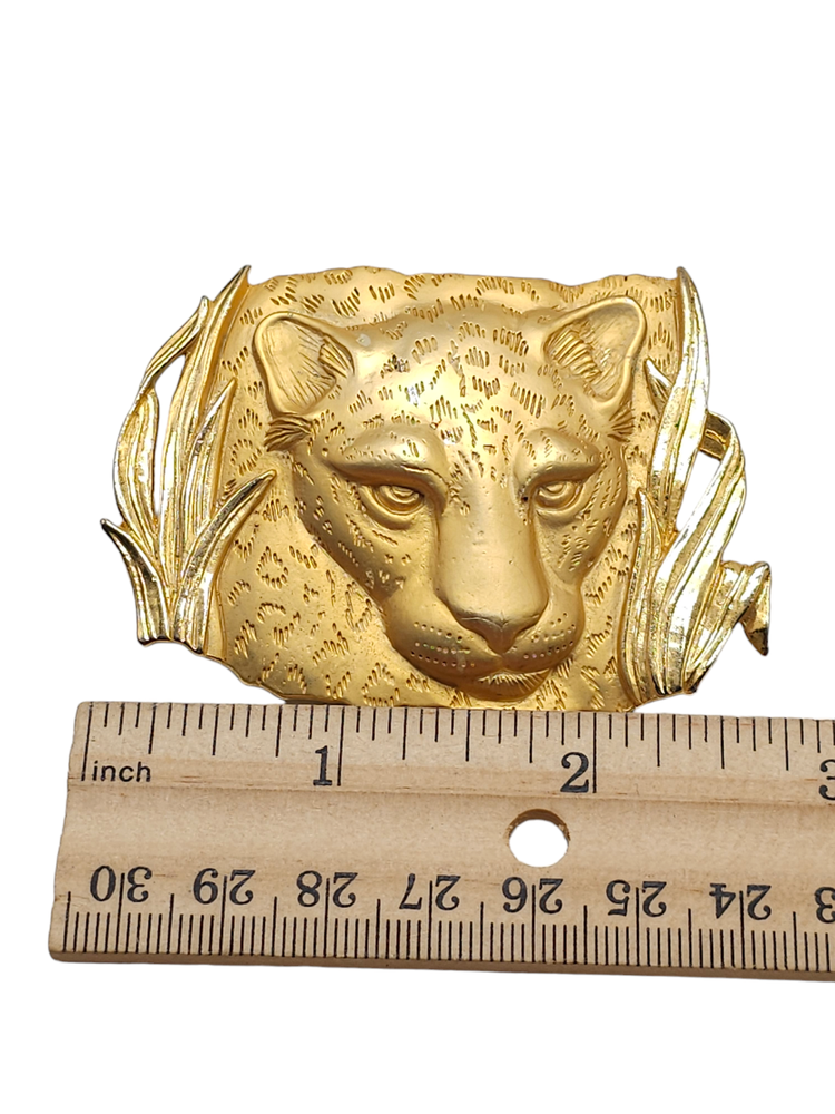 Large PARK LANE Tiger Brooch Matte Gold Plated Detailed Signed Vintage Jewelry Brand: Parklane Textured Jungle Reeds Leopard Face Brooch Pin Gold Tone Vintage Measurements: See Photos! Condition: Pre-Owned Good Gently Used - See All Pics for Condition - some wear see pics