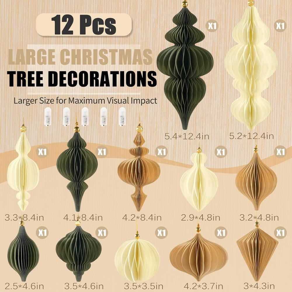AutoDS Template Store New Arrivals Add to Favorite View Feedback Contact Large Paper Christmas Party Decorations, 12Pcs Honeycomb Paper Hanging Ornaments Large Paper Christmas Party Decorations, 12Pcs Honeycomb Paper Hanging Ornaments Christmas Hanging Decorations: You will get 12pcs large neutral hanging Christmas decorations measuring in 7.87 and 11.81 inches, and come with 5 LED lights.The classic Christmas decorations come in a variety of colors, including pink-purple, red, yellow, brown, dark green and light green, with 2 for each color. They feature a 3D honeycomb shape and each adorned with a gold bead. When lit at night, these boho Christmas ornaments indoor create a unique Christmas atmosphere 3D Christmas Tree Decor: These paper ornaments for Christmas tree are honeycomb 3D design with rounded edges. Hang our paper Christmas decorations in a staggered pattern to create a superior winter atmosphere. And these honeycomb paper ornaments could be very full and large after you open it, so please be sure to confirm the size of the space you want to enhance your Christmas decorations Easy to Assemble: Our paper Christmas ornaments have built-in magnet clips and hanging strings, when decorating the Christmas tree, simply place the LED lights in the center of the honeycomb ornaments, connect the two ends of the magnetic buckle, then you can hang them to decorate your chrisrmas trees, doors, mantel, shelves ,staircase handrail, anywhere you want to decorate to enhance the holiday atmosphere Premium Material: We selected 110g thick paper to craft these honeycomb Christmas decorations, ensuring they are thick and sturdy, and resistant to deformation and breakage, so that the light up christmas decors will maintain a good three-dimensional shape and white appearance through multiple uses. The foldable design with magnetic closure allows for easy storage and reuse Various application: The Christmas party decorations with gold bead ornaments, comes with vintage and classic temperament, can be flexibly applied to a variety of scenarios: Christmas trees decorations, window decorations, store displays, mantel decorations, staircase handrail decorations, etc. This set of hanging Christmas decorations measuring in 7.87 and 11.81 inches, and come with LED lights, presenting a 3D honeycomb shape and each features a gold bead. The vintage colors add a unique Christmas atmosphere for the Christmas decorations indoor. These paper ornaments for Christmas tree are honeycomb 3D design with rounded edges. Hang our paper Christmas decorations in a staggered pattern to create a superior winter atmosphere. We selected 110g thick paper to craft these honeycomb Christmas decorations, ensuring they are thick and sturdy, and resistant to deformation and breakage. The neutral and boho Christmas decorations with gold bead ornaments, comes with classic and vintage temperament, can be flexibly applied to a variety of scenarios: Christmas trees decorations, window decorations, store displays, mantel decorations, staircase handrail decorations, etc. Item model number 12NeutralColorHangingHoneycombLarge Number of Items 12 Color Neutral Color Item Weight 11.3 ounces Package Dimensions 12.68 x 5.71 x 0.83 inches Product Dimensions: 5.71 inches x 12.68 inches x 0.83 inches. Weight: 11.3 oz About Us Welcome to our eCommerce shop. We're dedicated to providing you with high-quality products at unbeatable prices. Our professional customer support team is more than happy to help with anything that you need. We’re proud to serve you and bring a smile to your face with our top-notch service and products. Please visit our eBay store for a full list of products on sale, and don’t miss what we have to offer. Payment policy We only accept payments made by PayPal. Please make sure that your PayPal and eBay shipping addresses match. Immediate payment is required before we send out your package. Shipping policy We are always working hard to ensure your package arrives as soon as possible. Please understand that some factors like weather, high postal traffic, and the performance of shipping companies are outside of our control. In most cases, your package will arrive before due time as it is a high priority for us. If there are any unexpected delays, please let us know and we will take care of it immediately. We have multiple locations in the US; residents of these states will be charged tax according to the state they reside in. Tax information is available at checkout. Returns We are committed to your happiness. That’s why we offer a 30-Day Return Policy on items that you are not completely satisfied with. You have the option for a refund or an exchange of the item. No returns are available on items shipped outside of the USA.