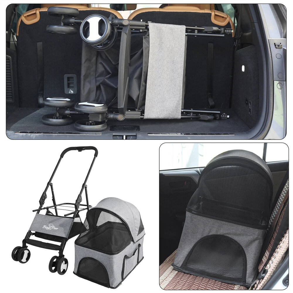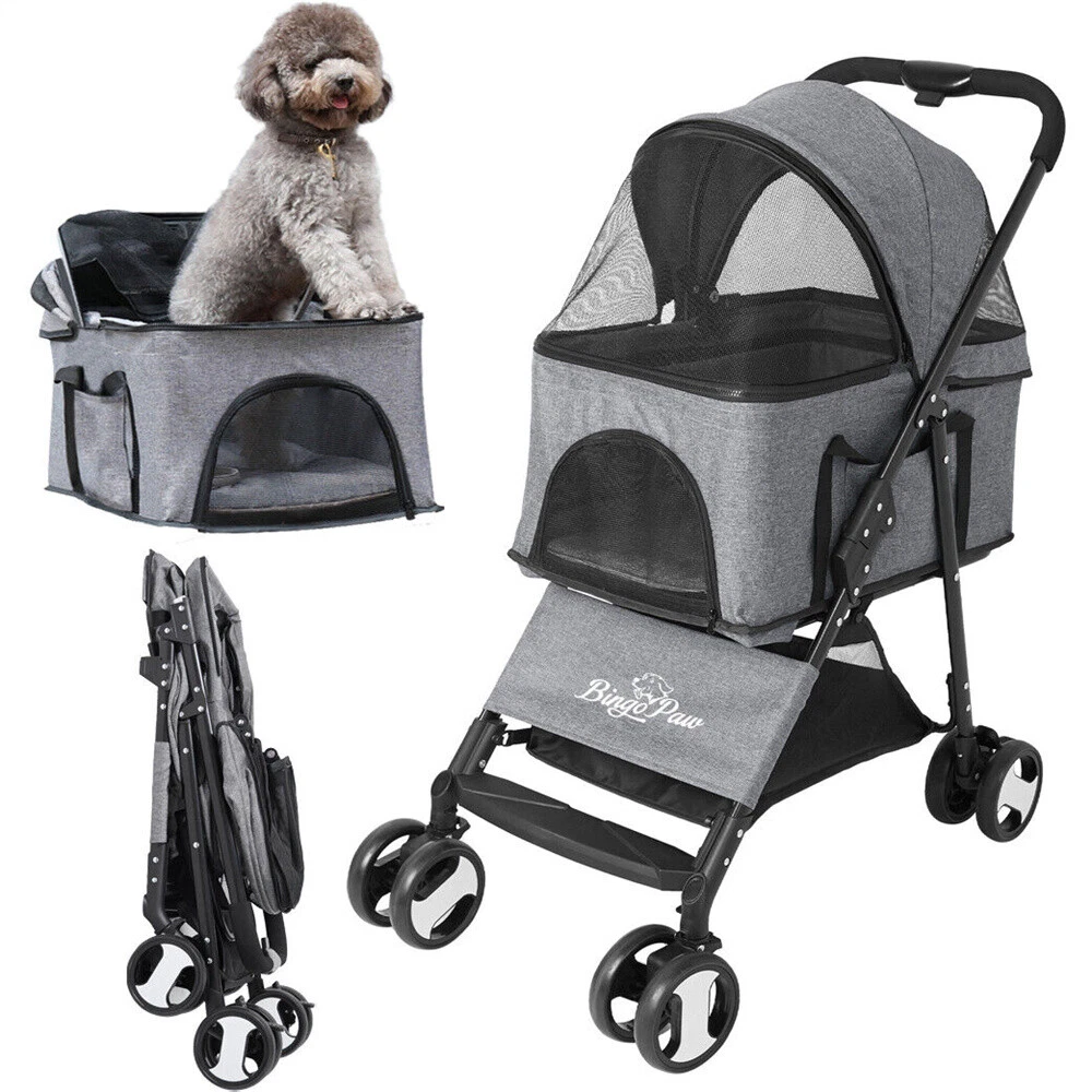 Large Pet Dog Stroller Pushchair Buggy Pram w Rain Cover Travel Car Seat Carrier Large Pet Dog Stroller Pushchair Buggy Pram w Rain Cover Travel Car Seat Carrier US SELLER FAST SHIPPING! Large Pet Dog Stroller Pushchair Buggy Pram w Rain Cover Travel Car Seat Carrier Features: Well-made luxury stroller. Perfect for small cats and dogs. There is extra space when he lays down. Solid EVA wheels easy to maneuver and for smooth ride. Easy to fold up and fit into the car trunk. The storage basket underneath and the pockets in the side or back for holding a little shopping. A well-constructed cat stroller with a weight capacity of 20kg (max do not exceed 30kg), designed breathable mesh cover offers maximum visibility and continuous airflow. The storage basket you can hold some supplies. Safety lock wheels prevent accidental movement. The cat stroller designed shock-absorbent wheels that offer incredible stability. Its canopy works well for anxious cats who prefer to avoid confrontation with other animals. Well-padded cushion base inside provides extra comfort. Collapsible and foldable feature for easy storage. Specifications: Material: 600D Linen Fabric + EVA (wheel) + Steel Pipe Color: Grey Net Weight: 7.1 kg Weight Capacity: within 30 kg / 66lbs Product Dimension: L x H 50.5 x 77.8 x 99.5 cm / 19.88 x 30.63 x 39.17 inch Pet Carrier Size: 39.5 x 54 x 62 cm / 15.55 x 21.26 x 24.4 inch Package Size: 75 x 44 x 19.5 cm / 29.5 x 17.3 x 7.7 inch Package Weight: 8.03 kg Package Included: 1 x Cat Stroller 1 x Waterproof Cover 1 x Instruction Guide Payment Delivery details Terms of sales About us Contact us Payment Delivery details We ship orders within 24 hours of payment. Orders are shipped daily Monday - Friday Orders are shipped through USPS and FedEx, normally take 3-6 days to arrive! Terms of sales Pls contact us if there is any problems with your order via ebay message. we will try our best to resolve it to your satisfaction! About us We are a store, mainly run home garden kitchen items, also, we are professional makeup case factory. We work with a good quality OEM supplier and factory. Help you and us save money greatly. Contact us If you have any questions or any helps, pls feel free to contact us via ebay message. We will reply back to you in 24 business hours. Brand BingoPaw Type 4-Wheel Pet Stroller MPN WIS78439R9DFG Features Detachable Carrier, Foldable, Rain Cover/Rain Screen, with Storage Basket Dog Size S Model Pet Stroller Custom Bundle Yes Color Gray