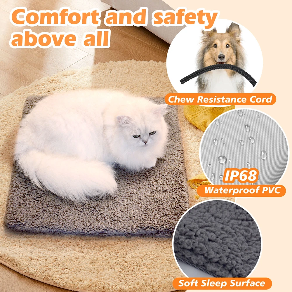 Product Description Feature: 【 Ultimate Comfort & Warm】 The outer cover features plush faux lambswool which is gentle on noses and paws, delivering optimum nestling comfort for furry cuddlers. It effectively keeps your pets toasty warm in cold days 【Available All Year Round】 Upgraded heating pad with power cord separation design, in winter it can provide warmth for your pets; In summer, just taking off the furry cover and power cord it will turn into a pet mat. A worth and ideal gift for pets 【Safety and Secure Design】 7-layer protective structure with UL-certified heating wire protect pets from burns. IP68 waterproof and flame-retardant PVC envelope with built-in intelligent temperature sensor in the heating pad to prevent overheating. It also featured with dual-chew resistant cord protects pets from chewing wires to ensure safety 【Temperature Adjustable】 Updated LED controller can easily adjust the temperature from 86-149℉/30-65℃ (Press the "+" or "-" button to increase or decrease temperature by 9℉ per time) to suit your pets 【Intelligence Timer Setting & Auto Shut-off】 The dog heated pad provide AUTO SHUT-OFF range from 1 to 12 hours, can save energy and prevent burns from overheating. Press the "+" or "-" button to set the timer to 2H/4H/8H/12H . "0" means it will continuous heating Product details Product Dimensions : 26 x 20 x 1 inches Material: PVC + Cotton Package: 1 * Pet Heating Pad [Note] Do not fold the heating pad when using it. PVC may have some odor due to its special material (this is normal), so when you receive the heating pad, spread it out and leave it overnight. Heated MATS can be used on pet beds, but should not be placed under dog beds. Before cleaning, unplug the heating pad and disconnect the power supply. Velvet hoods are machine washable; Wipe the PVC pad with a damp cloth. Do not insert the heating pad until it is completely dry. About Us Payment Shipping Terms Contact Us 1.We are honest eBay sellers. 2.We offer best price products to worldwide. Office time: Monday to Saturday, CST: 9:30-18:30 1. We ONLY accept PayPal. 2.Payment must be received within 7 days after winning the item. To claim back the Final Value Fee from eBay, an UPI (Unpaid Item Case) will be filed automatically if buyers fail to make the payment in 7 days after item ends. 3.If you have any problem with the payment after bidding, please let us know within 24h via eBay message. Thank you! 1. USA Stock, we ship from USA . 2. All packages will be shipped within 1-2 business day . 3. We will provide a tracking number. 4. Please note that there are certain circumstances that we unfortunately can not have control i.e. weather condition, delay by post office, Sundays, National Holidays, etc. 5. We don't arrange shipment on weekends. We appreciate your great understanding. 1. Free 30 day returns. We accept return and exchange. 2. Please read the detail of listing before you purchase it. If you have any problem with the listing, feel free to contact us firstly. 3. Returned item must be in brand-new, un-used, undamaged and re-sellable condition, including original packaging and complete accessories that came with the item (with all tags and labels attached). If the item is returned damaged, or has been opened or used, we may issue a partial refund in accordance to its condition and the issue. Returned item will be refused if it contains any scratches, dirt, or sign of usage. 4.All the items are double checked before shipment, If item is damaged, defective or missing components upon arrival, please provide us photos of the damaged package or defective item, we will respond you within 24 hours and resolve your issue asap. 1.Please contact us via eBay message. 2.Since you and us may located in the different time zones, please allow us to respond you within 24 hours on office time. we will respond you within 48 hours on holidays. 3.We are doing our best to offer you a better shopping impression on eBay. If you have any issue about the transaction, feel free to contact us before opening eBay case, PayPal case and leaving Neutral feedback or Negative feedback, we will resolve your issue properly. About Us 1.We are honest eBay sellers. 2.We offer best price products to worldwide. Office time: Monday to Saturday, CST: 9:30-18:30 Payment 1. We ONLY accept PayPal. 2.Payment must be received within 7 days after winning the item. To claim back the Final Value Fee from eBay, an UPI (Unpaid Item Case) will be filed automatically if buyers fail to make the payment in 7 days after item ends. 3.If you have any problem with the payment after bidding, please let us know within 24h via eBay message. Thank you! Shipping 1. USA Stock, we ship from USA . 2. All packages will be shipped within 1-2 business day . 3. We will provide a tracking number. 4. Please note that there are certain circumstances that we unfortunately can not have control i.e. weather condition, delay by post office, Sundays, National Holidays, etc. 5. We don't arrange shipment on weekends. We appreciate your great understanding. Terms 1. Free 30 day returns. We accept return and exchange. 2. Please read the detail of listing before you purchase it. If you have any problem with the listing, feel free to contact us firstly. 3. Returned item must be in brand-new, un-used, undamaged and re-sellable condition, including original packaging and complete accessories that came with the item (with all tags and labels attached). If the item is returned damaged, or has been opened or used, we may issue a partial refund in accordance to its condition and the issue. Returned item will be refused if it contains any scratches, dirt, or sign of usage. 4.All the items are double checked before shipment, If item is damaged, defective or missing components upon arrival, please provide us photos of the damaged package or defective item, we will respond you within 24 hours and resolve your issue asap. Contact Us 1.Please contact us via eBay message.