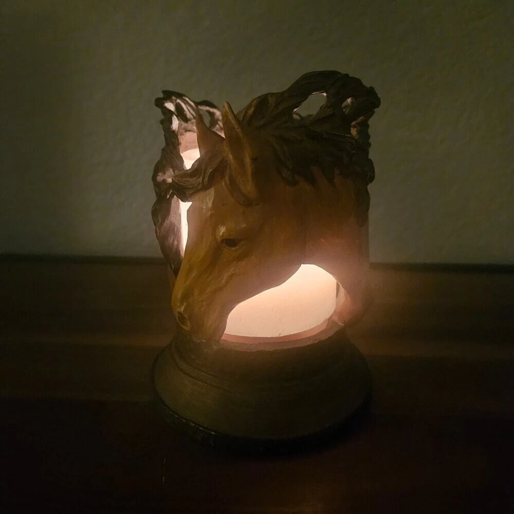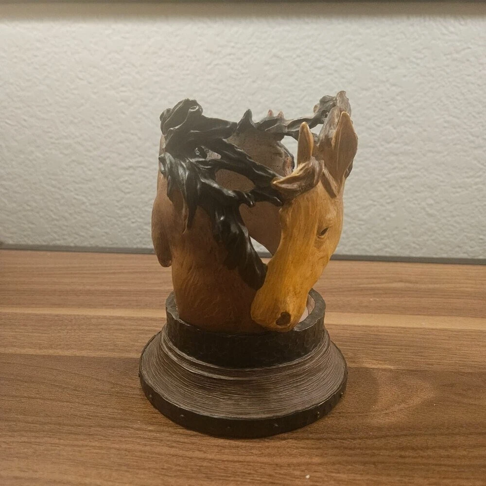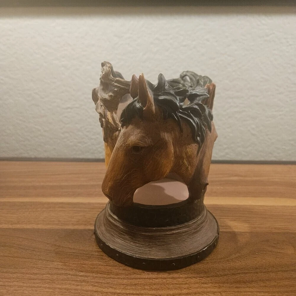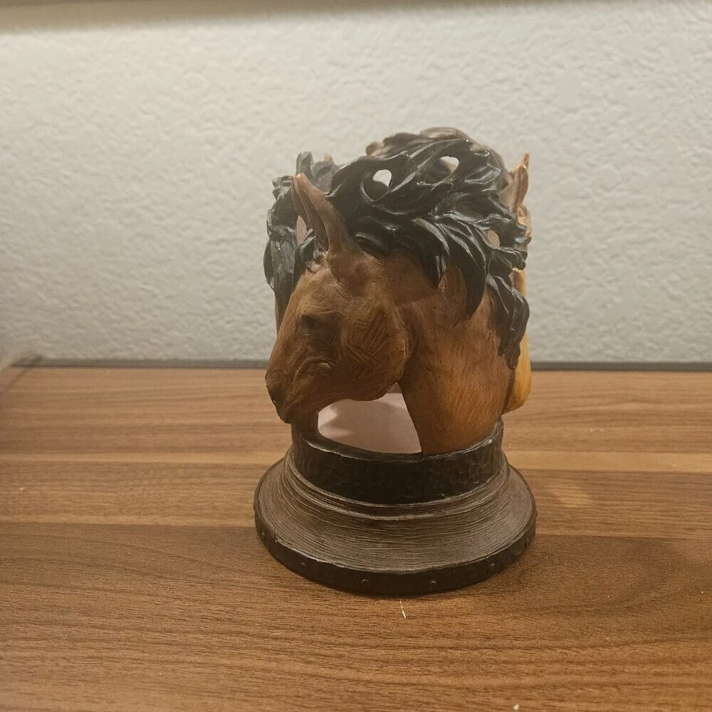 Large Resin Horse Candle Holder- EUC! Handcarved and perfect for any equestrian!