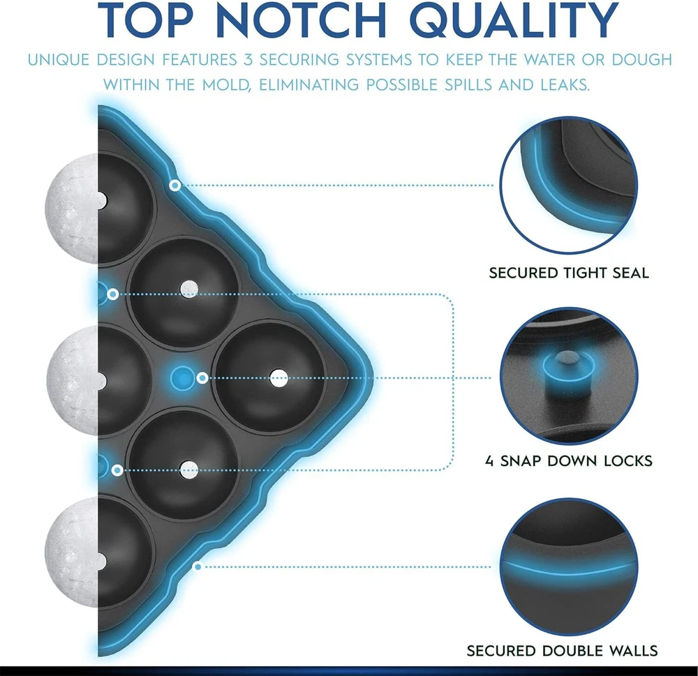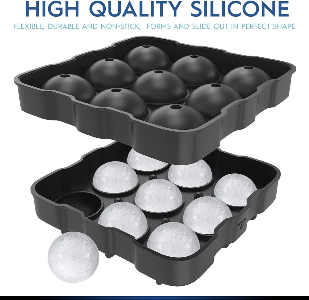 This ice ball maker unique design features 3 securing systems to keep the water or dough within the mold, eliminating possible spills and leaks. In this amazing ice tray every ball has its own security system, while the platform also has bolts to keep it in place. Not only that, but also the walls are made to keep each other secure, ensuring that the mold is perfectly closed! TOP NOTCH QUALITY: Made of the highest quality food grade, 100% BPA free flexible silicone. You can use this ice ball maker mold with peace of mind; no toxins or harmful ingredients here. This premium round sphere ice tray is completely safe to use for you and your children. MADE TO LAST: Unlike stiff plastic molds or trays, this silicone sphere ice maker won’t crack or break, no matter how long you use it. Note also that it is made of the most durable materials. For your convenience, this silicone ice ball mold is dishwasher and oven safe! And the best part? You can have 9 round ice balls of 4.5cm / 1.8" at once! VERSATILE ICE BALL MAKER WITH MANY GREAT USES: This great ice ball tray can be used in the oven up to 464 degrees Fahrenheit, while it is also safe in the freezer, with minimum temperature -40 degrees. This way, you may use this ice ball maker for many different kitchen projects; great for elegant slowly melting round ice balls for your juice, whiskey, sodas, beverage and more; ideal for popsicles or as a baking silicone tray, you can even make cake balls with it and it is easy to clean! SERVE YOUR COCKTAILS COLD, FRESH and WITH a FLARE Large ice balls are not only convenient for chilling drinks easily and efficiently but give your drinks a sophisticated trendy look. Whether you need big ice cubes for whiskey connoisseurs or large round ice cubes to add an extra pizazz to your cocktails, This double set includes both and will make your life a lot easier so you can focus on the party. GIVE A WELL THOUGHTFUL and PRACTICAL GIFT for anyone who enjoys creating things in the kitchen. Just right for birthday, holiday, anniversary, and Mother's Day. Perfect for entertaining and parties. It's selling quickly to homes, restaurants, bars, and hotels. TAKE YOUR BARTENDING TO THE NEXT LEVEL WITH PREMIUM SILICON ICE MOLDS Transform your home bar and impress your guests with this square ice cube tray and sphere ice mold set. Make perfect square whiskey ice cubes and stylish spherical cocktail ice cubes to enhance your next party or special event. Listing and template services provided by inkFrog