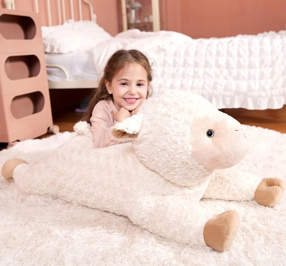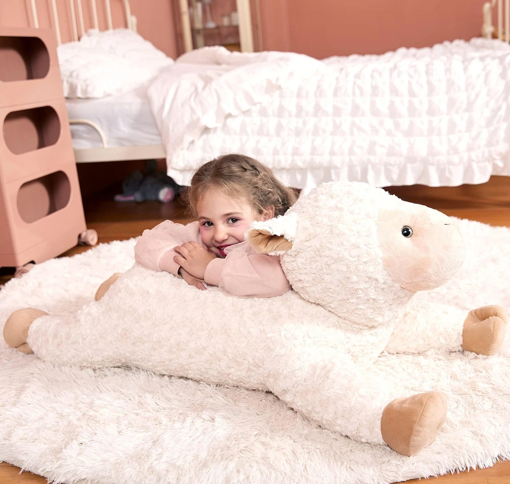Giant Measures 30": is a brand focusing on producing giant stuffed animal toys, we designed this giant stuffed sheep to give you more choices. Just click our brand name and enter into the store to get a lovely toy for your loved ones Soft And Very Plush: stuffed sheep is both durable and incredibly soft to the touch and hug, we did every detail well to make our plush toys excellent Premium Quality: Our stuffed animals have passed EN71 and ASTM test, so please feel free to buy and use our stuffed toys Wonderful Gift: This stuffed animal is suitable as a birthday, Christmas or Valentine's gift. Your children or friends will fall in love with this soft toy cause it's really very cute Surface-washable Construction For Easy Cleaning: Please don't put the animal toy in the washing machine, that will tear it up. You just need a soft brush and a bottle of cleanser to clean it