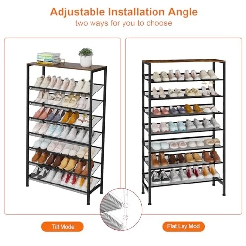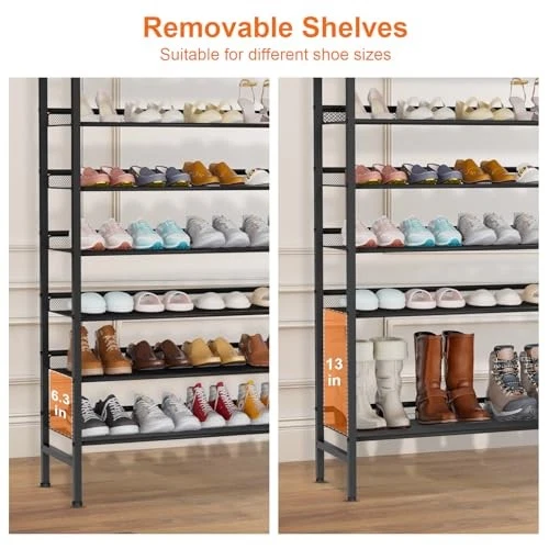 Menu 1. We require immediate payment. 2. We currently accept payment via eBay managed payments only. 3. Once payment is cleared, we will dispatch your shipment within 1-3 business days. Please refer to the "Shipping" tab for more information regarding shipping speed to your destination. Large Shoe Rack 8 Tier Shoe Organizer, Heavy Duty Metal Shoe Storage Vertical Shoe Rack for Closet Front Door Entrance, Up to 28 Pairs, Top Wooden Storage Shelf, Black Product description 【Large Capacity Up to 28 Pairs】The shoe rack organizer, which has dimensions of 29.53"W x 11.81" D x 53.94" H, offers sufficient storage capacity for up to 28 pairs of shoes. With this generous amount of space, this shoe rack for the entryway can accommodate your entire shoe collection. 【Adjustable Angle Design】This closet shoe storage rack can be flexibly installed with mesh partitions parallel or tilted according to your needs. It also comes with an anti-fall strap to prevent accidental falls. The top wooden board can be used as a storage or decorative layer. 【Organize Your Space】Say goodbye to clutter and create a tidy space. You can place the large shoe rack in the entrance, walk-in closet, porch, basement, garage, bedroom, cloakroom, balcony, or garden. Classify and store different shoes and items to create a dedicated storage space. 【Sturdy & Stable】This tall shoe rack uses a heavy-duty metal frame and high-quality metal mesh, which is still stable and durable for daily use. The sturdy metal frame ensures excellent load-bearing capacity, making it an ideal choice for your closet or entrance. 【Easy Assembly】You can easily assemble the front door metal shoe rack in 15-20 minutes without reading any instructions. The simple design can be easily integrated into various home styles and enhance the style of the space. PLEASE MESSAGE US IF YOU HAVE ANY OTHER QUESTIONS, AND MANY THANKS FOR READING ALL OF THIS. Copyright ©#. All Rights Reserved.