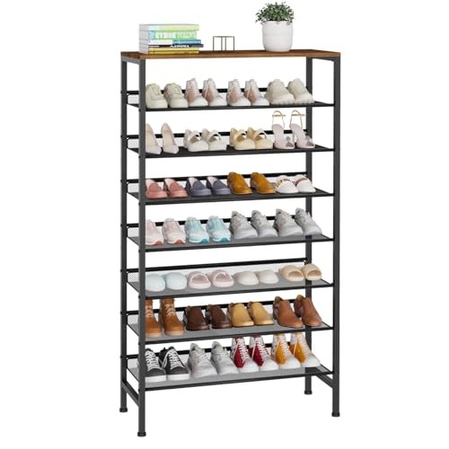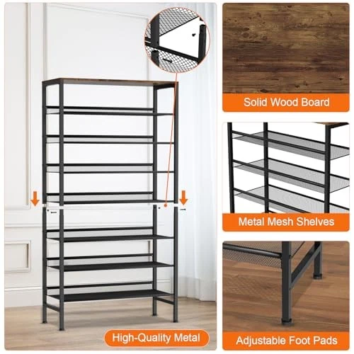 Shoe Rack 9 Tier Vertical Storage 9 Tier-Double Row Black+rustic Brown