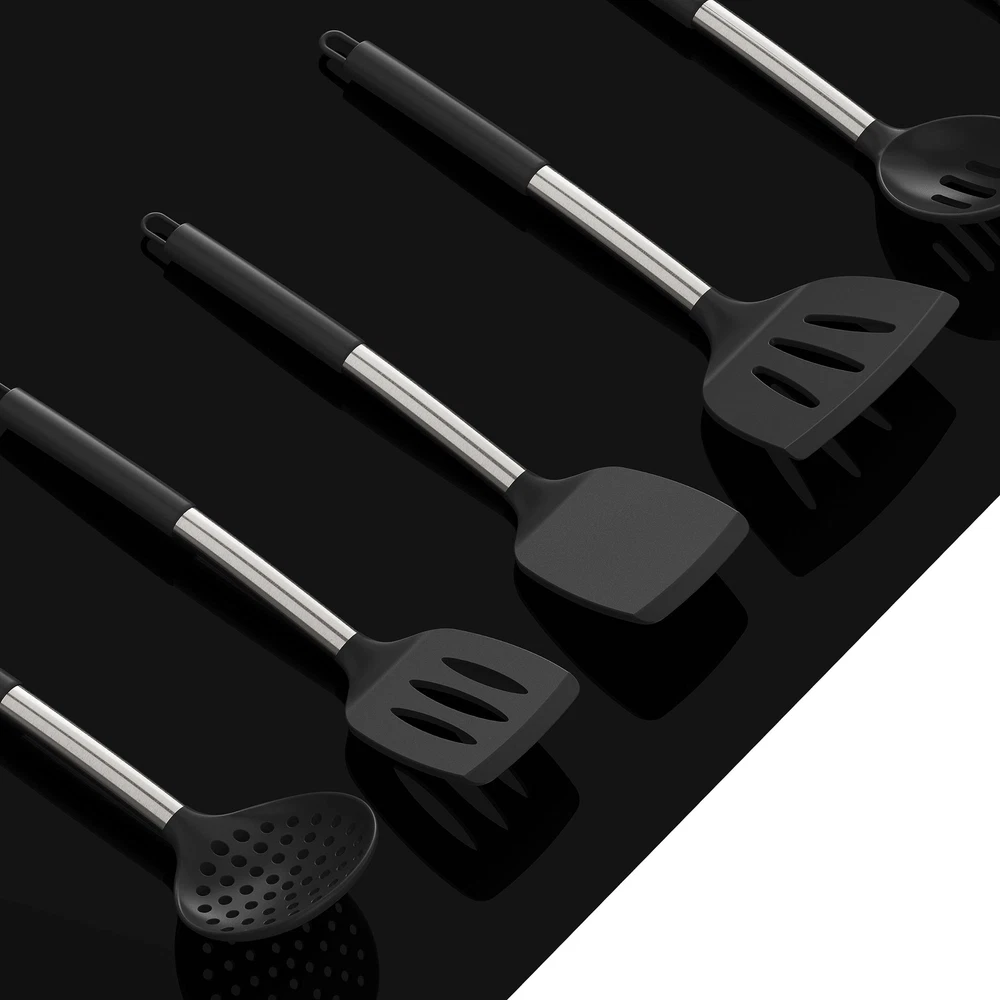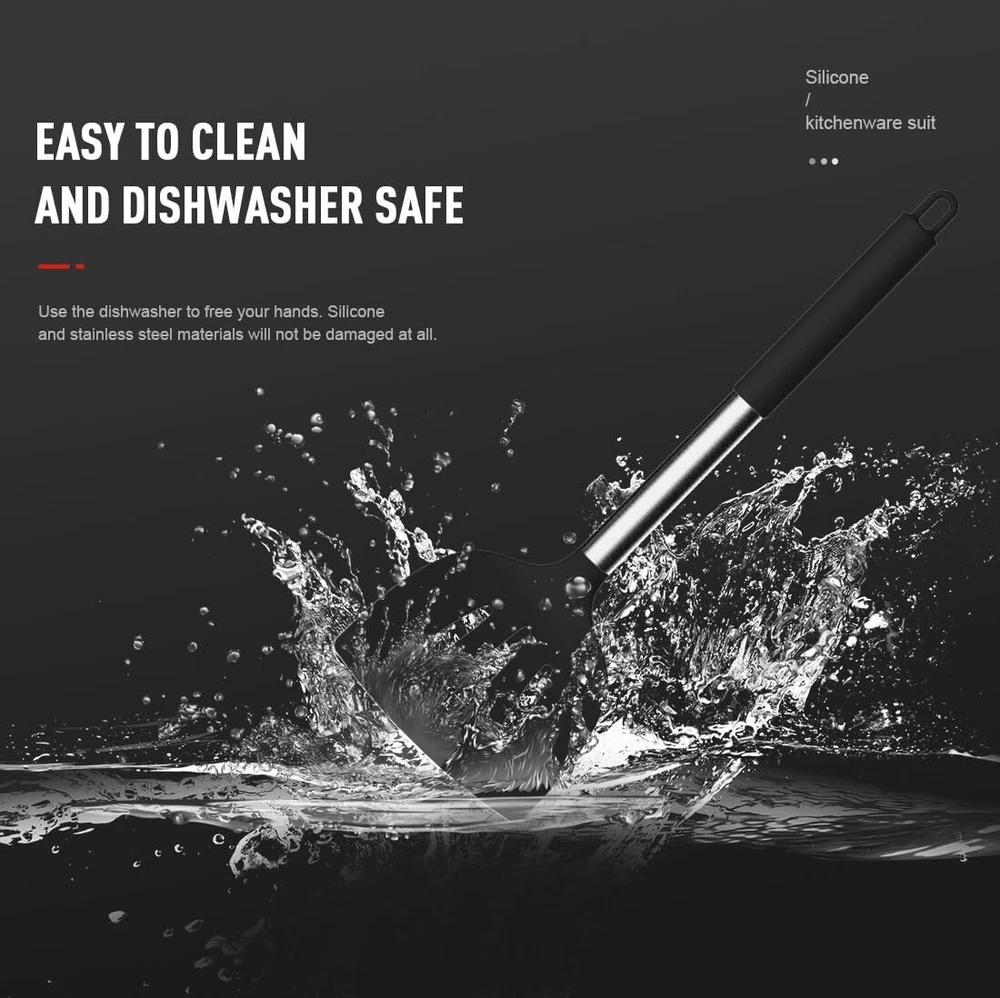Description 18-piece utensils set is a complete set of accessories you will need to make the maximum out of your wonderful little kitchen appliance.They will satisfy all your needs for cooking, would be your great companion in the kitchen. Each of them has its unique use. Slotted Turner, Solid Turner, Deep Soup Ladl, Pasta Server, Flexible Spatula, Spoon Spatula, Spreader Spatula, Slotted Spatula, Bating Brush, Egg Whisk, Slotted Spoon, Solid Spoon, Kitchen Tongs, Utensil crock, Vegetable Peeler, Pizza Cutter, Graters, Silicone Utensil Spoon Rest CORRECT THE SHORTCOMINGS OF MOST KITCHEN UTENSILS. MEET MORE NEEDS - Cooking utensils of increased size no longer look like toys! more stronger and more practical. The perfect combination of 304 stainless steel handle and silicone not only prevents the transfer of heat but is fully compatible with dishwasher safety!Nanotechnology makes the silicone head and stainless steel connection more stable.The large kitchen utensils holder makes it easy to store all the kitchen tools HEAT-RESISTANT, NON-MELTING, ODORLESS - The Silicone Cooking Utensils can withstand temperatures up to 446°F, Even if they are used in the high temperature environment of frying, you don't have to worry that it will melt. It doesn't retain odors or colors when you use it for stirring deep-colored food.Deep Soup Ladle, Solid Serving Spoon, Slotted Spoon, Flexible Spatula, Round Spatula, Pasta Server, Slotted Turner, etc. are made from food grade silicone.protect your pot from being scratched SAFE, BPA FREE, FOOD GRADE SILICONE - The kitchen utensil set are made from the highest quality food grade silicone.BPA free. silicone is safe to use for any type of food. The Kitchen Utensil Set does not react with food or beverages, or produce any hazardous fumes. you don’t have to worry about the health of your families. And it will probably last longer than the other plastic kitchen utensils.It would be your great companion in the kitchen. This Kitchen Tools is the best gift choice for mom NO GAPS, NO FOOD IS CAPTURED, EASY TO CLEAN - Add stainless steel to each kitchenware to maintain an initial optimal memory state. Never warp. And full of flexibility. One-piece molding without any gaps to capture food. Make cleaning easier.This 18-Piece kitchen utensils set will satisfy all your needs for cooking. Everyone of them has its unique use. This is the best cooking utensils set for hotel chefs QUICKLY ANSWER ANY OF YOUR QUESTIONS - Whenever you tell us the challenges you face through Amazon Buyer Page. we will continue to listen carefully. We value you and your open and honest questions, which can help us focus on your most urgent needs.Your question will generally respond quickly within 12 hours