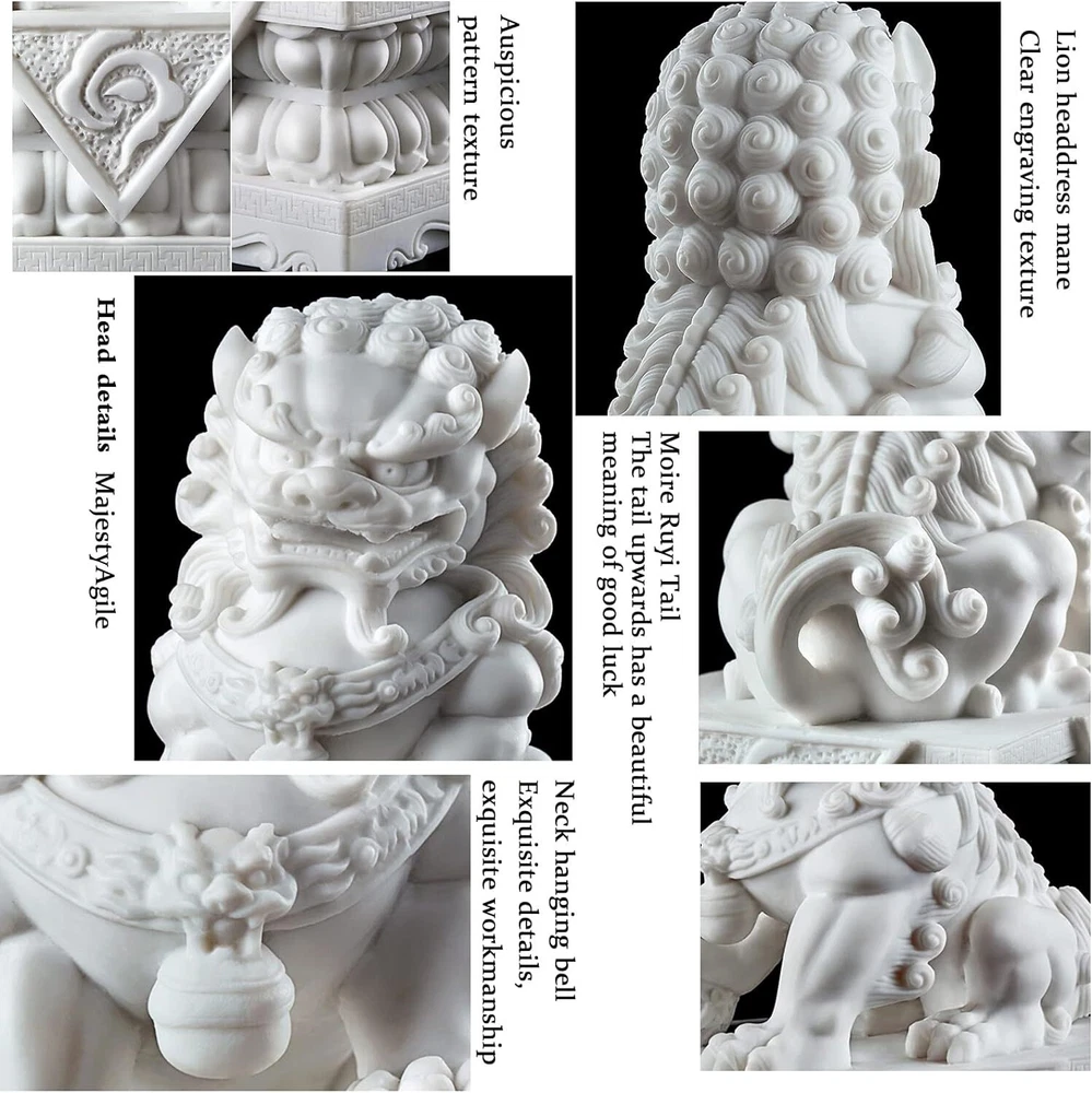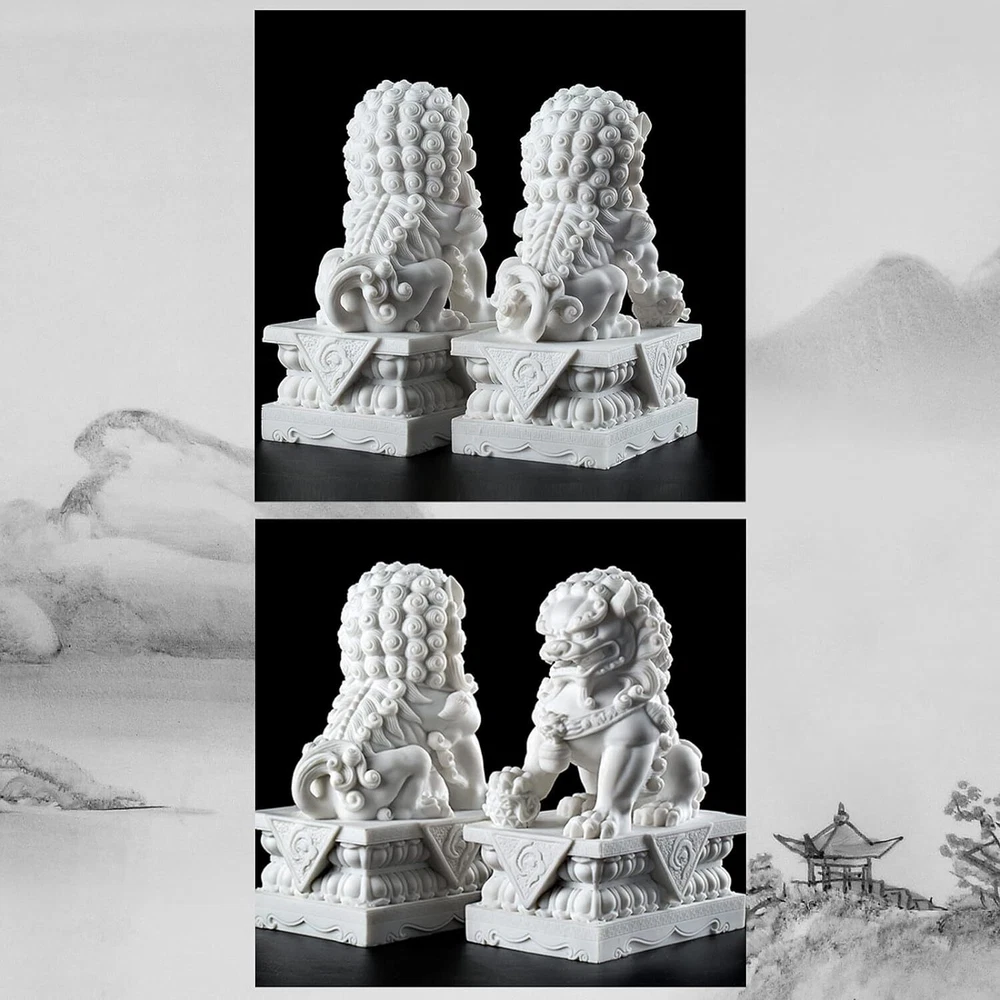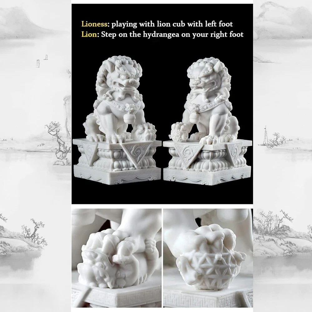 Large Size Foo Dogs Statues Pair Marble Feng Shui Home Outdoor Asian Decor