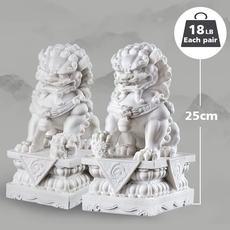 产品描述 Product name: fu foo dogs/Chinese guardian lion Product size: Large size: 11.5cmx16cmx25cm/4.6"x6.3"x9.9" Small: 9cmx13cmx20cm/3.6" x5.2"x7.9" Parcel packaging : 1 pair of lions fu foo dogs : Also called guardian lions, as one of the auspicious beast in the Chinese faith, is a symbol of success, prosperity, and guardianship ATTRACT WEALTH AND PROSPERITY: A male lion is carved with a ball under his claw, symbolizing supreme power and protection of his home; A female lion is carved with a young lion stepped under the claw, symbolizing the prosperity of descendants. With one mouth open and the other closed, wealth is beckoned and guarded WARD OFF EVIL ENERGY: In ancient times, the Fu Dogs were always put at the gates of Imperial palaces, temples, government offices and homes of important officials. Nowadays, they are still used to guard places and used as home decorations to ward off evil energy, adding a sense of calm and good luck to your home's interior CONGRATULATORY GIFT: The pronunciation of a lion sounds like the word master, which implies the promotion of career. In folk, it has become a symbol of bravery, strength and auspiciousness, perfect choice as new year's gifts, store opening gifts, house warming gifts A notice: The color may differ slightly due to the color calibration of each individual monitor. Please allow a slight measurement deviation due to manual measurement.