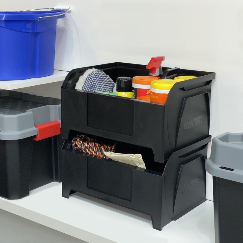 Large Stackable Plastic Storage Bin for Garage Tool Organization
