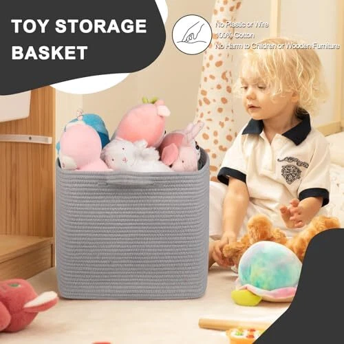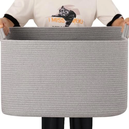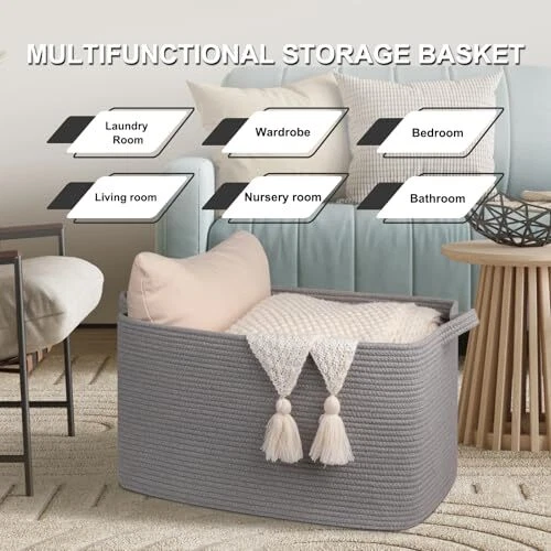 Large Storage Basket, Cotton Rope Woven Blanket Basket, Toy Basket for 65L Grey