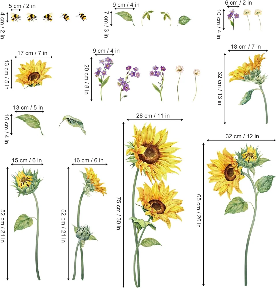It can be stuck onto any clean, dry, non-textured smooth surfaces: walls, windows, tiles, furniture, mirrors, even your refrigerators. decalmile wall stickers are made of high quality, bright and colourful, easy to peel and stick, removable and waterproof. decalmile sunflower wall stickers are perfect to decorate bedroom, living room, headboard, dining room, sofa tv background. Come in 2 sheets, sheet size: 30cm × 90cm (11.8" × 35.4"), recommend finished size: 100cm x 80cm(39.4" x 31.5")or depending on your preference to DIY. If you're not satisfied with your purchase or have any problems on installation, please feel free to contact us and we will reply and help solve problems within 24 hours. Product Description DECALMILE PLANTS WALL DECALS Add Chill Vibes Various Choices with Unique Design decalmile stock a huge selection of stunning wall stickers catering to all ages and tastes. We promise all stickers are non-toxic and top quality PVC material Wall Decals for Kids Become an interior decorator and transform your living space from ordinary to extraordinary with decalmile unique wall stickers. Trending Tree Wall Decor Add to Cart Add to Cart Add to Cart Add to Cart Add to Cart Add to Cart Add to Cart Customer Reviews 4.5 out of 5 stars 308 4.1 out of 5 stars 173 4.4 out of 5 stars 379 4.4 out of 5 stars 223 4.4 out of 5 stars 376 4.6 out of 5 stars 39 4.5 out of 5 stars 986 Price $18.99 $ 18 . 99 $18.99 $ 18 . 99 $18.99 $ 18 . 99 $17.99 $ 17 . 99 $18.99 $ 18 . 99 $17.99 $ 17 . 99 $21.99 $ 21 . 99 Removable ✔ ✔ ✔ ✔ ✔ ✔ ✔ Reusable ✘ ✘ ✘ ✘ ✘ ✘ ✘ Material PVC PVC PVC PVC PVC PVC PVC Installation Type Peel & Stick Peel & Stick Peel & Stick Peel & Stick Peel & Stick Peel & Stick Peel & Stick Theme Pine Tree Birch Tree Palm Tree Green Tree Green Tree Maple Tree Birch Tree Blossom Tree & Leaf Add to Cart Add to Cart Add to Cart Add to Cart Add to Cart Add to Cart Add to Cart Customer Reviews 4.6 out of 5 stars 510 4.8 out of 5 stars 167 4.4 out of 5 stars 387 4.5 out of 5 stars 612 4.3 out of 5 stars 739 4.3 out of 5 stars 739 4.6 out of 5 stars 599 Price $21.99 $ 21 . 99 $19.99 $ 19 . 99 $12.99 $ 12 . 99 $11.99 $ 11 . 99 $16.99 $ 16 . 99 $11.99 $ 11 . 99 $12.99 $ 12 . 99 Removable ✔ ✔ ✔ ✔ ✔ ✔ ✔ Reusable ✘ ✘ ✘ ✘ ✘ ✘ ✘ Material PVC PVC PVC PVC PVC PVC PVC Installation Type Peel & Stick Peel & Stick Peel & Stick Peel & Stick Peel & Stick Peel & Stick Peel & Stick Theme Cherry Blossom Tree Cherry Blossom Tree Cherry Blossom Tree Pink Blossom Tree Boho Palm Leaf Green Leaf Green Leaf What types of surfaces can the wall decals be applied to? Our wall stickers can be applied to just about any clean and smooth surface that is free of dust, grease, or other contaminants. DecalMile wall stickers may not adhere to heavily-textured surfaces but can adhere to lightly textured wall. How long will my wall sticker stay up? DecalMIile wall stickers are not intended for permanent application. However, they can last for months or years depending on the surface and environment. Will the wall decals damage my wall? When walls have been prepared as recommended and proper application, most people have no wall damage issue while removing. Please be aware that there is potential for wall damage. Freshly painted walls should be allowed to cure for at least 4 weeks. I installed a wall decal but it is starting to peel off. What do I do? If part of a wall sticker starts to come off a surface, you can use washable glue, such as a glue stick or wallpaper paste or glue, to reattach it.