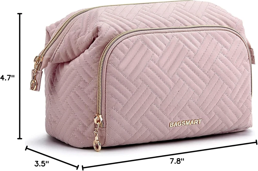 This travel makeup bag is a game-changer! Spacious and well-designed, it keeps all my cosmetics and toiletries neatly organized. The wide-open pouch makes it easy to find what I need, and the durable material holds up perfectly on trips. Love how versatile it is—works as a makeup case, toiletry bag, or even a stylish clutch. Perfect for travel or everyday use, and the quality is fantastic. Highly recommend!