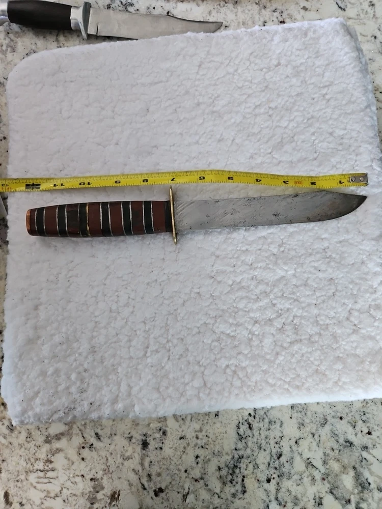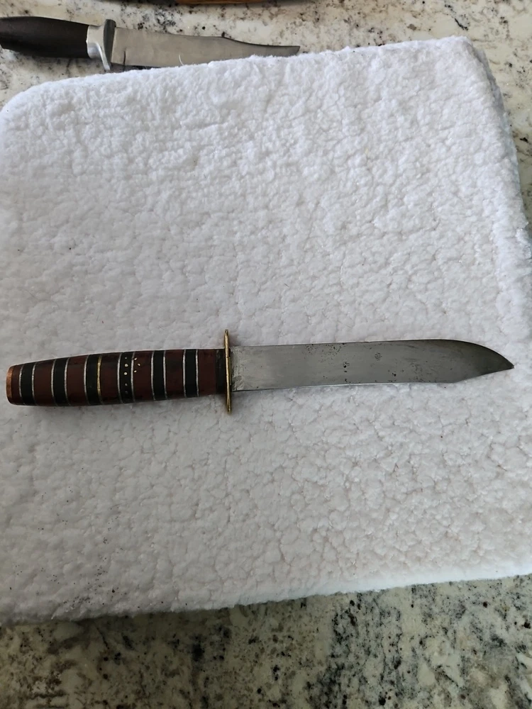 This is a large vintage Bowie knife that has been handmade. It is a collectible item and falls under the category of vintage fixed blade knives. The knife is custom and unique, making it a great addition to any collection.