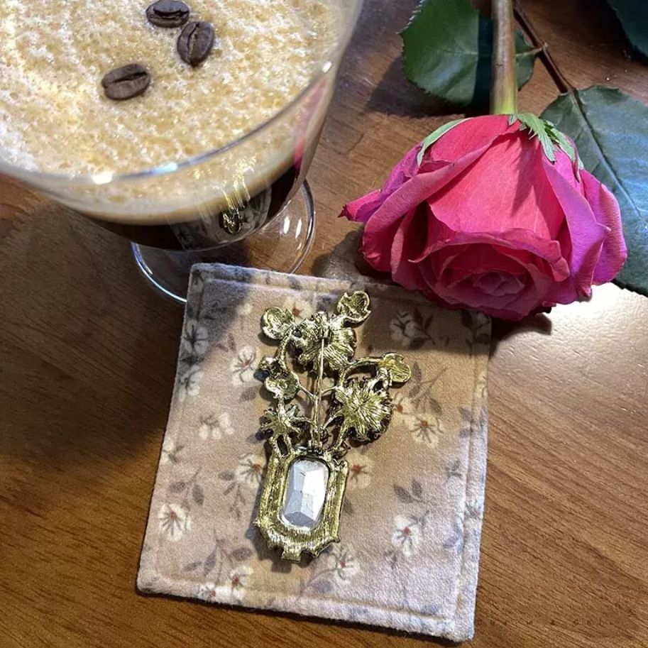 Large Vintage Crystal Rhinestone Flowers in A Green Vase Brooches Pins for Women