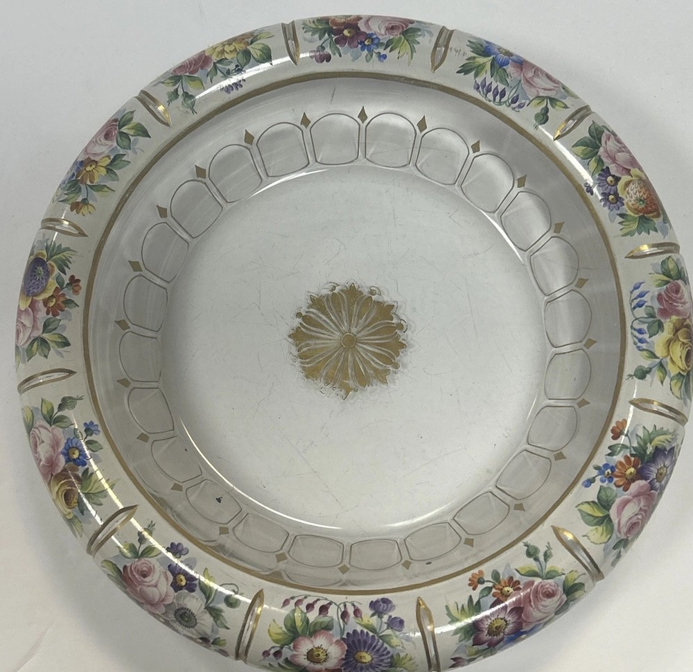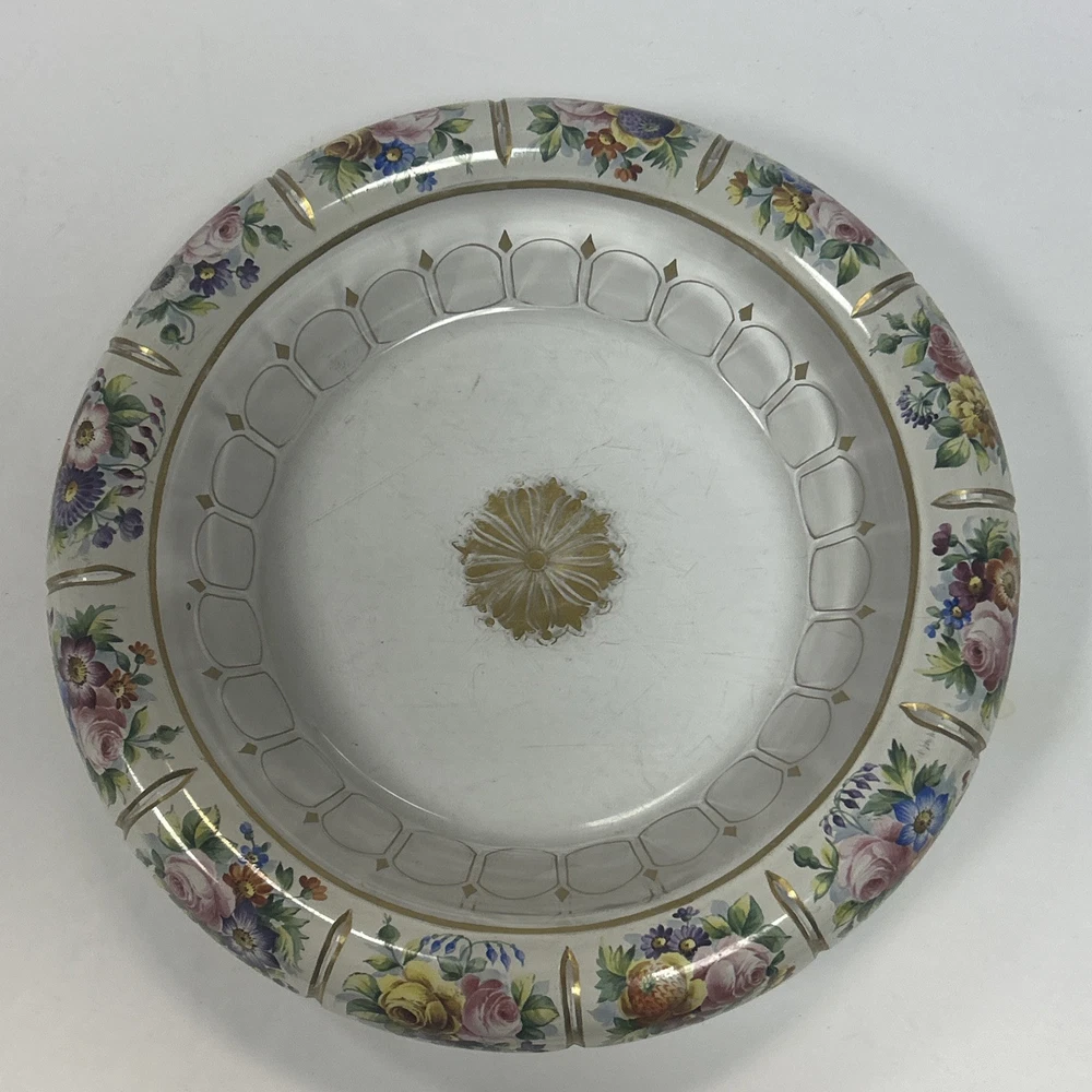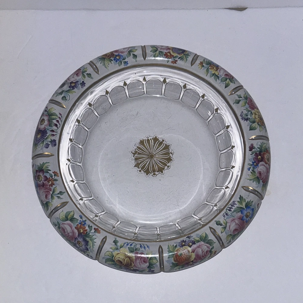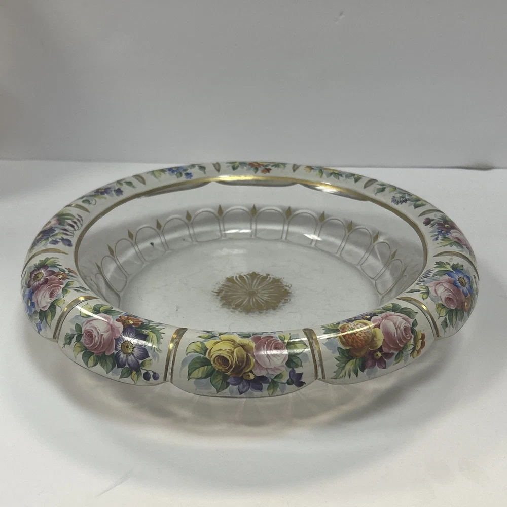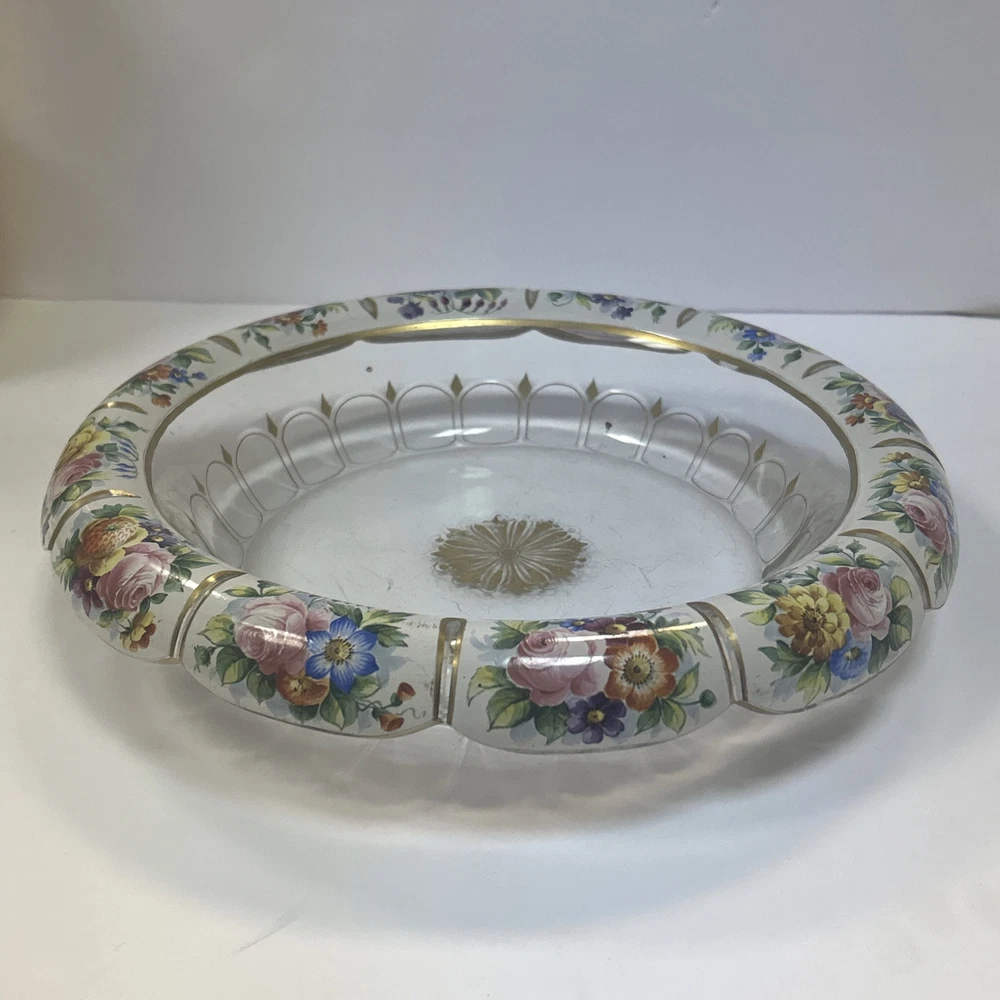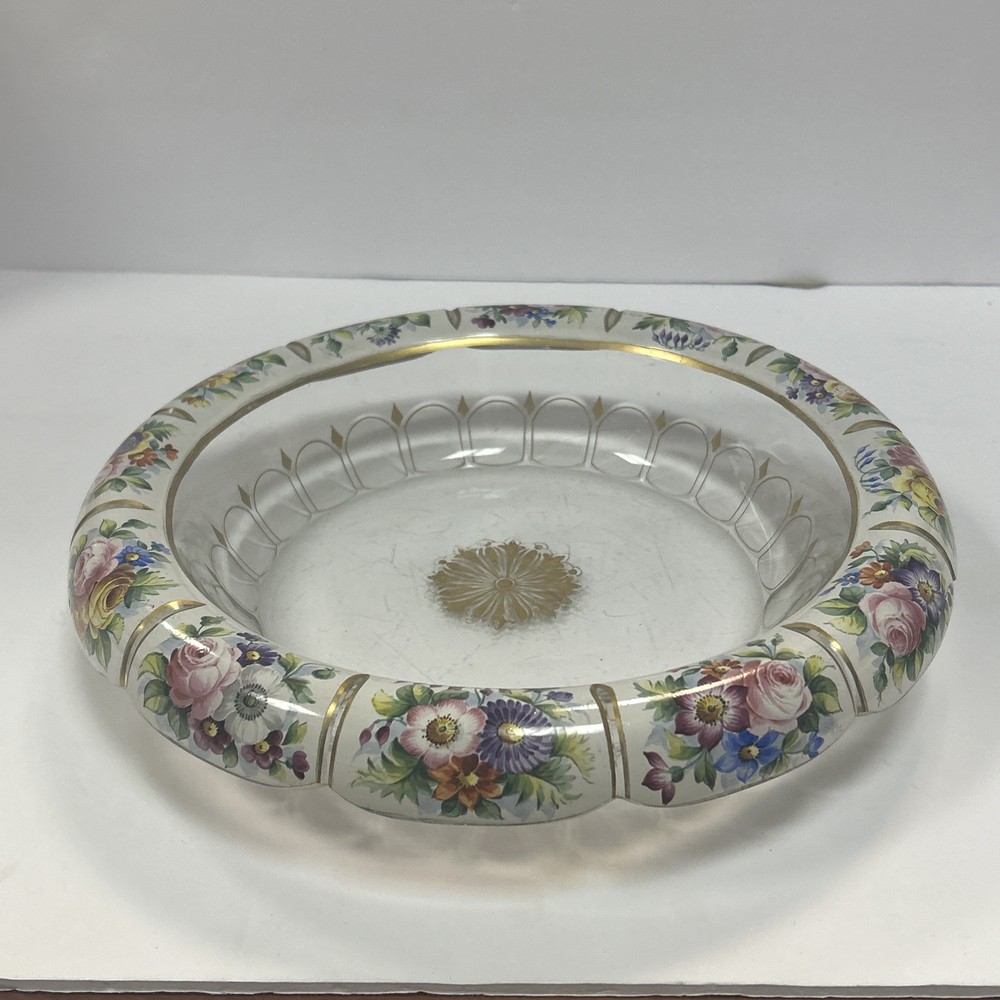 Department: Adults Subject: Flower Occasion: All Occasions Color: Multicolor Features: Floral Brand: Unbranded Care Instructions: Clean with Damp Cloth Material: Glass Packaging: Unboxed Original/Reproduction: Original Finish: Gold Suitable For: Trinkets Time Period Manufactured: 1980-1989 Pattern: Floral Invent: PCP Room: Any Room Country of Origin: Unknown Type: Bowl Shape: Round Size: Large