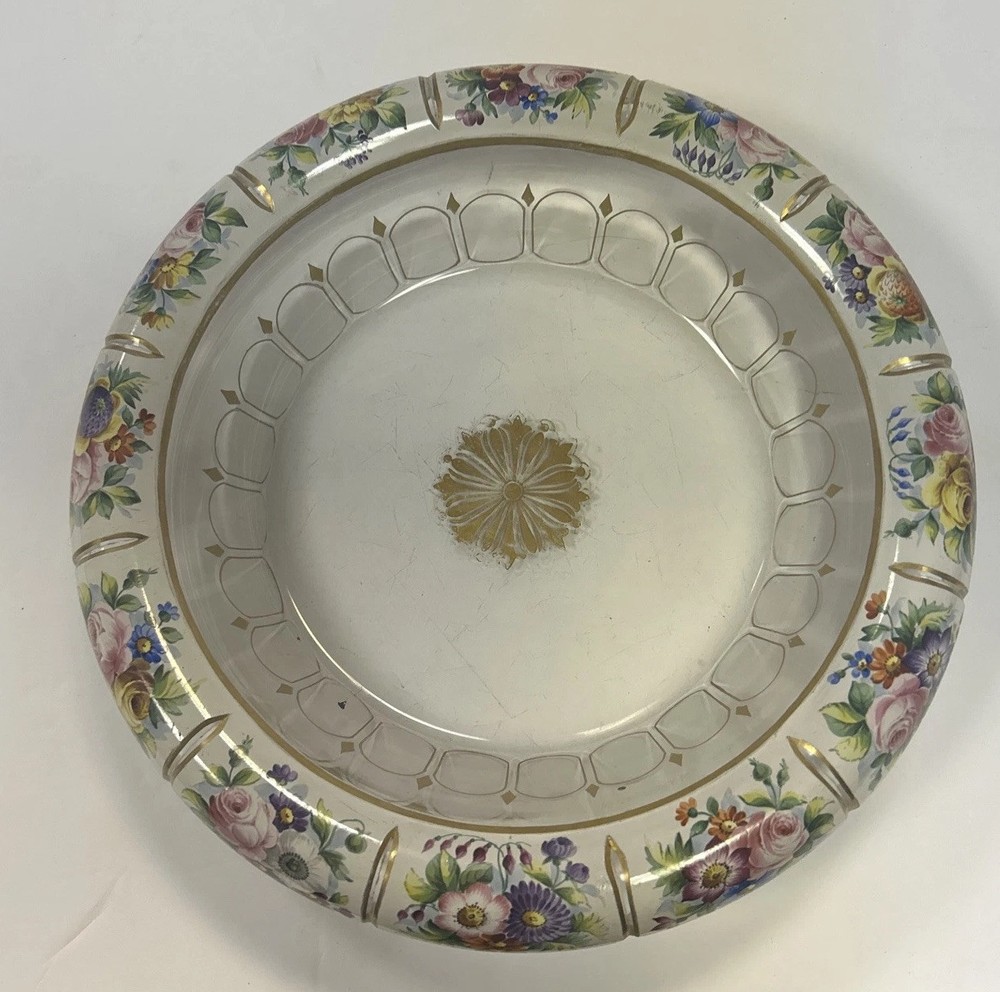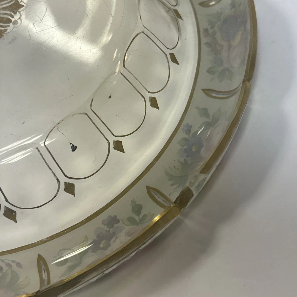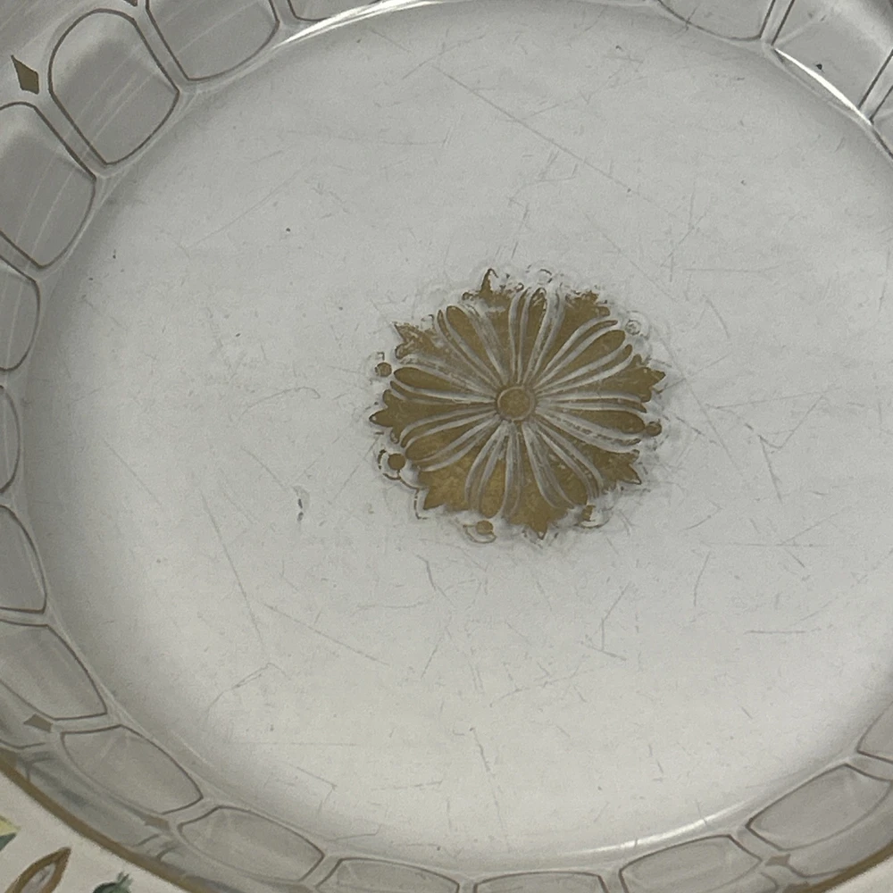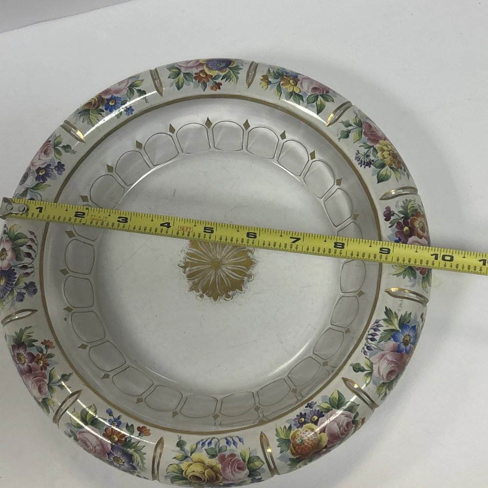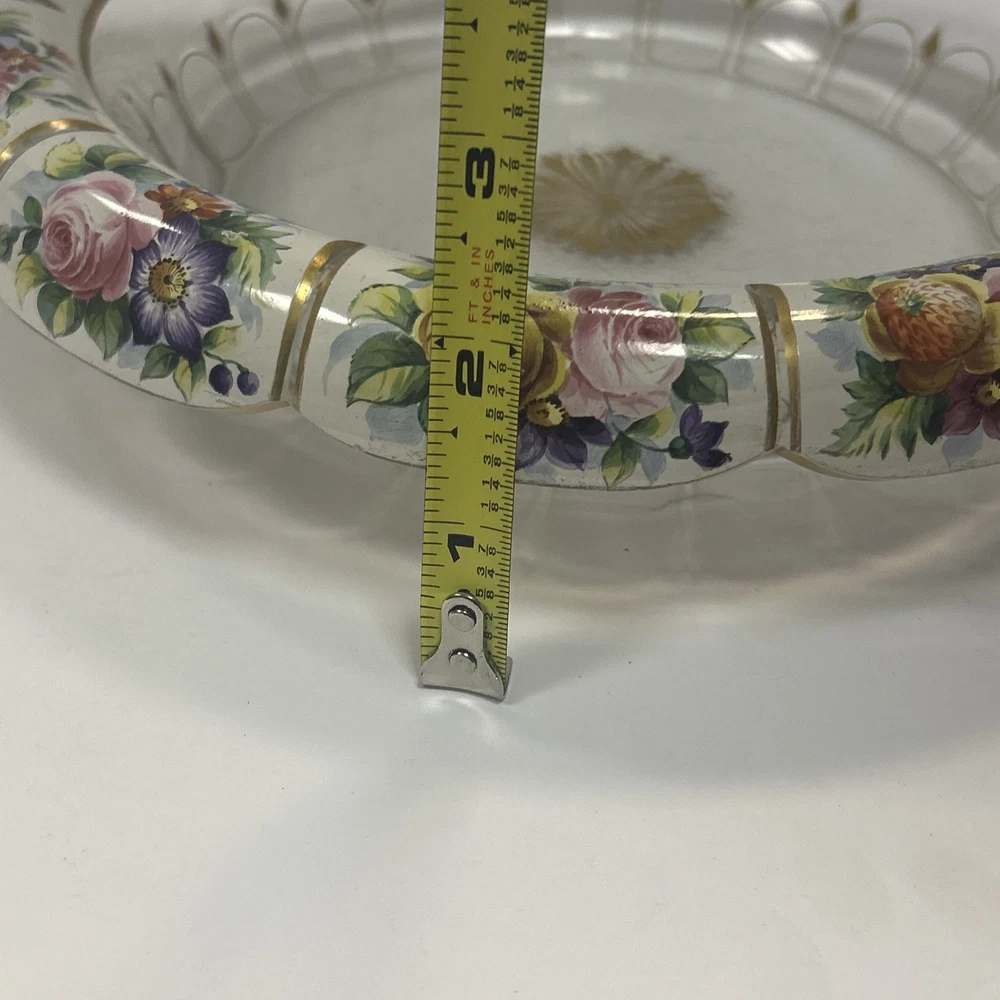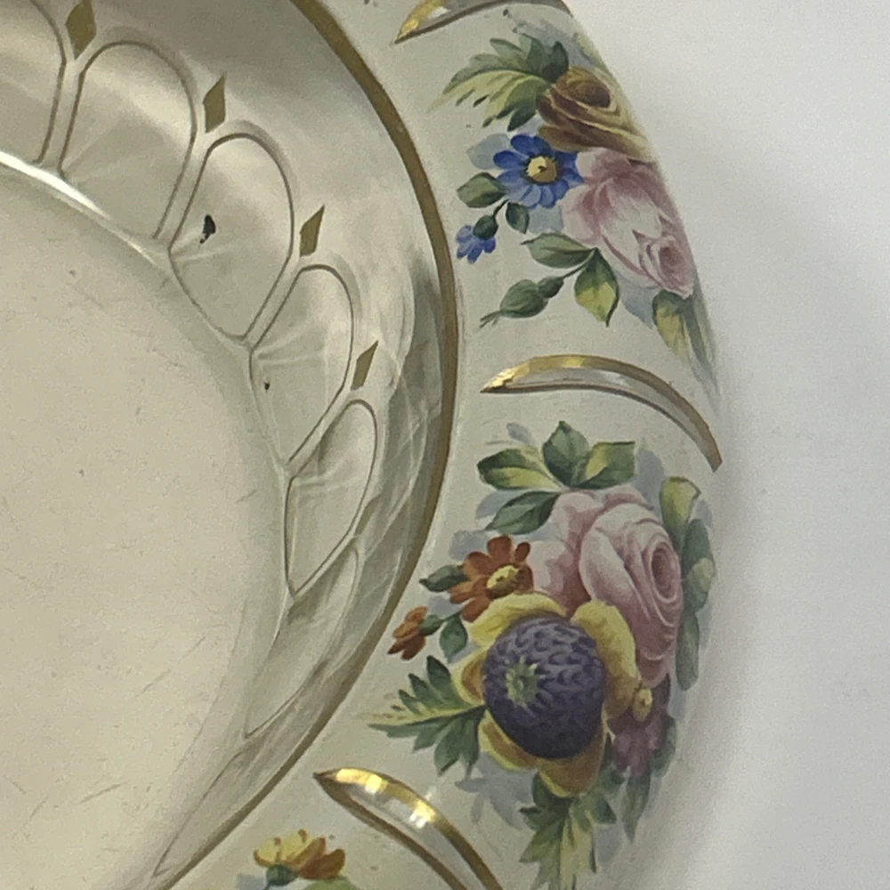 Department: Adults Subject: Flower Occasion: All Occasions Color: Multicolor Features: Floral Brand: Unbranded Care Instructions: Clean with Damp Cloth Material: Glass Packaging: Unboxed Original/Reproduction: Original Finish: Gold Suitable For: Trinkets Time Period Manufactured: 1980-1989 Pattern: Floral Invent: PCP Room: Any Room Country of Origin: Unknown Type: Bowl Shape: Round Size: Large