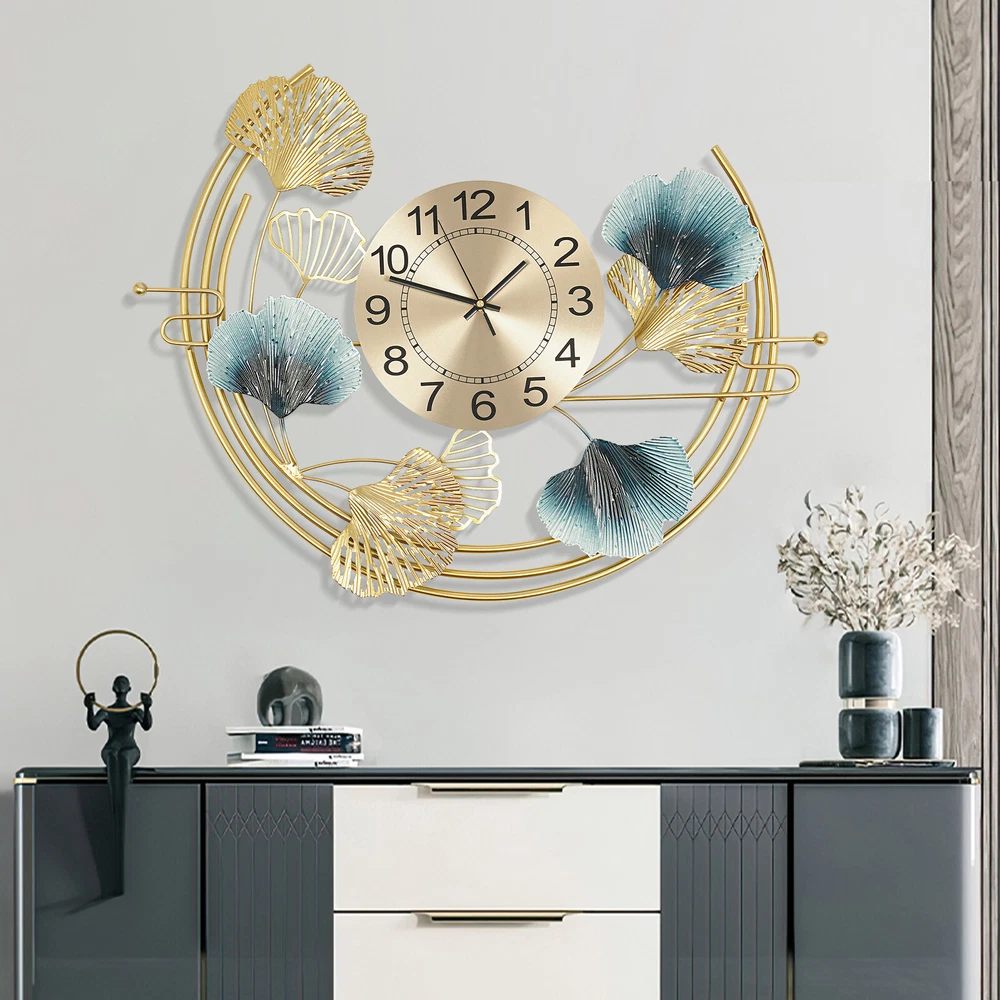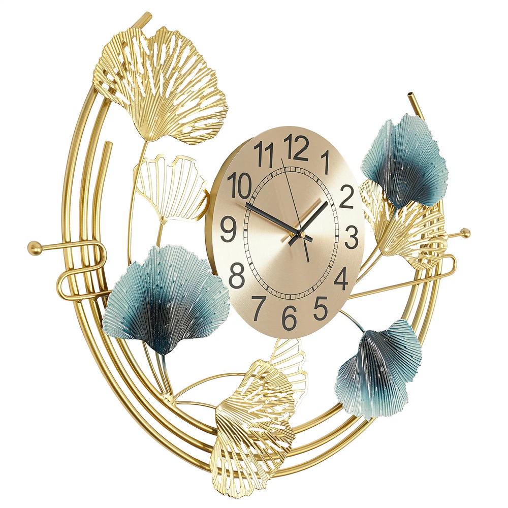 Large Wall Clock for Living Room Decor Decorative Wall Clock Gift! Description Life requires a sense of ritual. This wall clock combines modern and light art with a minimalist design, adding elegant and contemporary elements to your living space. Use it to shape a tasteful and comfortable space, advocate a quality life, and bring you a good mood! Key Features Build to Last: It is made of high-class iron with a baking paint process which is not easy to wear, deform, or fade, rust-resistant, eco-friendly. Enjoy Quiet: It features a silent movement without making extra noisy sounds, giving you and your family a peaceful evening and leisure time. Easy to Read: It features a wide round dial with clear Arabic numerals(1-12)and large black-colored hands for comfortable, at-a-glance reading. Fancy Decoration : The simple round clock dial with gold and blue ginkgo biloba exudes a unique artistic flavor, adds elegance and enhances the taste of the home space. Simple Installation : The simple construction and a hanging slot on the back of the product allows you to add modern style to your home or workspace in just a few minutes. Easy to Clean: Thanks to its smooth surface and simple construction, you can wipe the surface clean of stains with a rag. Time Witness: The wall clock records every second of the warm moments you spend with your family. It is the witness of your good memories. Ideal Gift: With the aesthetics and practicality, you can give it to your friends as a Christmas, holiday, or housewarming gift. Details Round Edges: The smooth edges enhance safety during installation. Enclosed Gear Compartment: The enclosed design protects the gear compartment from water splashing and dust accumulation, making it safer to use and easier to clean. Application It is suitable for the living room, entrance, corridor, office, study, bedroom, dining room, hall, lounge, kitchen, loft, cafe, and other occasions. How to Install 1. Use a ruler (not included) to measure the distance of the hooks and mark the holes on the wall with a pen. 2. Use a drill bit (not included) to mark the holes. 3. Insert the expanded plastic plug into the hole. 4. Put the nails into the plastic plug to hang the clock. Specification Color: Gold and Blue Shape: Round Style: Modern Material: Iron Process: Baking Paint Mounting Type: Wall Mount Power Source: Battery Powered Battery Type: 1*AA Carbon Battery(Not Included) Time Indication: 1 Lap for 12 Hours Clock Diameter: 22cm/8.66in Product Size(L*H): 67*52cm/26.38*20.47in Package Size: 72*58*8cm/28.35*22.83*3.15in Gross Weight: 2.2kg/4.85lbs Net Weight: 2kg/4.4lbs Package Included 1* Wall Clock Other Accessories for Use Notes Please use 1 AA carbon battery (not included), and do not use high-performance batteries such as alkaline batteries that will affect the life of the movement and sometimes even the accuracy of the time. If the time is inaccurate during use, please replace the battery in time. If you want to install it on tiles, please install it at the joints to avoid damaging the surface of the tiles. If the product accidentally sticks to acid (e.g. sulfuric acid, vinegar) or alkali (e.g. nail polish, soapy water, soda), you should immediately rinse off the stained area with water and then dry it with a dry cotton cloth(not included). We recommend using cotton fabric as a rag to wipe the surface of the product. Please avoid direct sunlight on the product from windows. Please allow the slight color difference caused by the shooting light and 1-3cm error due to manual measurement, and make sure you do not mind before you place the order. Payment Delivery details Terms of sales About us Contact us Payment We accept ebay payment 。 Fees such as import duties, taxes are not included in the item price or shipping costs. These charges are the buyer's responsibility. Delivery details Shipping: 2-9 working days to: USA Terms of sales We maintain high standards of excellence and strive for hundred percent customer satisfaction. Feedback is very important to us. We hope that you contact us immediately before you give neutral or negative feedback, so that we can address your concerns. It is impossible to address issues if we do not know about them! About us Your satis faction is our ultimate goal. We work hard to earn your trust and future business. Our certified technicians have tested each item before shipping. The unit comes with 1 year limited warranty on all manufacturing defects. a) If you receive a defective item, you may return it or ask for a discount. Please contact us within 14 days after you receive the package. b) What you returned must be intact and in its original packaging as re? u. Customer is responsible for shipping costs of the returned item. c) We will cover the cost of shipping back t with the shipping rate indicated in the registration page. We will send you a new unit or refund the full payment you paid. Thank you. Contact us Business Hour Business Hour: Monday To Friday: 8:30 AM to 5:00 PM (Beijing China time) Due to time zones, our reply to your questions may not be immediately. But within above working time, we will reply your email within 24 hours. If it's non-workdays, please kindly be patient and wait till Monday. Please contact us with ebay message. Please feel free to contact us if you have any questions. Monday To Friday: 8:30 AM to 5:00 PM (Beijing China time) Due to time zones, our reply to your questions may not be immediately. But within above working time, we will reply your email within 24 hours. If it's non-workdays, please kindly be patient and wait till Monday. Please contact us with ebay message. Please feel free to contact us if you have any questions.