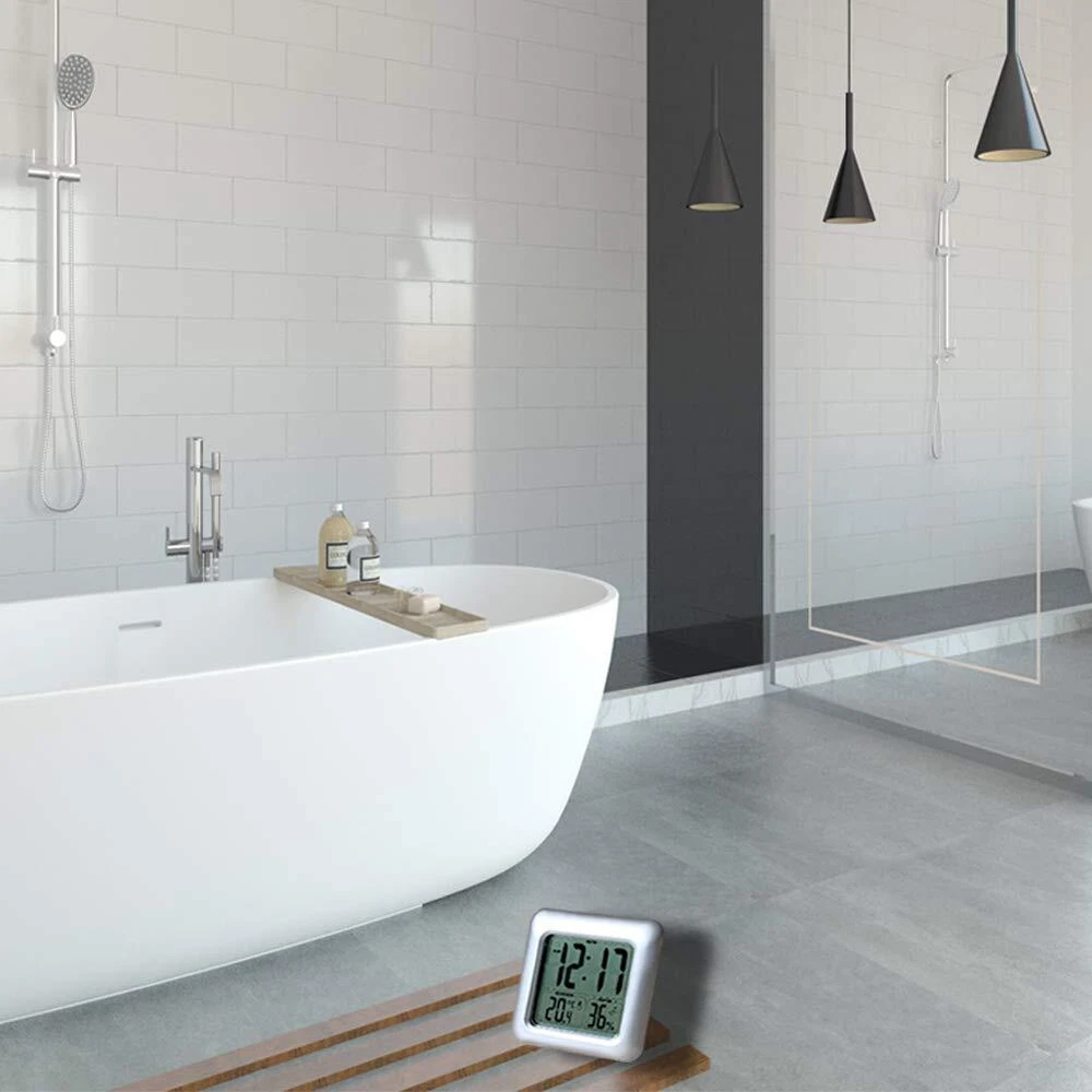 Large Waterproof Bathroom Wall Clock, Big Water Resistant Hanging Shower Clock for Bath Countertop, Moisture Proof Temperature Humidity Meter, Suction Clock Watch Time in Shower [Shatterproof Glass] Waterproof for water splashes,ideal water resist large clock, perfect for use on bathroom mirror or shower room mirrors and kitchen.the display is very large and easy to see,so it is easy to keep track of time and to save water while taking shower. the four suction cups on the back keep the clock suck on mirror or the smooth bathroom wall very well (make sure to clean and moisten the both of the surface and the suction cups before putting it up) It is not only a clock,but also a thermometer, hygrometer, which monitor the indoor humidity and temperature. celsius and fahrenheit (c/f) switchable, range 0°c ~ 50°c (0°f ~ 122°f). it is sealed up well enough to handle bathroom environment, as always, the clock can provide accurate temperature, humidity and time under wet or other harsh conditions. Time in 12/24 hour mode optional. big time display for easy reading in your bathroom or hall even from a distance with its big bold numbers. the numbers are large and can be viewed from various angles around the room.simply powered by 1*aa (not included) [Dimension: 6.6"L x 2.36 " W x 6.6 " H] Best large clock gift for your parents. this digital shower clock with thermo-hygrometer is modern and beautiful, easily attached on mirror with magnet suction cups. packed in a beautiful box, ideal for birthdays gifts, also it is suitable for decoration for home,hotel,elderly or children’s room. Flexible placement by 3 mounting options. the shower clock can stand on a table, bathroom vanity, kitchen table, office desk, or shelf desk by pulling out the table stand brackets from behind the clock. also it supports hanging on the wall by using the hanging hole. as the greatest feature,you can suction it on smooth vertical surface with four strong suction cups , like glass, window, mirror, tiles, stainless steel and any non-porous surface. SHIPPING Domestic Buyers - We have confidence in our products, but if you are not fully satisfied please contact us within 30 days of purchase and you will get full refund. - We ship within 3 business days of payment, usually sooner - We offer FREE shipping on all orders! - We only ship to the lower 48 states, no APO/FPO addresses or PO Boxes allowed International buyers – please note: Import duties, taxes, and charges aren't included in the item price or postage cost. These charges are the buyer's responsibility. - Please check with your country's customs office to determine what these additional costs will be prior to bidding or buying. * Order Cancellation Policy ** You can return a product for up to 30 days from the date you purchased it. 1. The seller reserves the right to cancel the special case only due to eBay cancellation fee. 2. The decision of seller is the final. 3. The seller will respond to the cancellation request within 2 business days. Please wait for the result of cancellation. 4. In case the cancellation is not completed by some reasons, the buyer can follow the options below to get the refund. 4.1 The buyer can reject the item when it arrives. 4.2 The buyer can send the item back to the seller within 30 days If the buyer receives item (USA Shipment ONLY). The seller will provide the FREE return label to the buyer when the buyer opens " Return Item" case on eBay by using the reason as "Change my mind" ONLY. 5. When buyer has placed the order. The order will be processed and completed by automatic warehouse system within 5 minutes. In case that buyer sends the cancellation request after 5 minutes of placing the order, the request will be rejected. **Sending direct message to cancel the order is not allowed for every case.* Return Policy For the return case - If buyer would like to return the items for refund or replacement, please CONTACT SELLER to receive the free return label from seller. The refund or replacement will be processed with the tracking number of return label which is provided by seller only. The other ways of return which are not approved by seller will not be processed for the refund or replacement.