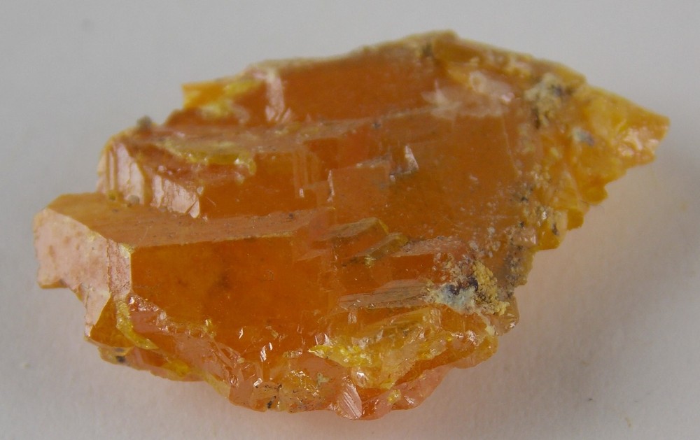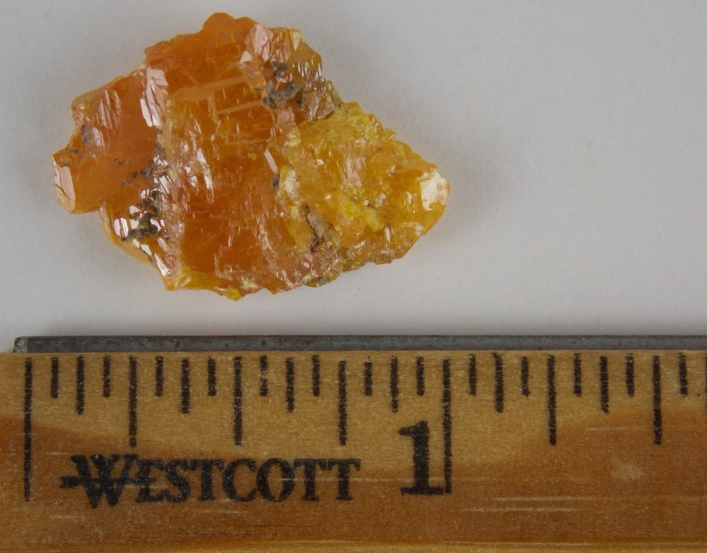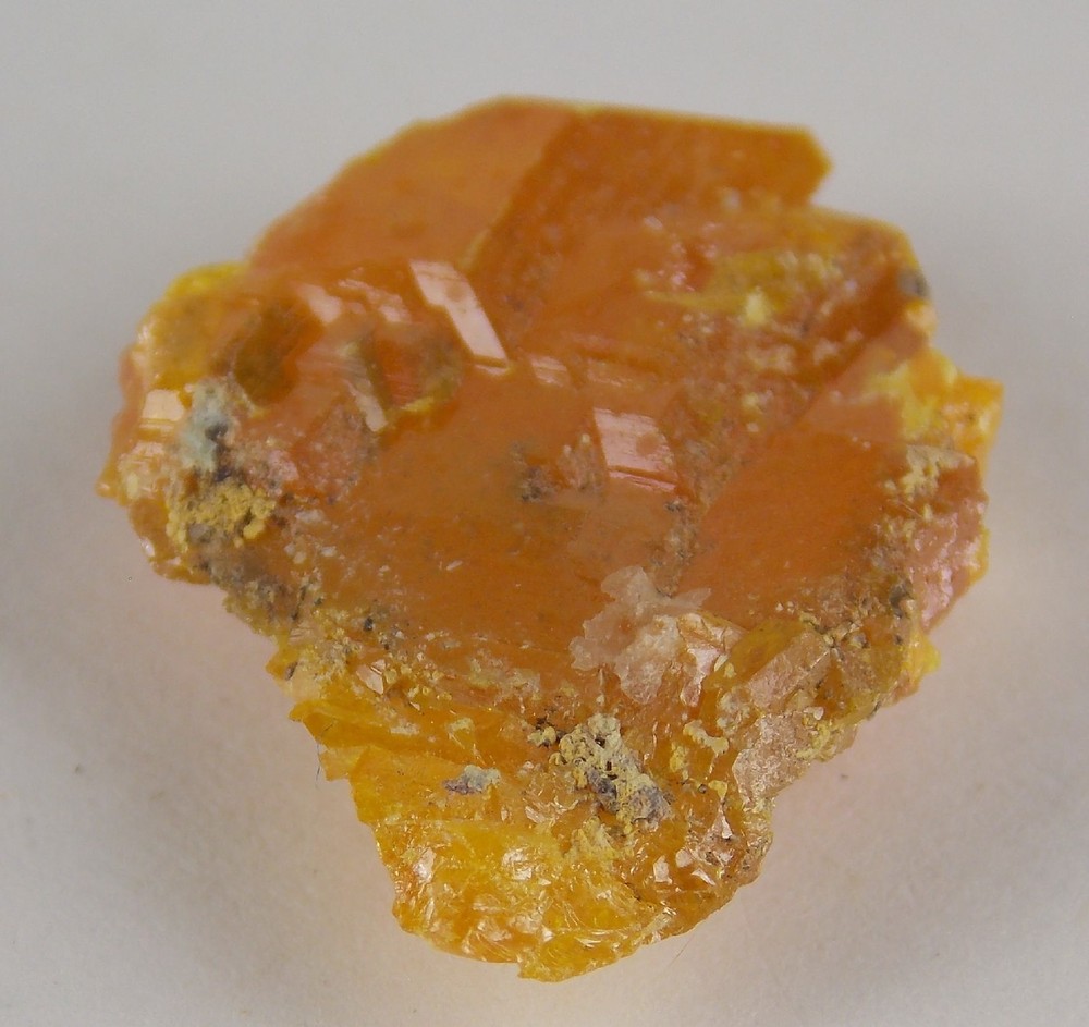 LARGE WULFENITE CRYSTAL - 2.4 cm - OLD YUMA MINE, ARIZONA 29012 LARGE WULFENITE CRYSTAL - 2.4 cm OLD YUMA MINE, ARIZONA This is a very good thumbnail specimen from this old time location. The abandoned workings at the Old Yuma near Tucson were like a training ground for many of Arizona's premier mineralogists and collectors a number of decades ago. Being too close to the suburban expansion of Tucson, the mine was reclaimed years ago. Wulfenite specimens from the Old Yuma are no longer seen frequently. This specimen is an example of a single crystal off matrix. The crystal has damage around its edges with beautiful faces of a non textbook tetragonal habit. It has a wonderful deep orange to yellow color. The Mineralogical Record Vol. 14, No. 3 (1983) has a great article on this mine. (and some super wulfenite photos) Location: Old Yuma Mine, Tucson Mountains, Pima County, Arizona, USA Dimensions: 2.4 x 1.7 x 0.5 cm For dimensions in inches, click on the photo with the ruler. Net Weight: 5 grams Stock number 29012 We invite you to view the specimens, jewelry and cabs from Belkis Minerals ebay store. Listing and template services provided by inkFrog