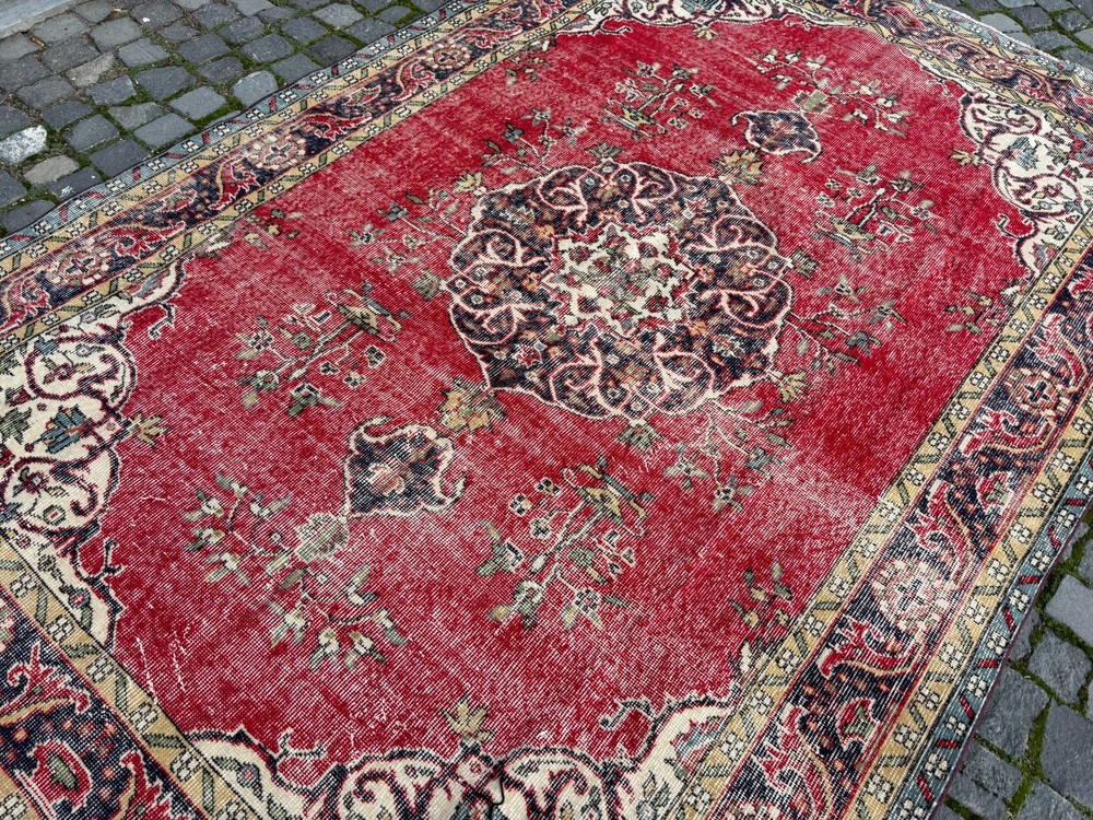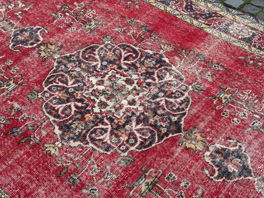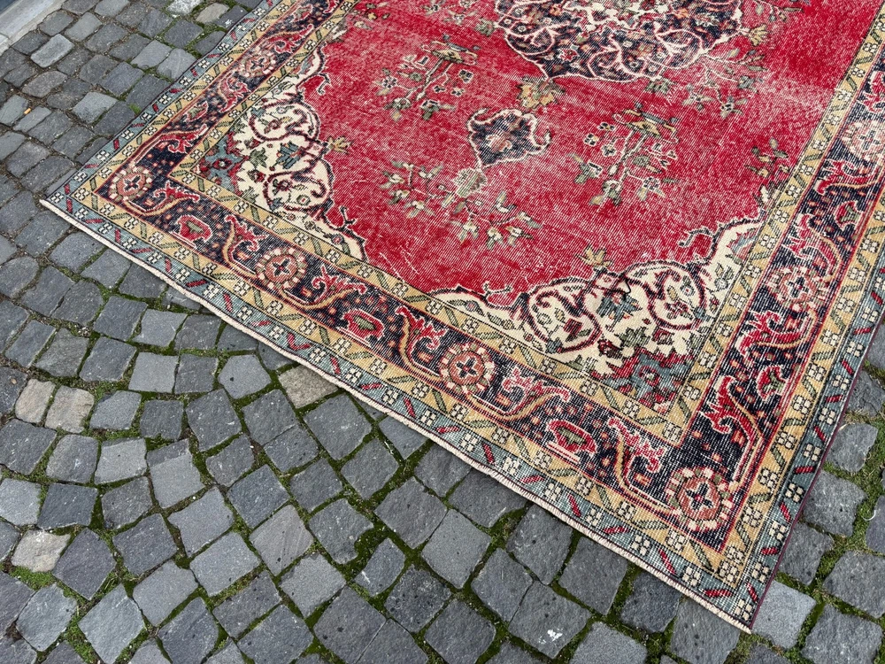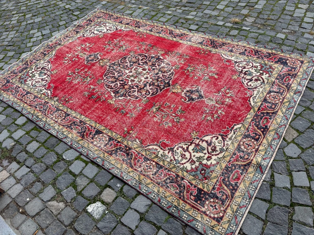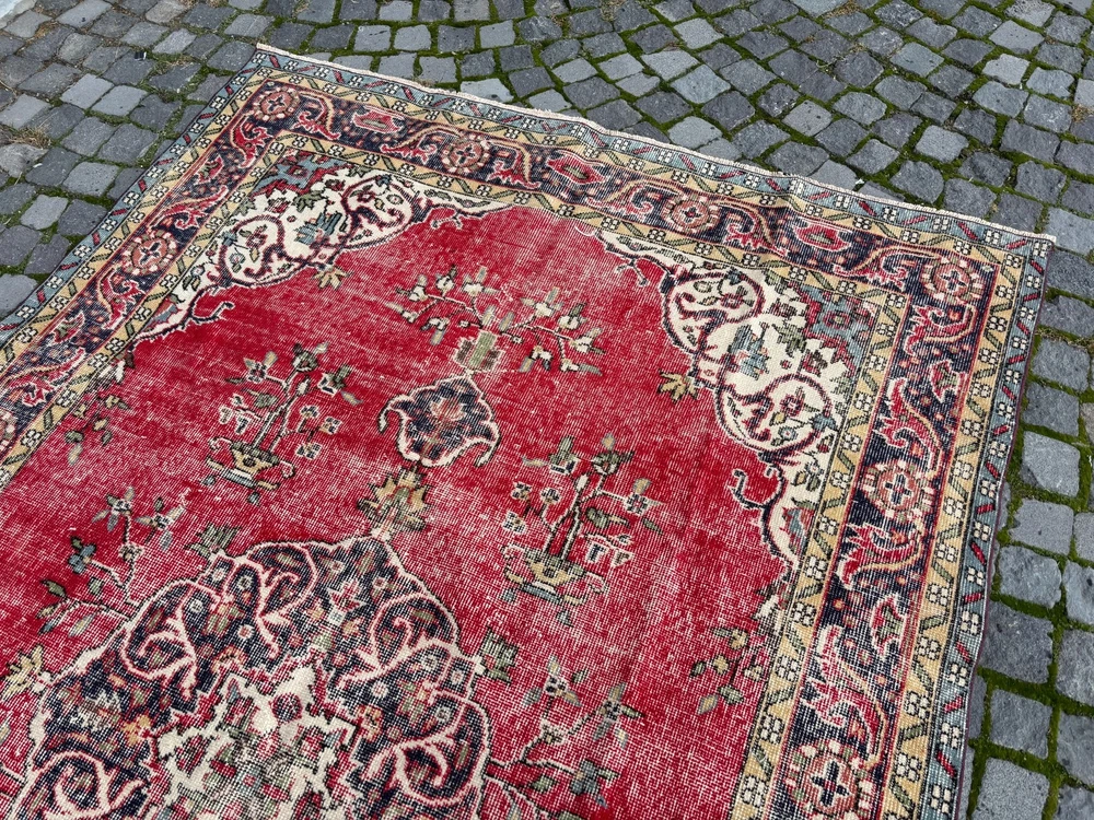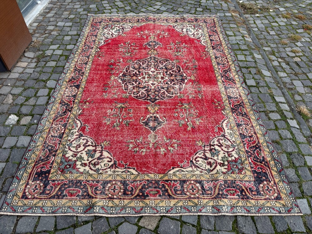 An old (approximately 45-60 years old) hand knotted / hand woven Turkish rug from the Middle Anatolian Region and made of genuine, high quality wool, in natural colors. Our distinguished Antiques and Vintage rugs, each with its own unique story, have been carefully selected from every corner of Turkey. RUG DETAILS * One-of-a-kind vintage rug * Dimensions: 6,3 x 9,5 ft = 76 x 115 inc = 193 x 291 cm * Low pile: approximately 0.2"(0.5 cm) * Dyed with natural dyes * Product code : LY 024 SHIPPING * Free shipping on all items. * Usually shipped via FedEx or UPS. * Item will be ready for shipment within * Estimated delivery 3-5 business days 1-3 business days with a tracking number. All of our rugs have been professionally cleaned and ready to ship before being listed. These unique vintage rugs have normal wear related to their age. We believe this adds to the authenticity of these hand-woven beauties. We inspect all rugs carefully before Shipping, but in the unlikely event that due to our fault, the goods are not fit for purpose, damaged/defective, or we ship the wrong item, we will issue a 100% refund. We are a team of experienced professionals who are dedicated to ensuring your items arrive safely. Please note that our photos accurately represent the colors of the rug, however it may look different in the light in your home or against different colored floors. We are so excited to share the beauty and art of rugs with you and to see how your personal spaces transform! I do my best to build a great experience in online rug shopping for you, just look at the reviews. Please feel free to write me over conversation if you have any questions about the rug or price. I will be happy to answer to you. Thank you, Yusuf.