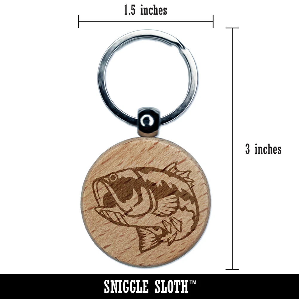 Largemouth Bass Fish Fishing Engraved Wood Round Keychain Tag Charm