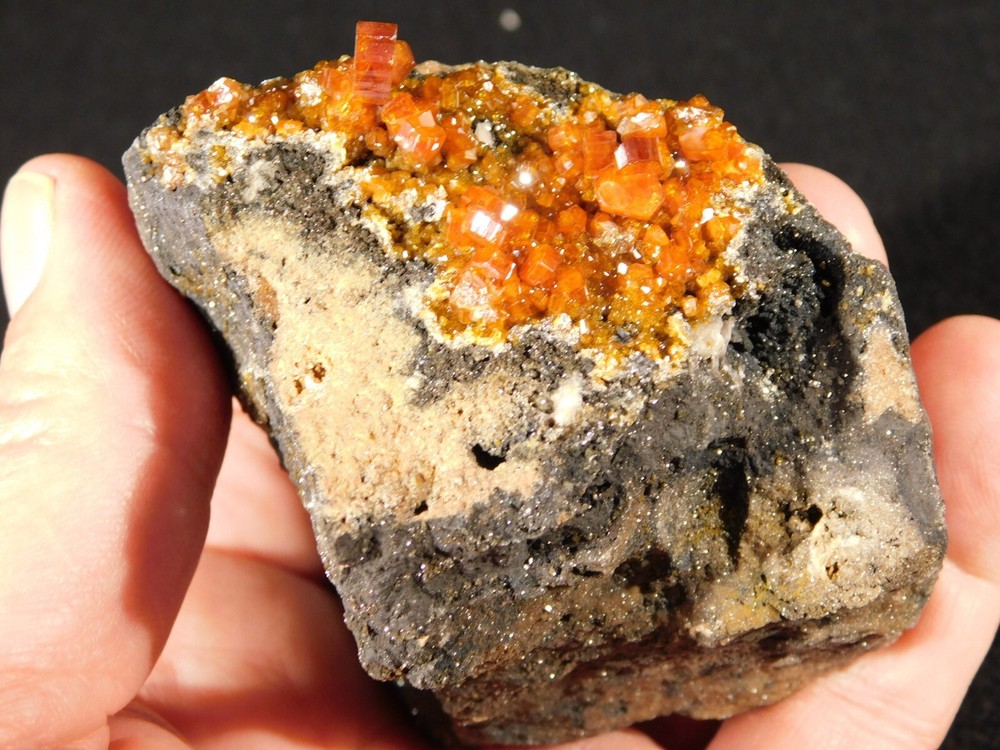 Hello, here is a Larger! 100% natural Vanadinite Crystal cluster with PERFECT shiny DEEP ORANGE crystals on a contrasting BLACK colored matrix! This cluster was mined in Morocco. Please note that this piece is WAY nicer in person as it is difficult to get all of the detail and true colors to show up in the photos! The overall cluster or matrix measures around 3 3/8" or 8.35cm at its biggest or from opposing side to side. INTERNATIONAL BUYERS PLEASE NOTE : Import duties and taxes are not included in the price of the item or the shipping charges. These are the buyers responsibility. If you are concerned about them, please check with your country's customs office before purchasing. RETURN POLICY We guarantee you will be satisfied with your item or we'll refund your purchase price, less shipping charge, upon safe return of the item in original condition within 14 days. Prior to returning the item, please contact within 48 hours of receiving item. Buyer is responsible for all return shipping charges.