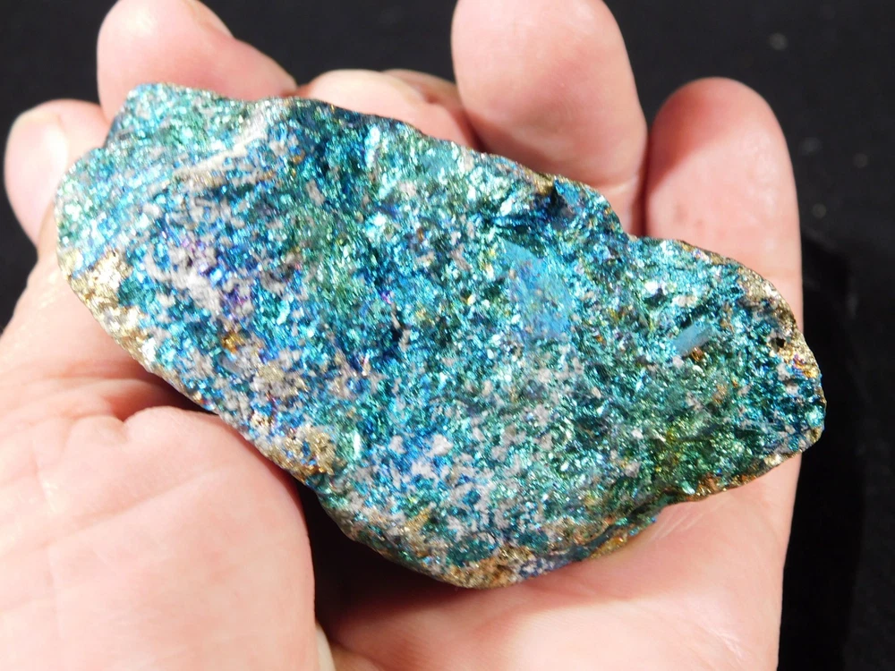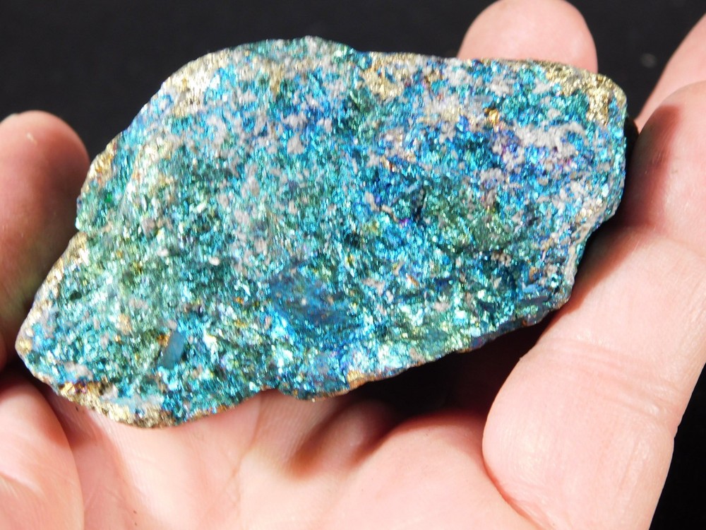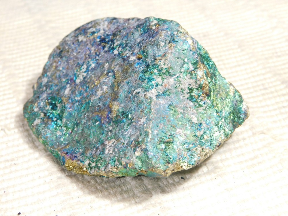 Hello, Here is a Larger! natural and very colorful Bornite, Chalcopyrite, Peacock Ore or Peacock copper with intense IRIDESCENT Blue, Copper, Teal, Green, Gold, Silver and or Purple colors from Mexico! Bornite tarnishes to various iridescent shades of green, blue to purple in places. Its striking iridescence gives it the nickname peacock copper or peacock ore...neat! The overall piece measures a nice 3" or 7.55cm at its biggest or from opposing side to side. INTERNATIONAL BUYERS PLEASE NOTE : Import duties and taxes are not included in the price of the item or the shipping charges. These are the buyers responsibility. If you are concerned about them, please check with your country's customs office before purchasing. RETURN POLICY We guarantee you will be satisfied with your item or we'll refund your purchase price, less shipping charge, upon safe return of the item in original condition within 14 days. Prior to returning the item, please contact within 48 hours of receiving item. Buyer is responsible for all return shipping charges.