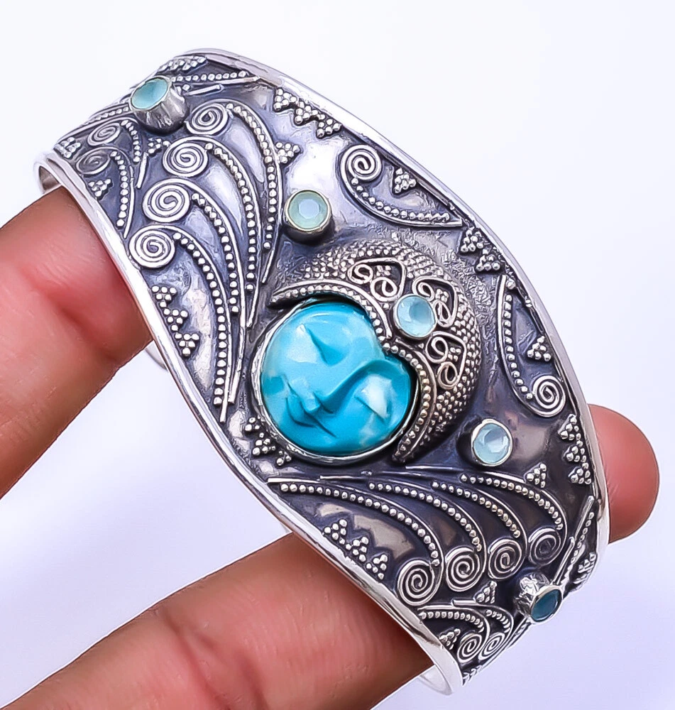 Charm Type As Seen in Picture Theme Beauty Main Stone Depth As Seen in Picture Main Stone Length As Seen in Picture Main Stone Width As Seen in Picture Seller Warranty Yes Shape As Seen in Picture Sizable As Seen in Picture Wholesale Yes SKU C_9215_58_63 Signed Yes Unit Quantity 1 Unit Type Unit Type Cuff Style Cuff Metal Sterling Silver Metal Purity 925 Parts Per 1000 Base Metal Sterling Silver Material Gemstone. Stone Main Stone Larimar Main Stone Shape As Seen in Picture Main Stone Creation Lab-Created Main Stone Color Blue Main Stone Treatment Lab-Created Item Length 6.99" Features Adjustable Brand Unbranded Customized No Country/Region of Manufacture India Country of Origin United States Cut Grade Very Good Setting Style collet setting Number of Gemstones 6 Number of Diamonds As Seen in Picture Gemstone Clarity Grade Slightly Included Diamond Color Grade Not Applicable Diamond Clarity Grade Not Applicable Colored Diamond Intensity Not Applicable Color Silver Closure Open Closure Chain Type Not Applicable Certification 100% Genuine Guaranteed Total Carat Weight 151 Occasion Christmas, Birthday, Anniversary, Engagement, Wedding, Valen Shipping & Handling - Charge - 1st item-5.90 And Additional item-1.90 Handling Time - 1 Days . Delivery Time - 2 TO 3 DAYS. Shipping Service - USPS First Class Package 2 -3 Days. Returns - 1.We offer a 100% Money Back Guarantee minus shipping for 30 days after receiving the Item / item's. 2..The item must not be altered or damaged in any way shape or form. 3.Upon receiving these items your payment will be refunded. 4.Email us for return instructions before sending merchandise back. 5.Please allow up to 1 business day for all returns to receive credit. 6.Sizing does not affect the return policy. Payment - We accept PayPal for Payment ,should made with in 14 days once buying or winning done , in case of late information expected .