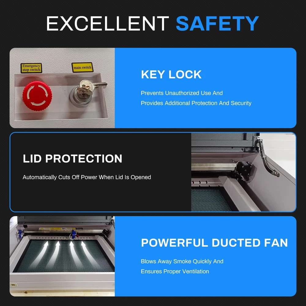 Upgrade 50W Laser Engraver: This 50-watt tabletop unit engraves up to 1/8-inch (3-millimeter) deep on wood, glass, acrylic, leather, and other materials at speeds up to 13.8 ips (350 mm/sec), and works with LightBurn and LaserGRBL, allowing you to create beautiful designs and streamline your workflow.Output Power:0.78mW,Class:4 Red Dot Guide: The component of the 50W has been upgraded. It is mounted on the laser head and displays the machine's laser path, providing greater accuracy when cutting and engraving. Adjustable Laser Head: With a laser head that extends up to 1.2 inches (3 cm), this laser engraver has an easily removable base to handle longer and larger items. Compatible with Lightburn Software: With the upgraded control board, this 50w machine can be compatible with Lightburn, which is the most popular and widely-used software on the market. Water Cooling System: Easy-to-install, including a compact pump and built-in hoses. This ensures that the machine operates within the temperature parameters of the laser tube, resulting in longer life. The Better Cooling System uses only distilled water and therefore maintains the laser tube temperature at 50-70°F. Product Description 40W CO2 Laser Engraver Compatible with Lightburn Compact & Portable Design 50W laser engraver fits well on most hobby worktables, with its space-saving design. Suitable for Beginners With 50w of CO2 laser power, easy-to-operate process, 50w machine is the perfect choice for beginners to learn laser engraving. High Precision A professional laser system ensures stability and reliability. Water Cooling System The easy setup water cooling system, including a compact water pump & built-in hoses. This ensures the machine works within the tube's temperature parameters for longer life. Red Dot Guidance It mounts on the laser head which shows the laser path of the machine and can offer more precision when lining up cutting and engraving. Viewing Window The visualization window helps us to better determine the status and progress of the engraving of the product. Spacious work area With a wider working area of 12in x 20in, the larger working width allows for better engraving. Linear rails system Linear rails system— Custom extruded aluminum linear rails Compatible with lightburn Perfectly compatible with lightburn, you can use lightburn with ease to complete your desired engraving work. Package Lists Laser Engraver Machine *1 Accessory Bag *1 Power Cord *1 Specifications Working Area: 12’’ x 20’’ (300 mm x 500 mm) Machine Dimension: 39.5” x 24.4” x 11.4” ( 100.3 cm x 61.9 cm x 29 cm ) Package Dimension: 48” x 32.5” x 15.2” ( 122 cm x 82.5 cm x 38.5 cm ) Payment Delivery details Terms of sales About us Contact us Payment We accept payment either via PayPal or any of the following credit cards; Visa, MasterCard, Discover, and American Express. Wishing you a happy life! Delivery details We will provide you with the tracking number on the same day or the next day, and transport your package through UPS, DHL, FedEx and other courier methods. If you have any questions, please feel free to contact me and I will do my best to help you solve the problem. Wishing you a happy life! Terms of sales We offer a one month free return and exchange service, and you don't have to bear any losses. We will provide multiple solutions for you to choose from. If you have any questions, please feel free to contact me and I will do my best to help you solve them. We offer a two-year warranty period. If you have any quality issues with the product you purchased within two years, please feel free to contact me. I will provide you with a free replacement service. If you have any questions, please feel free to contact me. I will do my best to help you solve the problem. Wishing you a happy life! About us We are committed to becoming the best eBay seller, with high-quality suppliers, providing the most sincere service, including pre-sales and after-sales service, to give you a satisfactory shopping experience. If you have any questions, please feel free to contact me, and I will do my best to help you solve the problem. Wishing you a happy life! Contact us If you encounter any problems, please contact me by email at the first time, I will provide you with a solution as fast as possible so that I can give you a satisfactory shopping experience, wish you a happy life! Brand Petyee MPN JQ1390 Country/Region of Manufacture China Product Dimensions 45 x 29 x 12 inches Item Weight 100 pounds 100 pounds