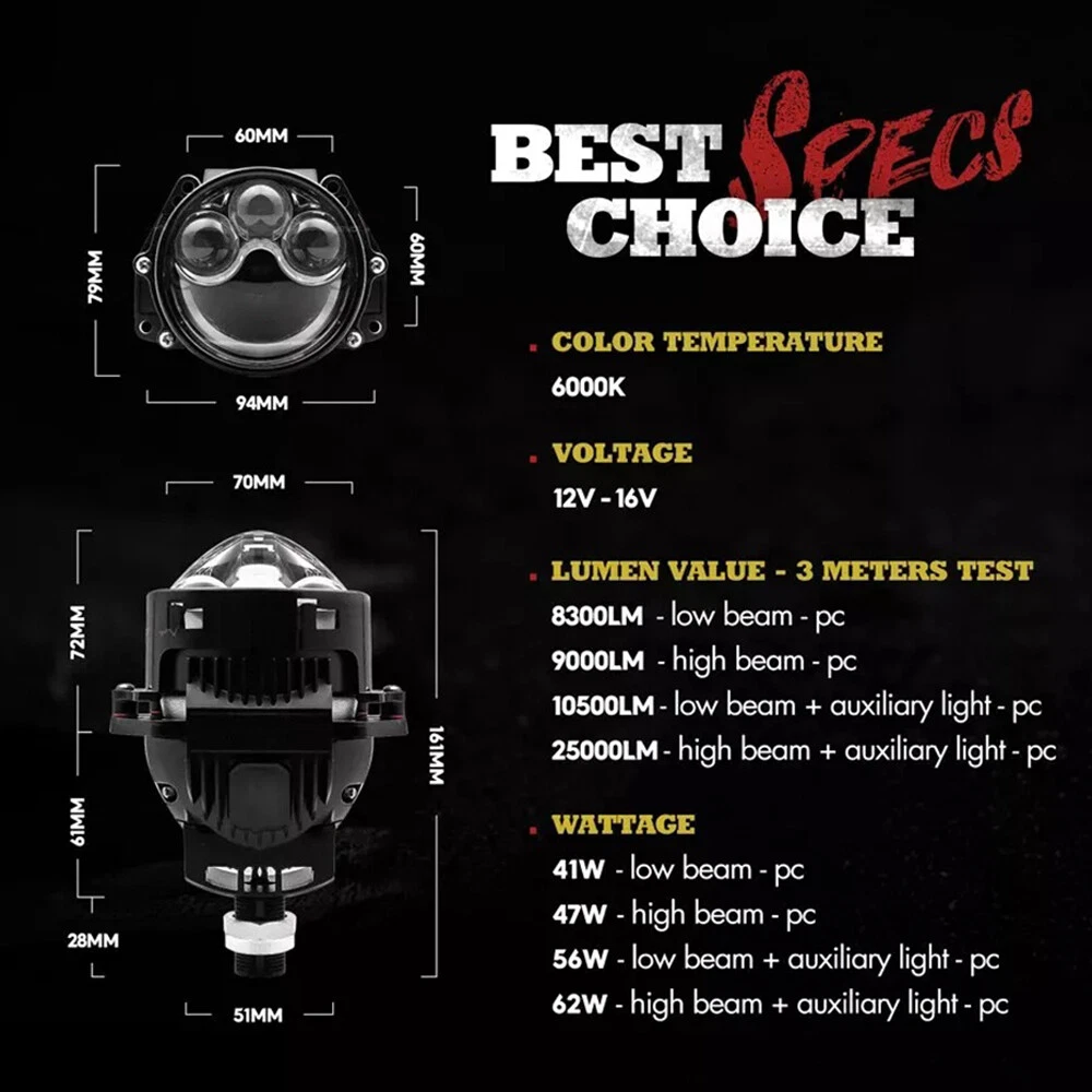 Square Bi LED Projector Lens 3.0 inch Bi LED Headlight Car Retrofit VS Xenon LHD