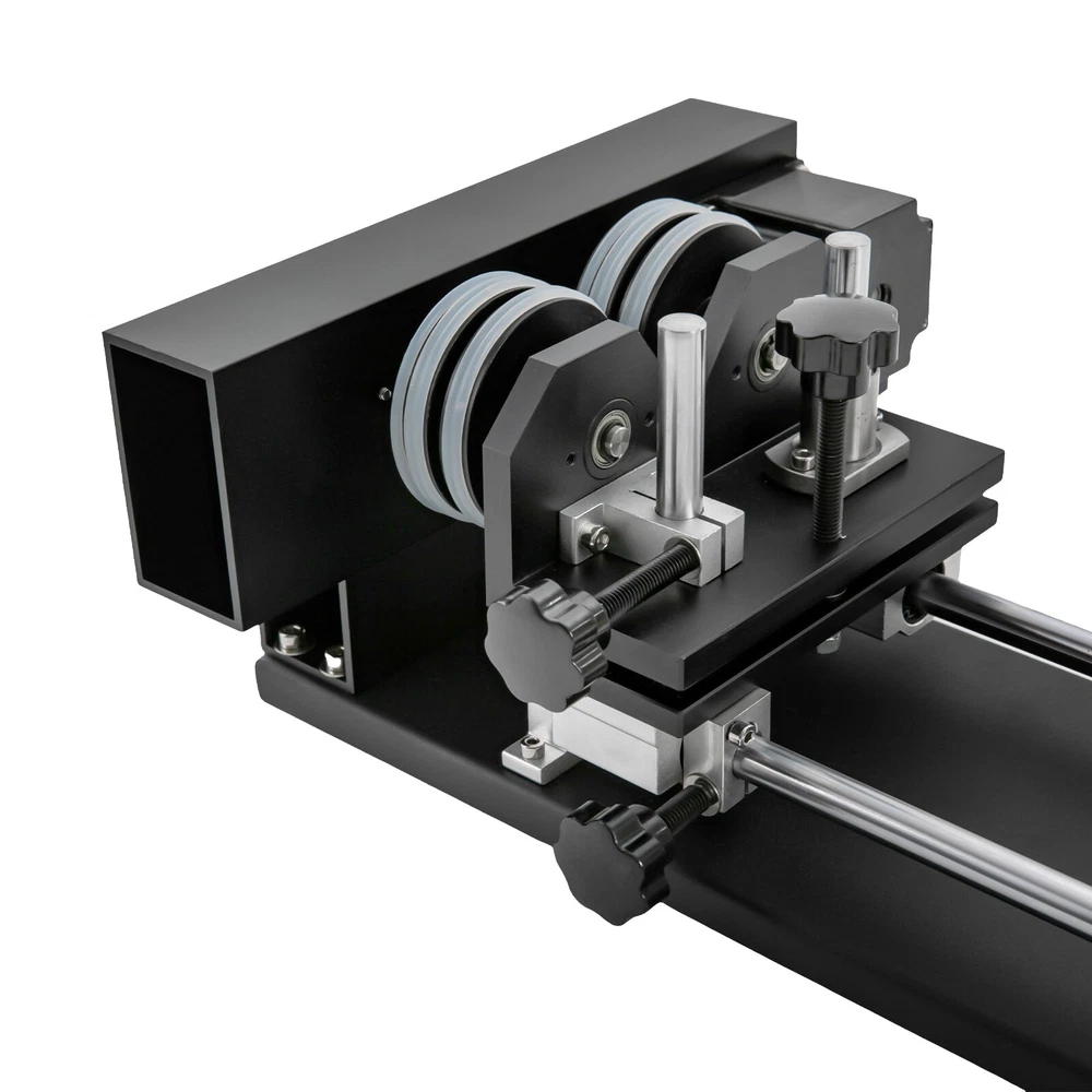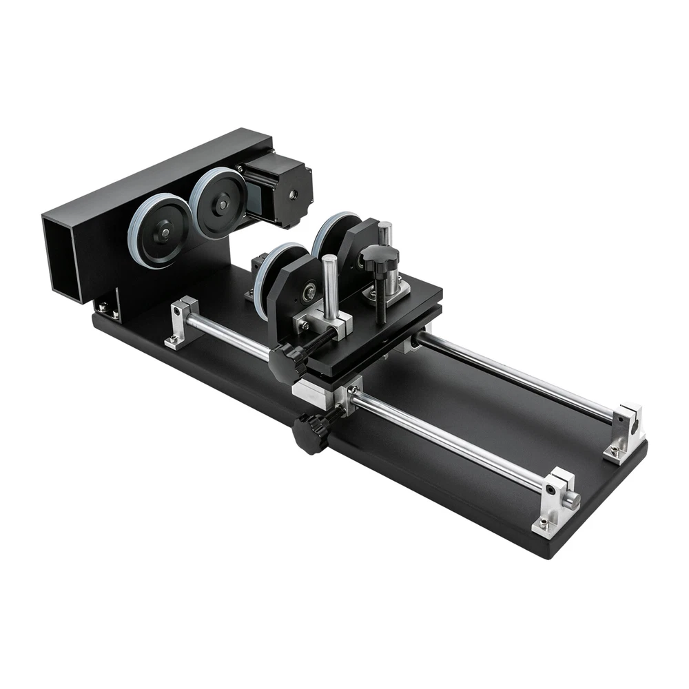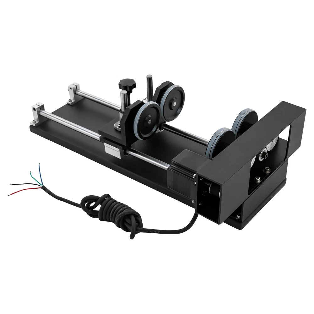Details Rounded Corners: The rounded edges are burr-free, which is comfortable to touch and can care for your skin. Multiple Knobs: The plum-shaped knobs allow for easy and convenient adjustment without slipping. Application It is suitable for personal DIY, home, or business. It can be used in conjunction with a 50W, 60W, 80W, 100W, and 130W CO2 laser engraver for 360° engraving of cylindrical and round objects, including beverage cans, eggshell cups, goblets, wine bottles, baseballs, baseball bats, cups, bottles, flutes, gourds, tubes, pipes, bowls, etc. How to Carve a Cylindrical Object 1. Connect the motor on the rotary axis to the drive (Y-axis on the machine). Please make sure the phase is matching. If your motor driver on the machine is 2-phase(Port A+, A-, B+, B-); th Laser Rotary Axis for 50W 60W 80W 100W 130W CO2 Laser Engraver Cutter Laser Engraver Rotary Attachment, Rotating Carving Fixture, Laser Rotary Attachment Rotary Axis Description As a skilled engraving worker, the laser carving rotary axis would be an ideal addition to your toolset! It allows for accurate and efficient marking of small areas, maximizing your productivity while delivering precision. Not only that, but it has an engraving diameter of 0.4-5.9" and an engraving length of 1.97-13.78", providing you with maximum versatility. Get yours today and start enhancing your DIY projects with this must-have tool! Key Features Build to Last: It is crafted from high-quality aluminum alloy and steel with anodizing and chamfering processes, which is corrosion-resistant and rust-proof , maintains long-term brightness and performance, and has a long service life. Powerful Function: The 2-phrase stepper motor with an adjustable speed of 10-200rpm allows it to work with lasers for high precision and more comprehensive marking. DIY Carving: The 3.15-5.12 inches axis height makes it carve lengths of 1.97-13.78 inches, carving diameters of 0.4-5.9 inches, and applicable workpiece diameters of 0.4-5.9 inches, meeting your DIY carving needs. With it, you can achieve 360° bi-directional rotary marking, which is convenient. Ready to Go: This tool comes with a 4-wire connection cable that can be connected to a dedicated port on a laser engraver, making it easy to engrave. Simply configure the software settings and start engraving. The tool is also pre-assembled and modular, which saves valuable engraving time. Stable Structure: The rubber pads on the bottom can effectively prevent slipping and improve the stability of the product when used. Easy to Clean: Thanks to its smooth surface and skeletonized structure, you can clean it with a soft rag. Protective Package: We use the sponge to wrap our product, aiming to maximize the protection of the product from damage during transportation. Buy with Confidence: We are honored that you have chosen our product. We have sufficient confidence in the quality of the product so that you can buy it confidently. But if you have any questions, you can contact our customer service, he will patiently answer and solve your problems. Details Rounded Corners: The rounded edges are burr-free , which is comfortable to touch a nd can care for your skin. Multiple Knobs: The plum-shaped knobs allow for easy and convenient adjustment without slipping. Application It is suitable for personal DIY, home, or business. It can be used in conjunction with a 50W, 60W, 80W, 100W, and 130W CO2 laser engraver for 360° engraving of cylindrical and round objects, including beverage cans, eggshell cups, goblets, wine bottles, baseballs, baseball bats, cups, bottles, flutes, gourds, tubes, pipes, bowls, etc. How to Carve a Cylindrical Object 1. Connect the motor on the rotary axis to the drive (Y-axis on the machine). Please make sure the phase is matching. If your motor driver on the machine is 2-phase(Port A+, A-, B+, B-); the 3-phase motor's port is U, V, and W. 2. Enable rotation in the software(not included) and set the correct values for engraving part diameter and circle pulse. The rotary reduction ratio is 1:2. Specifications Material: Aluminum Alloy, Rubber and Steel Process: Anodizing and Chamfering Motor Type: 2-Phase Stepper Motor Mounting Type: Freestanding Color: Black Rotation Type: Roller Power Source: Corded Electric Adjustable Speed: 10-200rpm Gross Weight: 10kg/22lbs Net Weight: 9kg/19.84lbs Axis Height: 80-130mm/3.15-5.12in Engraving Diameter: 10-150mm/0.4-5.9in Engraving Length: 50-350mm/1.97-13.78in Applicable Workpiece Diameter: 10-150mm/0.4-5.9in Package Size: 67*20*27cm/26.38*7.87*10.63in Product Size: 49*26*13cm/19.3*10.2*5.1in Package Included 1* Laser Rotary Axis Notes Please note that the laser machine is not included in this product. This item is a roller 2-axis (with a 2-phase stepper motor) with 4 leads , please confirm before ordering. Please allow the slight color difference caused by the shooting light and 1-3cm error due to manual measurement, and make sure you do not mind before you order. Payment Delivery details Terms of sales About us Contact us Payment We accept ebay payment 。 Fees such as import duties, taxes are not included in the item price or shipping costs. These charges are the buyer's responsibility. Delivery details Shipping: 2-9 working days to: USA Terms of sales We maintain high standards of excellence and strive for hundred percent customer satisfaction. Feedback is very important to us. We hope that you contact us immediately before you give neutral or negative feedback, so that we can address your concerns. It is impossible to address issues if we do not know about them! About us Your satis faction is our ultimate goal. We work hard to earn your trust and future business. Our certified technicians have tested each item before shipping. The unit comes with 1 year limited warranty on all manufacturing defects. a) If you receive a defective item, you may return it or ask for a discount. Please contact us within 14 days after you receive the package. b) What you retur