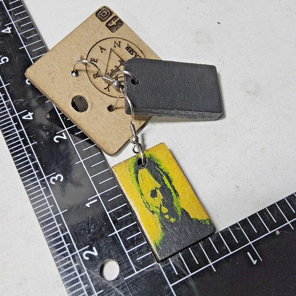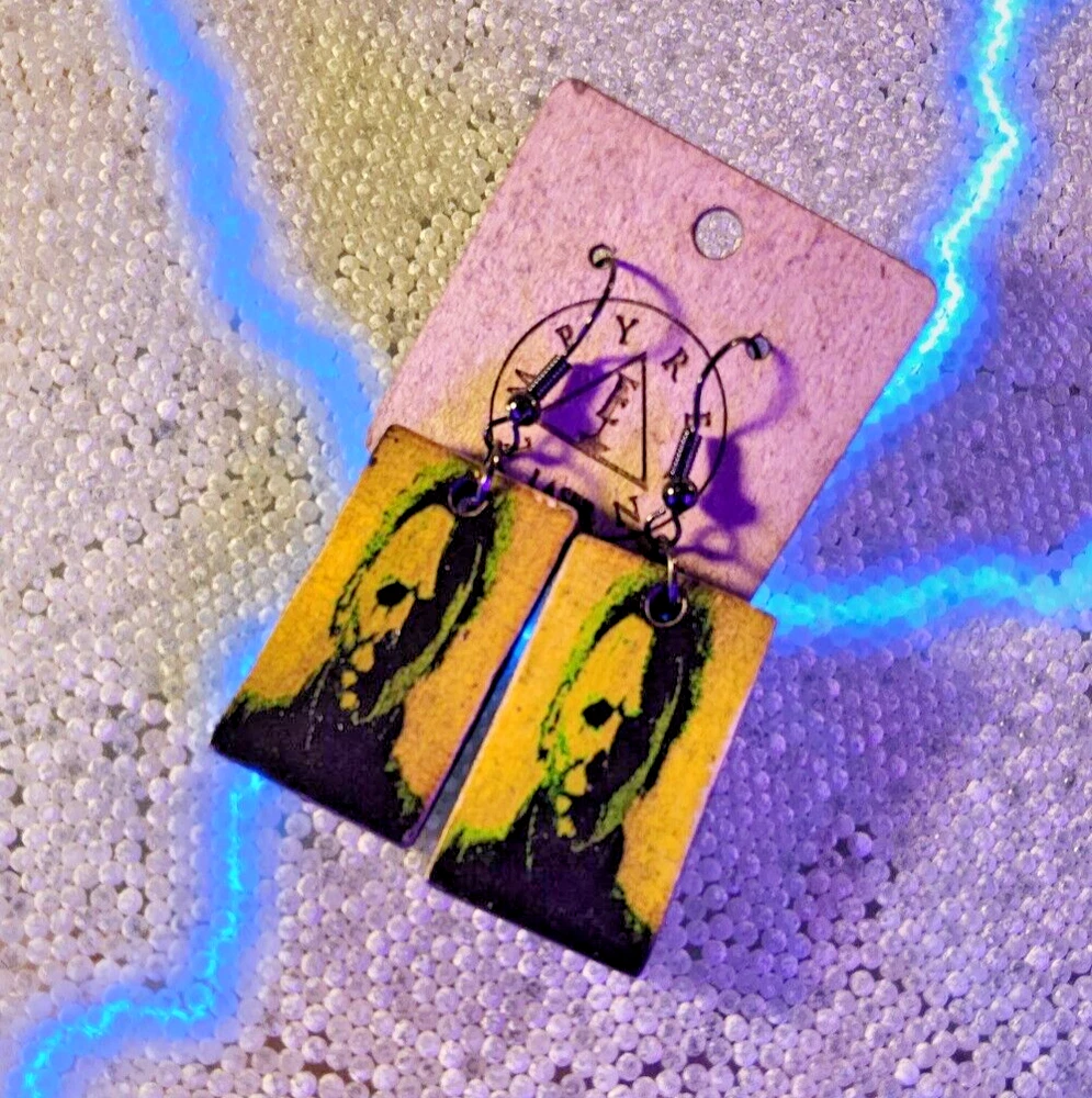 Laser engraved cut michael myers hallowen custom art earrings horror fashion Sketched a pic of Michael Myers on tablet, then transferred design to my laser machine to engrave then cut out earring shapes. They glow under uv light. Pretty funky. Unless you don't want to be seen in the dark. Then you're screwed. You'll look awesome with these though. You have that going for you at least. Measures 1.25"h x .75"w x 1/4"d. Loaded with hypoallergenic metal ear hooks. Check out plenty of other lasered creations of mine in shop. Order a few pieces and I'll give you a bundled art deal. Not doing customs at the moment but may be persuaded to fire up the laser for right project. Ebay reselling keeps me busy. Message me to find out. Thanks again for visiting my Ebay shop. ***Treasure Suite offers you many pieces of my art prints now*** ###This section is for laser cut sublimation prints of my digital art. Measurements vary by piece. ### *Welcome to my unique collection of digital art, where creativity meets craftsmanship! Each piece in this category features my original digital designs, heat pressed into vibrant sublimation prints on laser cut whiteboard material. Some are engraved then hand painted. These art pieces are not just decorations, they are collectibles that bring a touch of gothic, rock and roll, horror, pin-up, and lowbrow art into your space. *perfect for:* *man cave *castle *bungalow *abode *domicile *penthouse *flat *cabin *studio *boutique hotel *yacht *etc *These pieces make fantastic gifts for art enthusiasts and collectors alike. Who doesn't enjoy vibrant digital art of out of this world space huntresses, demon witches, cyberpunk vixen cyborgs, spooky mistresses, hearses, hotrods, and so on? ***May consider custom orders of laser cut or engraved items.***