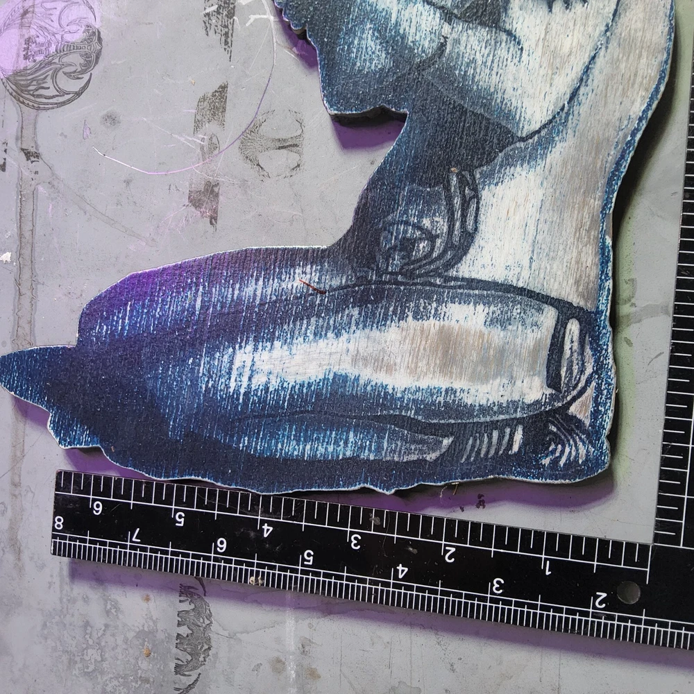 Laser engraved cut pinup girl with knives wooden digital art print magnet 8.5x7.5 by me I drew this up around 2010 but the magic of lasers made this possible. Now that i look at her, she does resemble Lady Gaga as Harley Quinn. Weiiiiird. I have others listed here too. Magnetized. This is the only black metal one. Looks cool under uv light. Quite a bit of work goes into making my laser cut/engraved art. I come up with most of art/shapes,draw them out,edit colors,sizes, transfer files to multiple formats,paint,assemble,etc. Lots of steps to get some fine off the wall pieces. From tablet,to you. Can give bundle deal for multiple pieces. Not entertaining custom orders at this moment. ***Treasure Suite offers you many pieces of my art prints now*** ###This section is for laser cut sublimation prints of my digital art. Measurements vary by piece. ### *Welcome to my unique collection of digital art, where creativity meets craftsmanship! Each piece in this category features my original digital designs, heat pressed into vibrant sublimation prints on laser cut whiteboard material. Some are engraved then hand painted. These art pieces are not just decorations, they are collectibles that bring a touch of gothic, rock and roll, horror, pin-up, and lowbrow art into your space. *perfect for:* *man cave *castle *bungalow *abode *domicile *penthouse *flat *cabin *studio *boutique hotel *yacht *etc *These pieces make fantastic gifts for art enthusiasts and collectors alike. Who doesn't enjoy vibrant digital art of out of this world space huntresses, demon witches, cyberpunk vixen cyborgs, spooky mistresses, hearses, hotrods, and so on? ***May consider custom orders of laser cut or engraved items.***