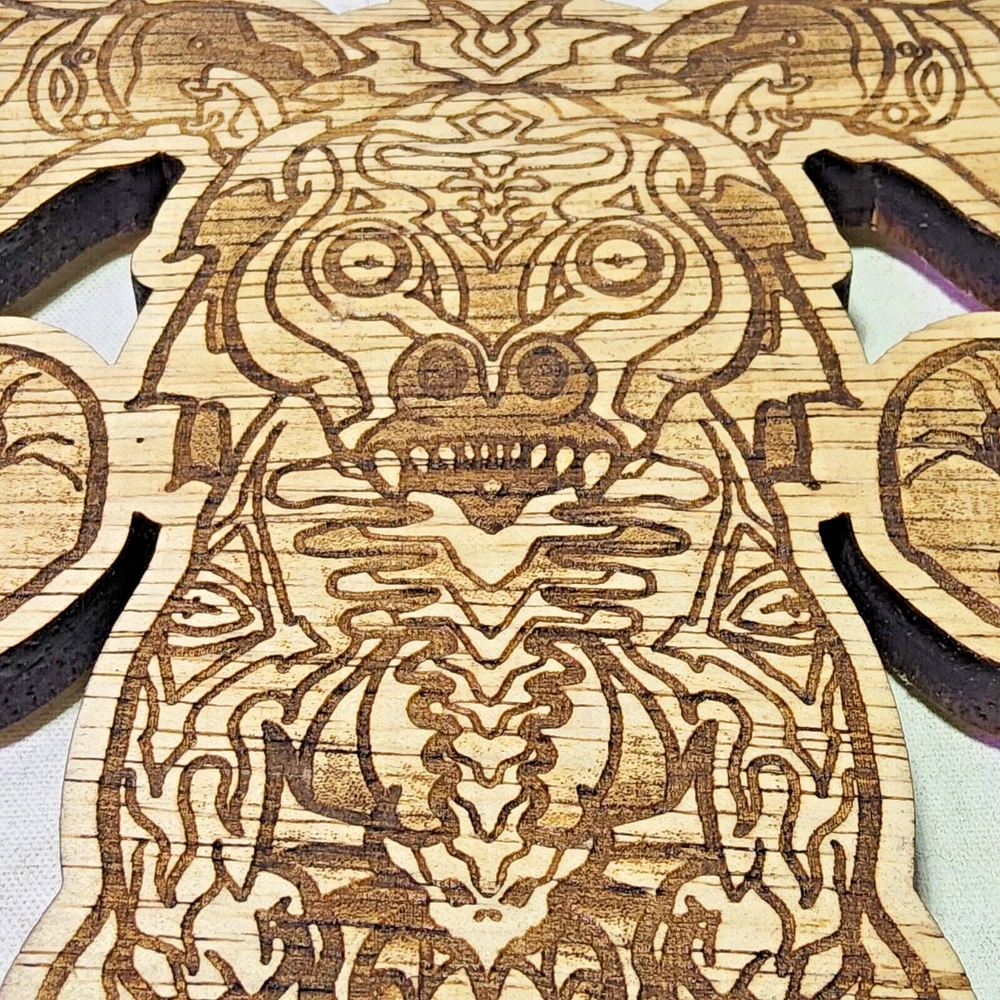 Laser engraved cut wooden creature antlers digital art print mystical cryptid 6x8 bendy board Quite a bit of work goes into making my laser cut/engraved art. I come up with most of art/shapes,draw them out,edit colors,sizes, transfer files to multiple formats,paint,assemble,etc. Lots of steps to get some fine off the wall pieces. From tablet,to you. Can give bundle deal for multiple pieces. Not entertaining custom pieces at this moment. ***Treasure Suite offers you many pieces of my art prints now*** ###This section is for laser cut sublimation prints of my digital art. Measurements vary by piece. ### *Welcome to my unique collection of digital art, where creativity meets craftsmanship! Each piece in this category features my original digital designs, heat pressed into vibrant sublimation prints on laser cut whiteboard material. Some are engraved then hand painted. These art pieces are not just decorations, they are collectibles that bring a touch of gothic, rock and roll, horror, pin-up, and lowbrow art into your space. *perfect for:* *man cave *castle *bungalow *abode *domicile *penthouse *flat *cabin *studio *boutique hotel *yacht *etc *These pieces make fantastic gifts for art enthusiasts and collectors alike. Who doesn't enjoy vibrant digital art of out of this world space huntresses, demon witches, cyberpunk vixen cyborgs, spooky mistresses, hearses, hotrods, and so on? ***May consider custom orders of laser cut or engraved items.***