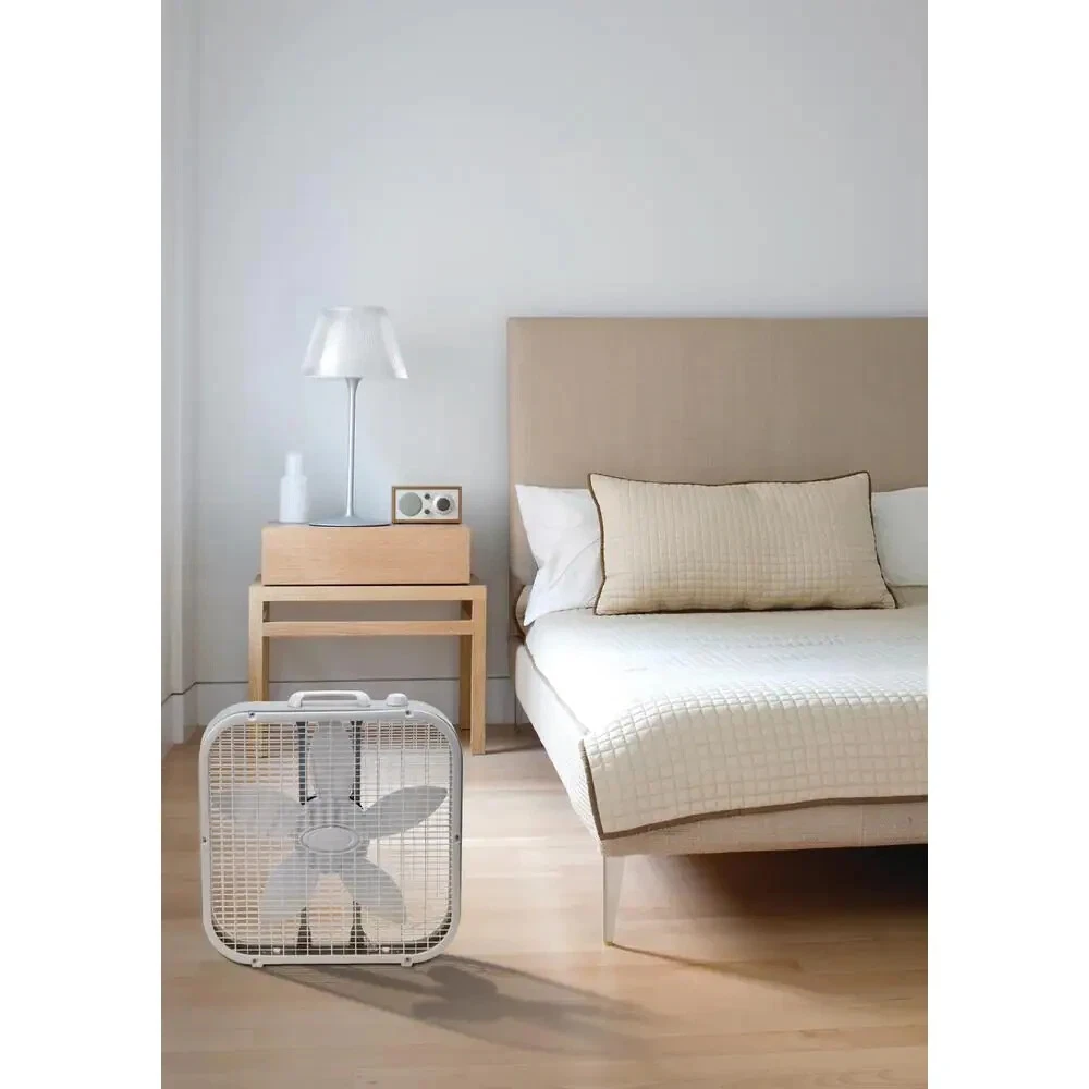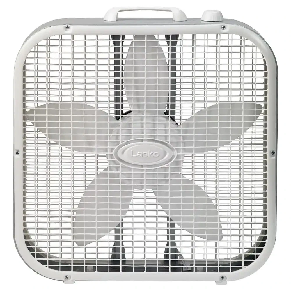 Lasko 20" Classic Box Fan with Weather-Resistant Motor, 3 Speeds, 22.5" H, White The Classic Lasko Box Fan with a 20 inch fan blade creates efficient airflow to keep your home or work space cool and comfortable and helps to dry out dampness. Everyone needs a great basic, and this box fan is just that. Features 3 quiet fan speeds, top-mounted controls for easy operation, built-in handle for portability, and a durable metal frame. The front grill and fan blades are removable for easy maintenance to maximize efficiency. This box fan also features a weather-resistant motor for worry-free indoor window use. No tools are required for set-up or maintenance, adding even more convenience. Condition: New . Easy-to-use manual controls 3 quiet fan speeds Weather-resistant fan motor for worry-free window use No tools are required for set-up or maintenance, Built-in carry handle Can be used on tables, floors or in windows Perfect for bedrooms, living rooms, home offices and more Use in conjunction with an air conditioner to boost cooling airflow Equipped with Lasko's trusted, fused safety plug