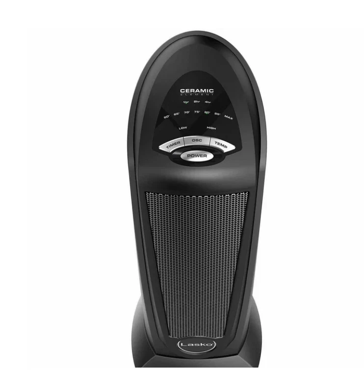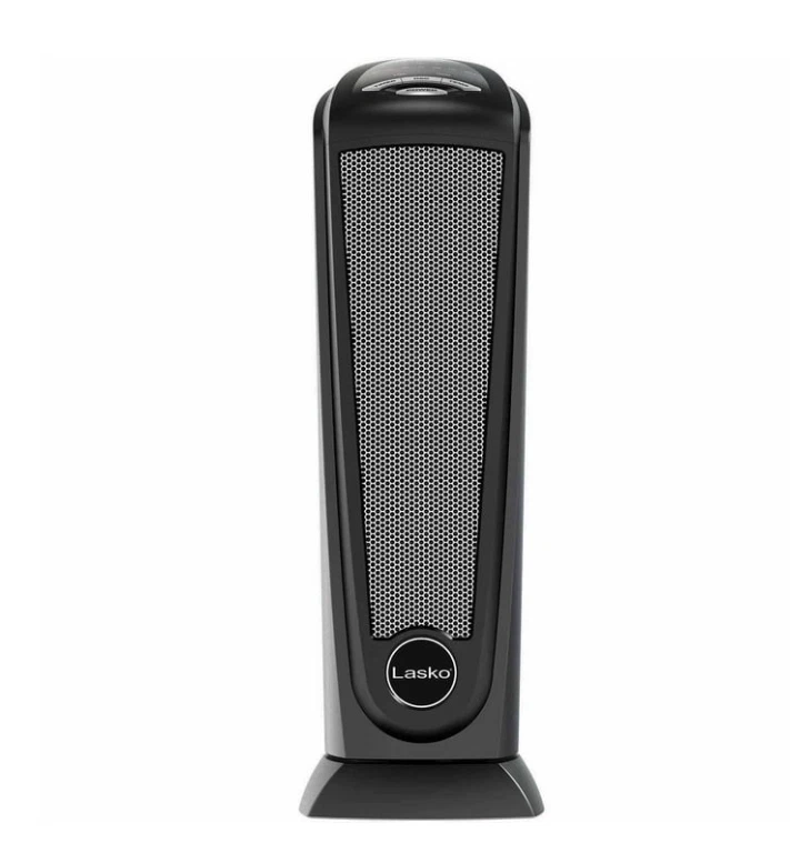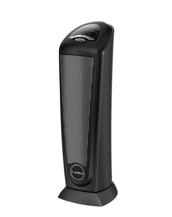 Brand Lasko Special Feature 1500 Watts, 2 Heat Settings, 7-Hour Auto-Off Timer, Multi-Function Remote Control, Widespread Oscillation 1500 Watts, 2 Heat Settings, 7-Hour Auto-Off Timer, Multi-Function Remote Control, Widespread Oscillation Color Grey/Black Form Factor Tower Indoor/Outdoor Usage Indoor Power Source Corded Electric Heating Method Convection Item Weight 2.5 Pounds Heat Output 1500 Watts About this item ✅【2 QUIET SETTINGS】 including high heat and low heat plus an Auto setting make this electric space heater ideal for warming up an area in your home or home office. With widespread oscillation this heater distributes warm air throughout the room ✅【ADJUSTABLE THERMOSTAT】The digital display allows you to adjust the heater's 1500 watt ceramic heating element. With an easy to read digital temperature display you can select a wide range of temperatures in Fahrenheit or Celsius ✅【REMOTE CONTROL & ADJUSTABLE TIMER】 allows you to adjust the heater's temperature, timer, oscillation and more from a distance. While the easy to program timer allows you to select 1 hour to 8 hours, in 1 hour intervals ✅【BUILT-IN SAFETY FEATURES】 overheat protection ensures the space heater does not overheat even if left on for an extended amount of time. While a cool touch exterior keeps the heater cool to the touch even after running for hours ✅【FULLY ASSEMBLED】 allows you to take the heater out of the box and have it working it minutes. Simply plug the heater into a wall outlet, adjust the thermostat, and enjoy the warmth from your new Lasko space heater. Cord Length: 6' Brand Lasko Special Feature 1500 Watts, 2 Heat Settings, 7-Hour Auto-Off Timer, Multi-Function Remote Control, Widespread Oscillation Color Grey/Black Form Factor Tower Indoor/Outdoor Usage Indoor Product Dimensions 8.3"D x 7.25"W x 22.5"H Recommended Uses For Product Office, Garage, Home Mounting Type Stand Alone Room Type Kitchen, Bedroom, Home Office, Study Room, Dining Room Heating Coverage 300 Sq. ft Burner type Ceramic Fuel Type Electric Number of Speeds 2 Voltage 110 Volts Amperage 12.5 Amps Cable Length 72 Inches UPC 046013768001 Item Weight 2.5 pounds Department Cookware Manufacturer Lasko Fans ASIN B000TTSXNI Country of Origin China Item model number 751320
