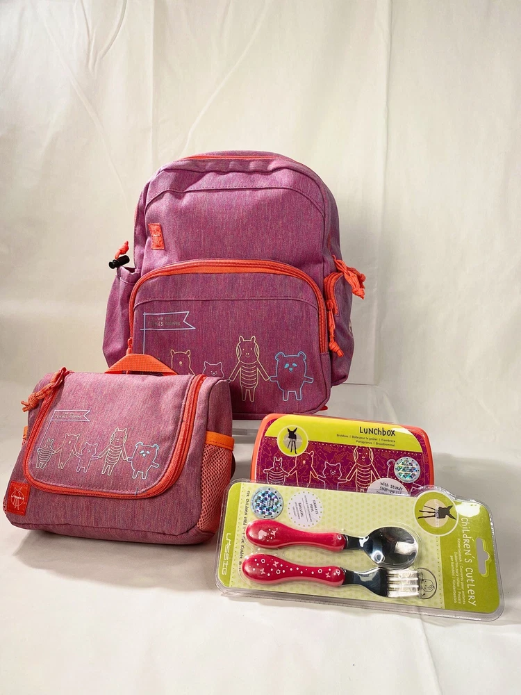 Lassig Back to School Pink Bundle - Backpack, Wash Bag, Lunchbox, Cutlery Bundle Lassig Back to School Pink Bundle - Backpack, Wash Bag, Lunchbox, Cutlery Bundle Click images to enlarge Description ?Back to School - Pink Bundle Backpack, Wash Bag, Lunchbox and Cutlery Bundle Ready for school? Do your little ones needs a few goodies to get them excited? Look no further than this bundle to get them ready for a new school year! All products are from Lassig's collection - known for their quality, sustainability and environmental care in the baby/child industry. Bundle includes - Medium Backpack About Friends Melange Pink, Mini Wash Bag About Friends Melange Pink, Lunchbox About Friends Melange Pink, and Stainless Steel Kid's Cutlery. Product Descriptions: Children's Cutlery Stainless Steel, Mushroom Magenta Dishwasher safe Stainless steel Non-toxic material 4Kids Lunchbox About Friends, Pink Bento-style lunchbox is adorned with cheerful characters Snap-lid for easy opening and closing Plastic Dishwasher safe Measures 6.8" L x 4.7" W x 2.5" H Imported Medium Backpack About Friends, Melange Pink Large main compartment Insulated front pocket Pocket with drawstring and zip pocket Snap hook and name badge Water-repellent Mini Wash Bag/Lunchbox About Friends, Melange Pink Large compartment 2 mesh side pockets Detachable mirror 2 internal zipper pockets 2 internal mesh pockets Name tag Hanging hook Back Zipper Pocket Water repellent Condition: New with tags Payment Paypal Shipping Domestic shipping: Fixed Shipping Charges. Shipping Carrier Domestic Usps First-Class $0.00 I will ship to: United States Vendio Images: More than just a pretty image. 250+ Mobile Responsive & Active Content Free Listing Templates with Vendio Sales Manager. Vendio provides powerful selling automation for sellers of all sizes. Get business information that counts! - Vendio Counters are active content free.