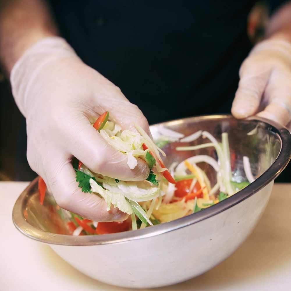 LATEX-FREE & POWDER-FREE: our vinyl gloves contain no natural rubber latex and are manufactured without powder - a safe solution for those affected by common glove allergies and sensitivities FEATURES: clear vinyl has a smooth finish for greater tactile feedback and is the right thickness for most uses - fingers are 0. 09mm thick and palms are 0. 07mm thick BULK QUANTITY: conveniently packaged to reduce storage space while ensuring a supply is always on hand - 100 disposable gloves per box and 10 boxes per case. 1000 pcs in total MULTIPLE USES: also great for use in a lab, kitchen, shop, or around the house - it protects, cleans, grips, and works as hard as you do