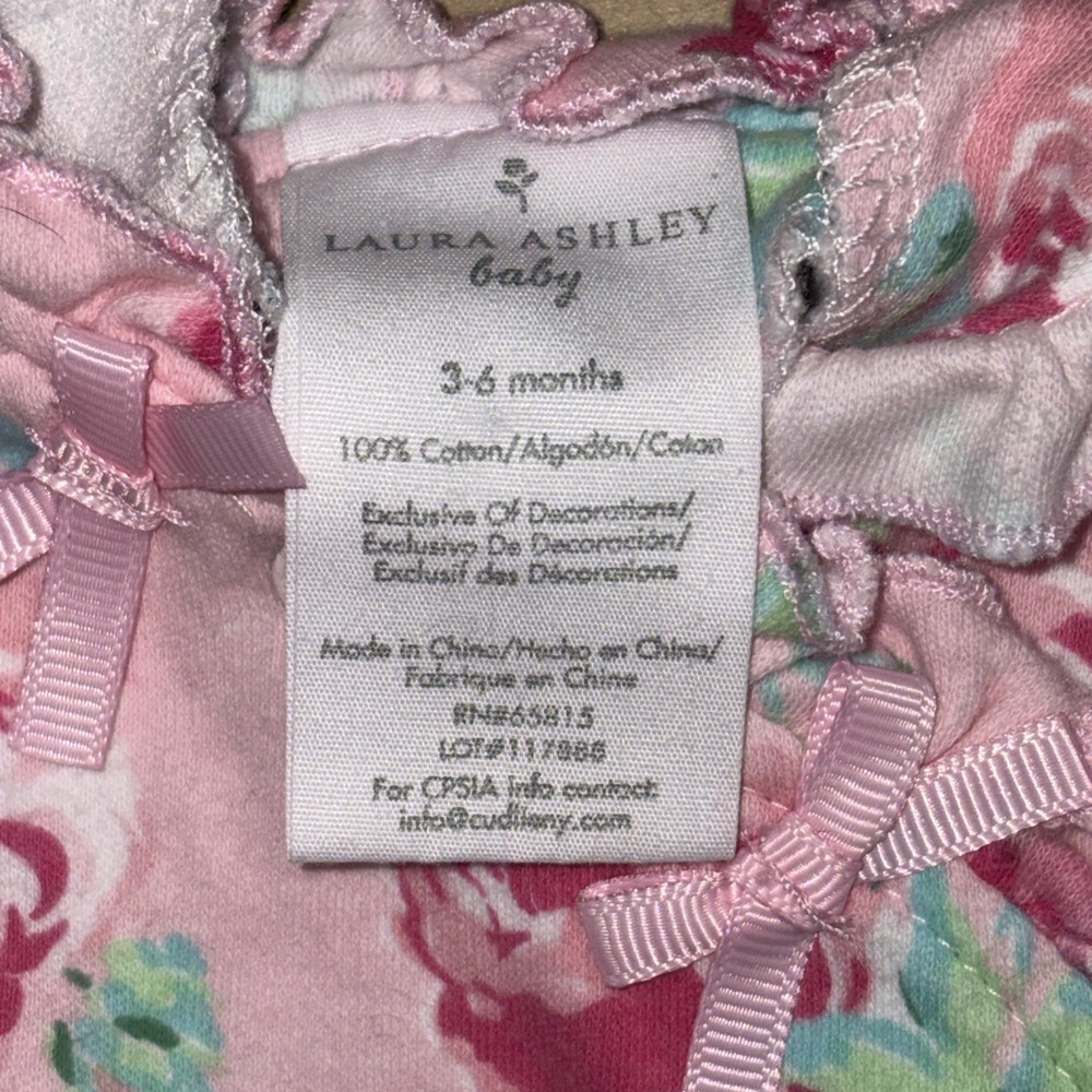 The Laura Ashley Baby Girl One Piece Footed Sleeper Pajamas in size 3-6 months are designed for the comfort and style of a baby girl. Made from 100% Pima cotton and 100% cotton knit fabric, these pink floral sleeper pajamas feature a crew neck with snaps for easy dressing. Perfect for all seasons, these sleepers are ideal for casual occasions and bedtime. The one-piece design with a bow accent adds a touch of sweetness to this adorable garment from the trusted brand Laura Ashley.