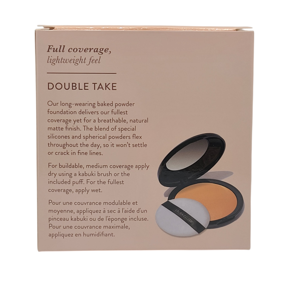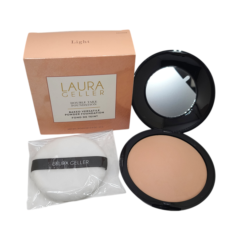 KleverKosmetics Our eBay Store About Us Contact Us Add to Favorite Sellers Laura Geller Double Take Baked Versatile Powder Foundation Light 0.9 oz DOUBLE TAKE BAKED BUILDABLE FULL COVERAGE POWDER FOUNDATION: Get skin that gets a double take. This foundation gives you instant elegance with full coverage, a classic matte finish that\'s never cakey, and a long-wear formula that doesn\'t fade. Handmade in Italy, the creamy formula feels like a treat for skin. LIGHT: Light beige with warm yellow undertones ANTI-AGING INGREDIENTS: With antioxidant-rich Jojoba Seed Oil that softens and soothes skin, Centella Asiatica Extract that hydrates and mitigates sun damage, and anti-aging Camellia Sinensis Leaf Extract, there\'s plenty to love about how this foundation looks and feels. Not only will it stay on all day, your skin will be better for it. PERFECT FOR: This full-coverage foundation is an all-around favorite, but those with mature skin and fine lines and wrinkles will especially love it. Not only does it never get cakey, but it\'s made for movement no cracking or fading with every facial expression. HOW TO APPLY: You can use this matte foundation makeup wet or dry with the included dual-sided pink and white applicator sponge. For dry application, apply foundation with the pink side of the sponge. Gently dab the powder, pat it on the areas that need the most attention first, then blend outward and upward. For more serious coverage, apply it wet with the white side of the sponge. Dampen the sponge, dab the powder and pat onto face then blend outward and upward until fully blended. Return and Refund Information • Please be aware that colors on the screen may appear slightly different in person. • Please be familiar with product. Feel free to contact us if you have any questions. • DUE TO HEALTH AND SANITARY ISSUES CONCERNING COSMETICS OR SKINCARE WE DO NOT ACCEPT RETURNS ON THESE ITEMS. ALL SALES ARE FINAL. • WE WILL ONLY ACCEPT RETURNS WHEN THE ERROR IS ON OUR END. • Attention VeRO members: We're not affiliated with or endorsed by the companies mentioned in this listing. All trademarks and copyrights are acknowledged, they are only used for informative description of the items offered for sale. Warranty information We are not an authorized dealer of this product and any warranty included with the product may not be honored by the manufacturer.