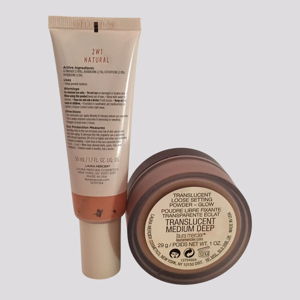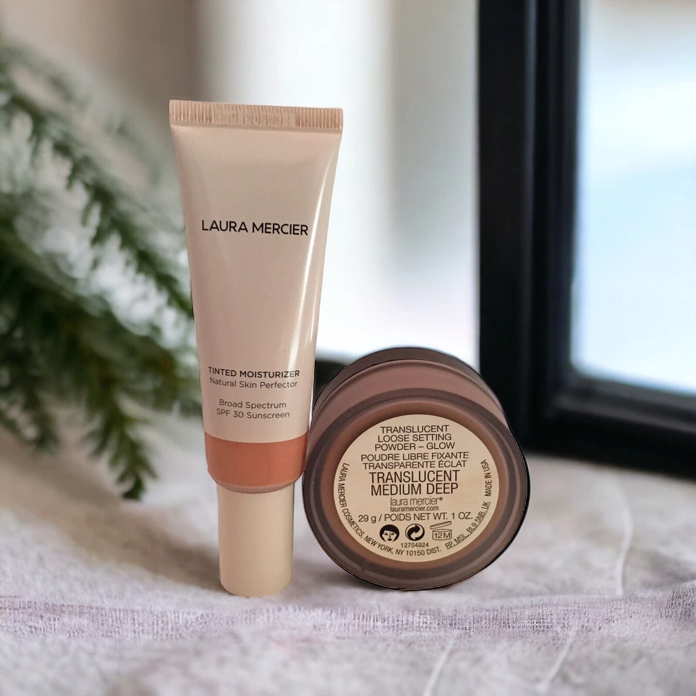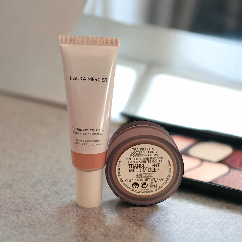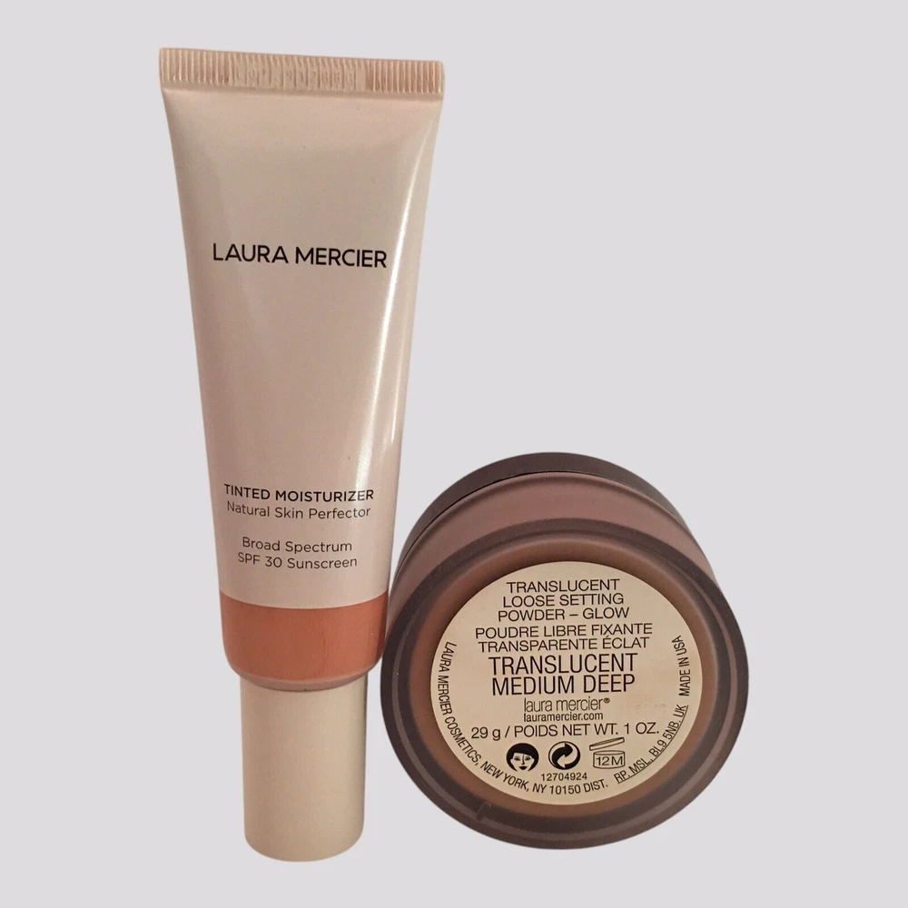 You will receive: 1 (one) Laura Mercier Translucent Loose Setting Powder, A Lightweight, Full-Sized, Long-wearing Loose Powder with a Matte Finish, Shade: Translucent Medium Deep - 1 oz / 29 g (sealed without retail box) 1 (one) Laura Mercier Tinted Moisturizer Natural Skin Perfector 2W1 NATURAL - EXP 04/21 - 1.7 fl oz / 50 ml (unsealed, unused, untested, full and with original box) * Expiration date is 04/2021 and is past the manufacturer suggested shelf life so please consider when purchasing. * Slight package distress. See photos. Terms and Conditions: Conditions are “New Old Stock” unused, untested and full. Makeup items are 100 percent authentic and Laura Mercier’s cosmetic scientist’s exclusive discontinued shades and formulas. Expiration date on the tinted moisturizer is 04/2021 and is past the manufacturer suggested shelf life so please consider when purchasing. Sold as is, as found and as pictured. All photos are an ACCURATE REPRESENTATION of the makeup items you would be purchasing. Please zoom into the pictures closely and judge the condition, size and content for yourself as our photos are a large portion of our description. Any concerns about condition please address these concerns before purchasing. We aim to provide accurate and honest descriptions. Please read descriptions carefully. We try to describe everything in as much detail as possible, but if you still have questions, please don't hesitate to ask. We will be more than happy to answer your questions and provide you with additional pictures if necessary. Most orders ship within 3-5 business days (Business days Mon-Fri) with USPS GROUND ADVANTAGE. Due to export limitations and restrictions, items listed in the Health & Beauty category CANNOT be shipped with eBay International Shipping. * Please check items included in eBay's hazardous, restricted or regulated materials policy. To ensure a positive shopping experience for all our customers, returns ARE accepted. Item(s) can be returned in its original condition for a full refund within 30 days of receipt; however, if an item is damaged or defaced by the customer, or if a new item is returned opened, used or without the tag(s) attached, the refund amount will be reduced by up to 50% as allowable by eBay. By purchasing this item, you are agreeing to this store policy. All returns must go through eBay Returns Center. For any reason that you no longer want to keep your order, please open a return request through eBay to return an item. We will provide a return label free of charge. We abide by eBay’s rules and regulations for returns, if they are met, you will refunded. If you have any further questions about the return policy, please contact an eBay service agent. If there is an issue with your purchase, PLEASE do not leave negative feedback before you have contacted us to resolve any issues. If you have any questions or concerns, contact us directly by selecting the ‘CONTACT SELLER’ option. We will work with you quickly to resolve any questions or problems. If any of our national network of stores identify unreasonable, problematic transactions, we reserve the right to block any buyer from future purchases at our discretion. Buy with confidence and rest assured that you are dealing with an experienced store whose #1 priority is customer satisfaction. We list new items continuously, so add us to your favorites and check back often as you never know what you'll find here. Look around in our store as we have a huge selection of fragrances, skincare, makeup and other beauty products. THANK YOU for shopping with us! We want you to be happy with your purchase! PLEASE don't forget to leave positive feedback and give 5 stars in Seller's Rating. The information provided here is strictly to be used for informational purposes only. We do not represent or warrant the product details, ingredients and nutritional value, and any other product information to be accurate or complete. Manufacturers improve or change their product formulas, update labels, and change their packaging. It is recommended that you do not solely rely on the information described in this listing. For any specific product info or concerns it is recommended that you contact the manufacturer directly. If there are healthcare concerns or questions, please contact your licensed healthcare professional for advice. Attention VeRO members: We are not affiliated or endorsed by the companies mentioned in this listing. All trademarks and copyrights are acknowledged, they are only used for informative description of the items offered for sale. All items are authentic as evidenced in photos, legally acquired and owned, and hence covered under First Sale Doctrine. Unlawful VeRO removal of this listing WILL constitute perjury and result in legal action.