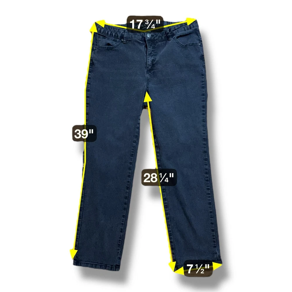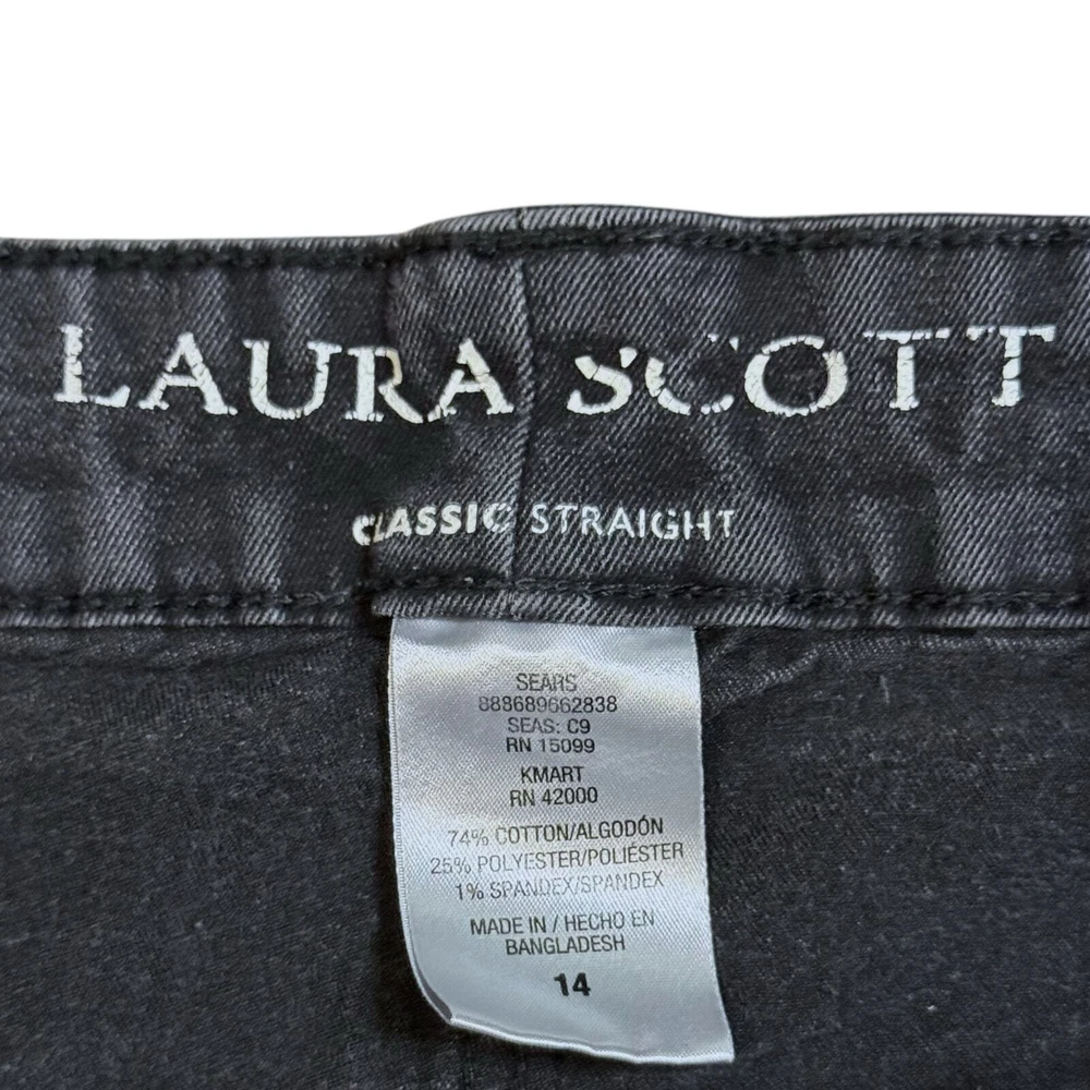 Laura Scott Jeans Womens Faded Black Classic Straight Fit Stretch Denim Size 14 Elevate your wardrobe with Laura Scott's classic straight fit jeans. Made from stretch denim, these faded black jeans offer both comfort and style for all-day wear. Complete your look with this trendy, versatile denim. The jeans are in good used condition and ready to wear. They are a faded black that can also appear gray in certain light. Size - 14 B10