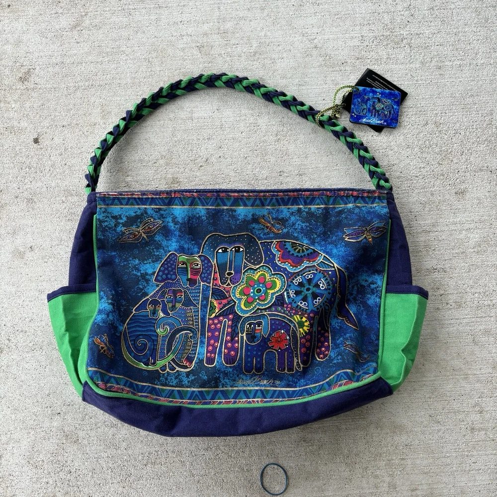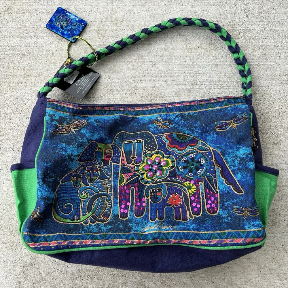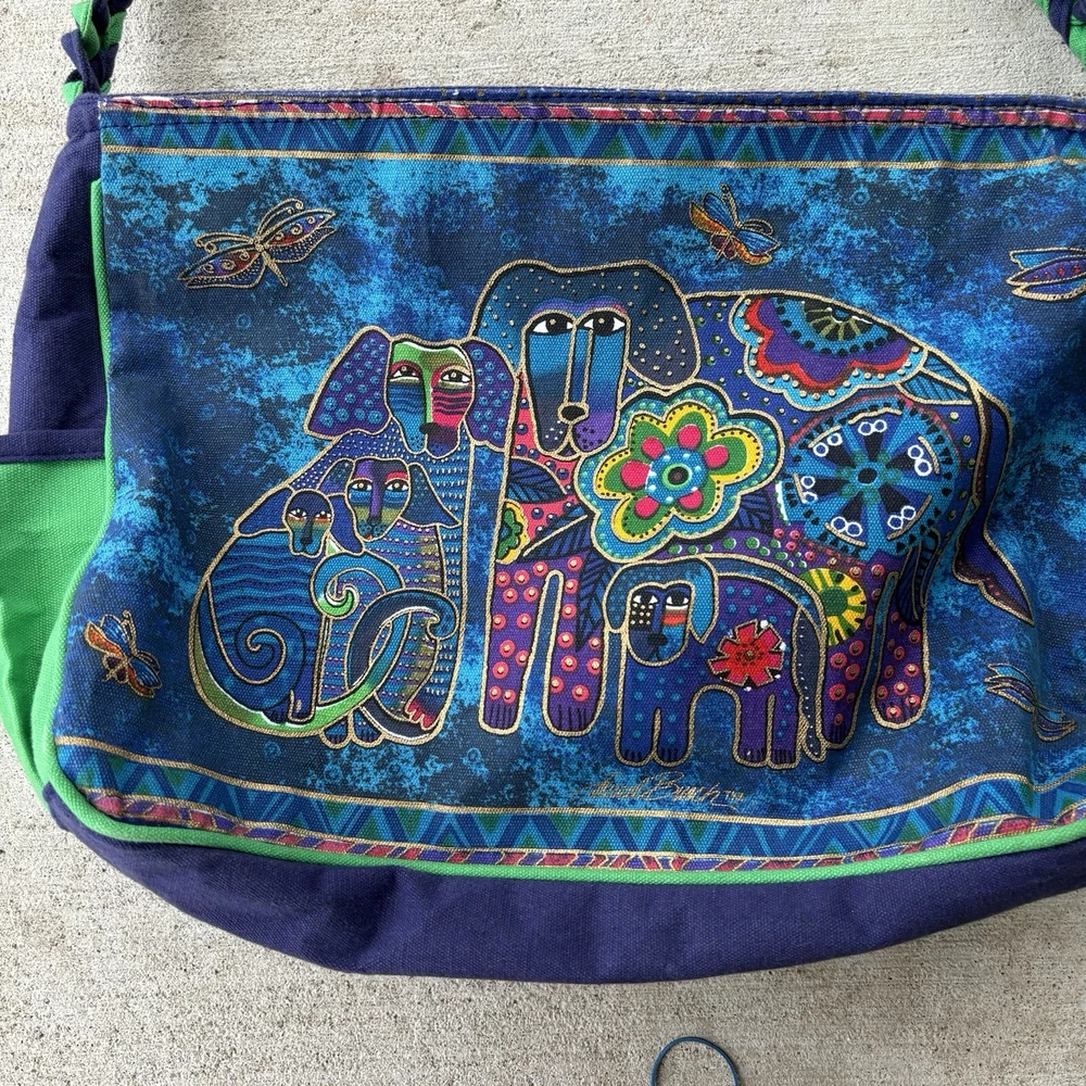 Laurel Burch Colorful Canines Bohemian DOGS Canvas Handbag Tote Purse Bag Pocket. Condition is New with tags. Shipped with USPS Ground Advantage.