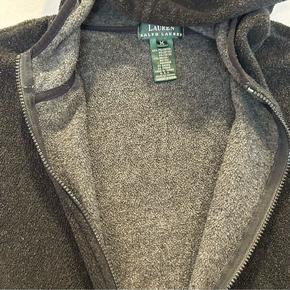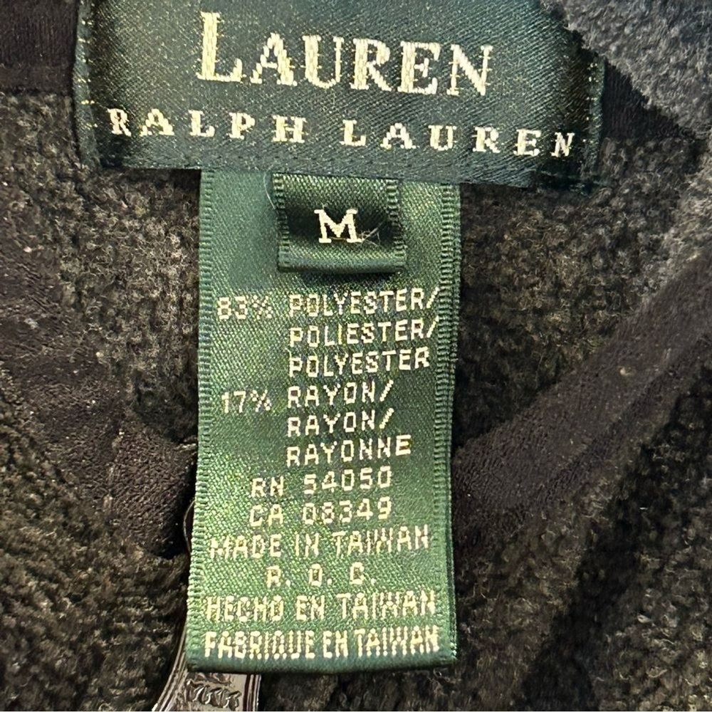 Lauren Ralph Lauren Black Fleece Zip-up Jacket Size M Pit to pit 20” Length 22” Very nice preowned condition. No flaws. Very warm.NO RETURNS. Please review all photos, measurements and sizes. Compare these measurements with something that you already own for proper size and fit before purchasing. Remember that all computer and cell phones displays my have color variations. Ask any questions before purchasing. Thank you.